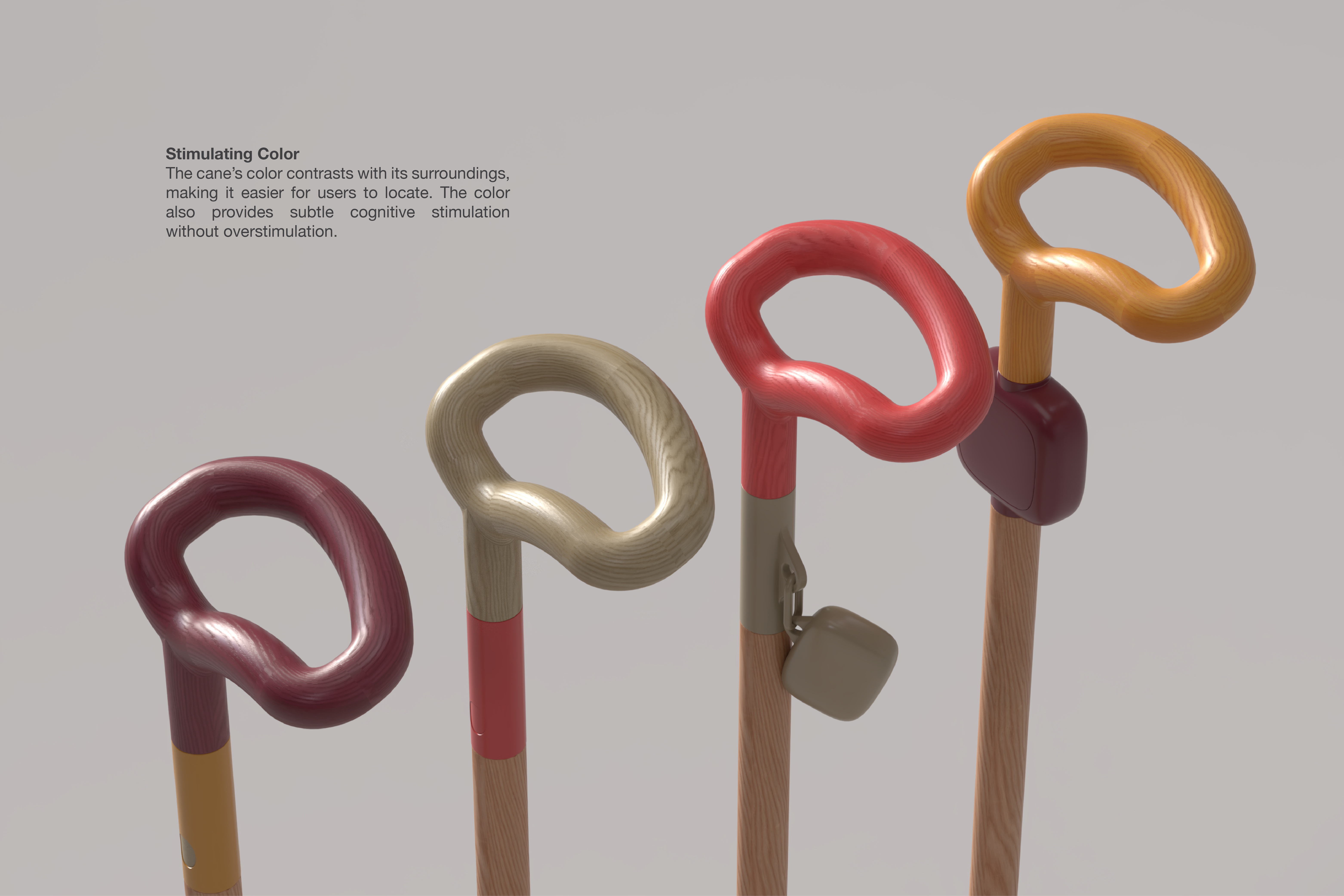 The cane's color stands out from the environment, helping users identify and locate it. The color also stimulates the user's brain to make them more active while not too much to irritate them.