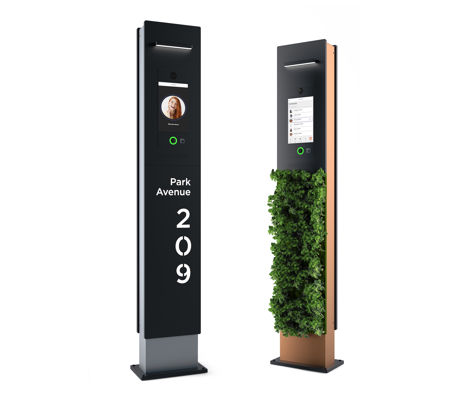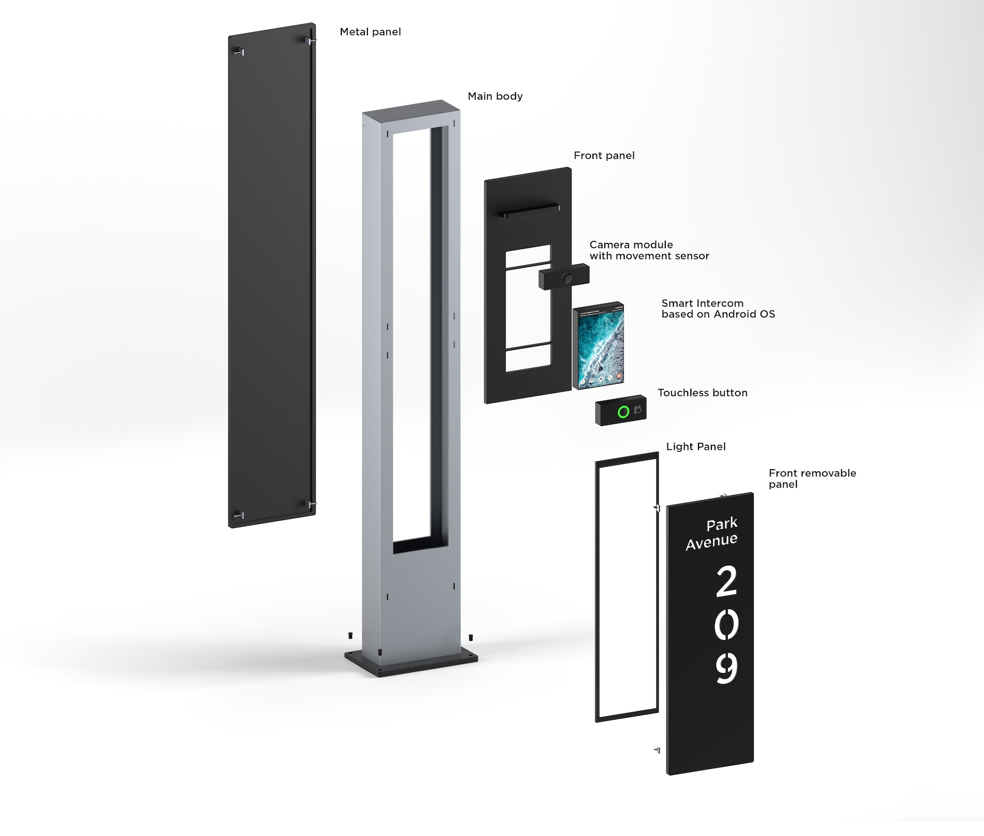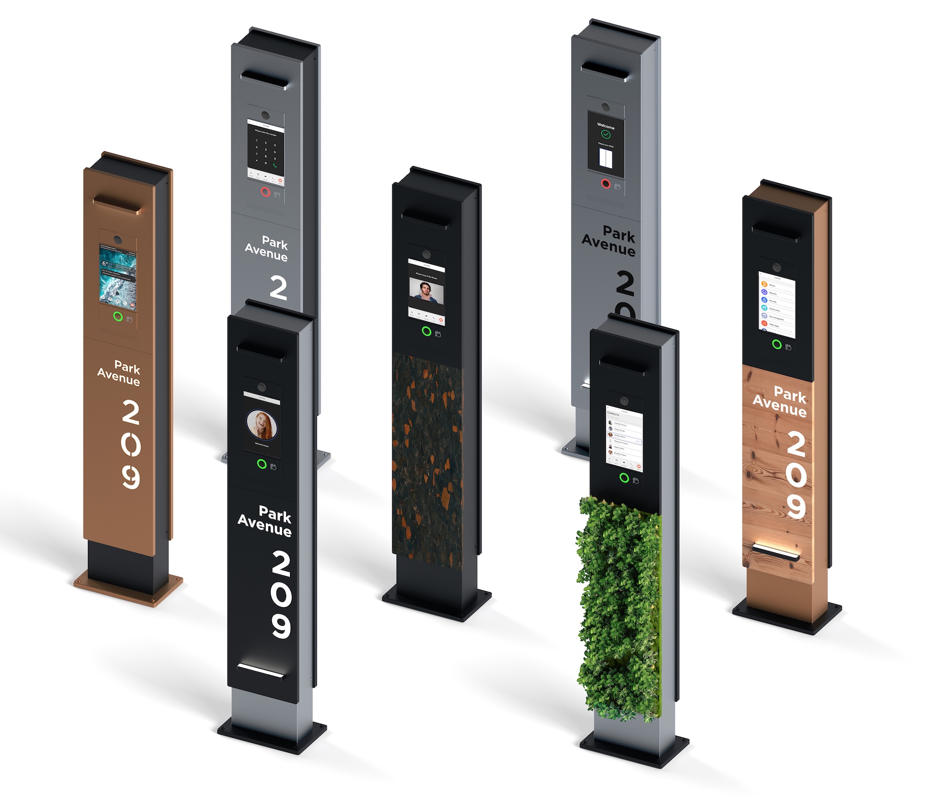BAS-IP Obelisk is an AI pedestal with an integrated IP outdoor intercom system. A wide variety of natural materials like still, wood, granite, or grass allows you to confidently install the Obelisk in contemporary residential complexes or office buildings. There are seven authentication methods: code, access card, face recognition, application, BLE, QR code, or one-time URL. Our goal was to develop the most technologically packed device of its kind with an eco-friendly and versatile appearance well suited to any modern residential architecture. Obelisk looks significantly different than any in-built intercom solution, creates an original monolithic composition like an independent object. Through the combination of cutting-edge AI intercom technologies and natural materials, it creates a whole new category of devices. It remembers all the residents. With the help of the most advanced deep learning neuro engine, it accurately recognizes the person in fractions of a second. It also has automatic presence detection, an in-built voice assistance system, temperature measurement, and much more. Unlike most embedded video intercom systems, Obelisk is a separate device with an advanced modular design and a combination of numerous groundbreaking functions. The stand-alone form factor allows us to pack it with the most functional, not the compact, components. The system gives the users the ultimate level of safety and comfort.