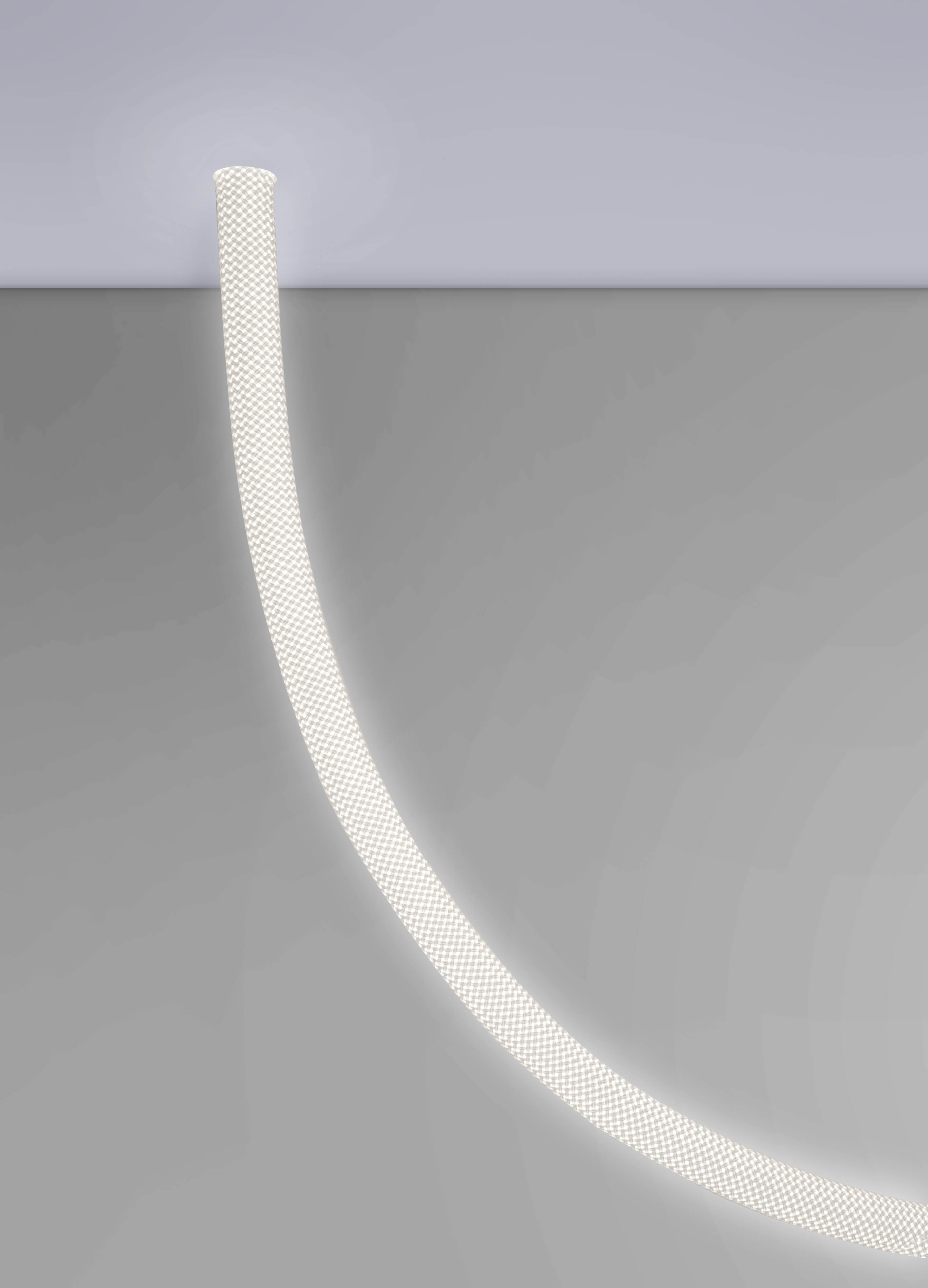The Trapeze 360 is a unique, patented design that offers flowing luminous ropes of 360 illumination via LED light with braided cloth diffusion, allowing you to easily design an elegant fixture sure to be the centerpiece of any room that can be simultaneously exciting and subdued. A vanishing point connection gives the feeling that energy is flowing to and from your ceiling. Both warm dim and TruColor™ RGBTW are available to compliment any lighting palette required. Trapeze 360 24VDC, Static White, Warm Dim & Tunable White
