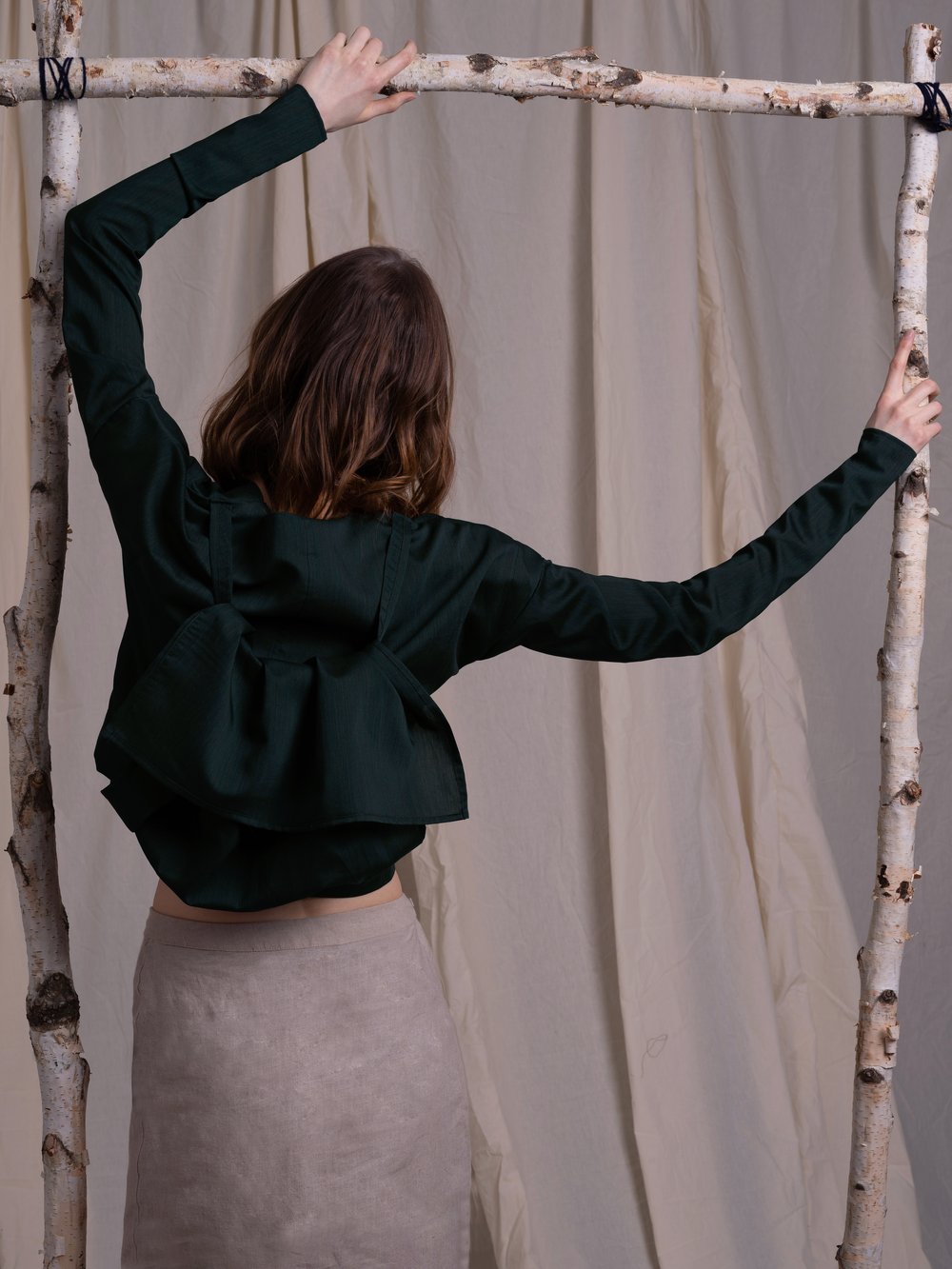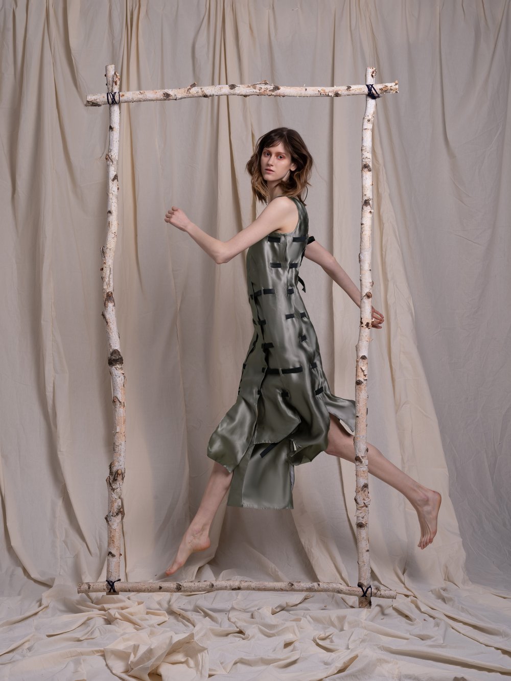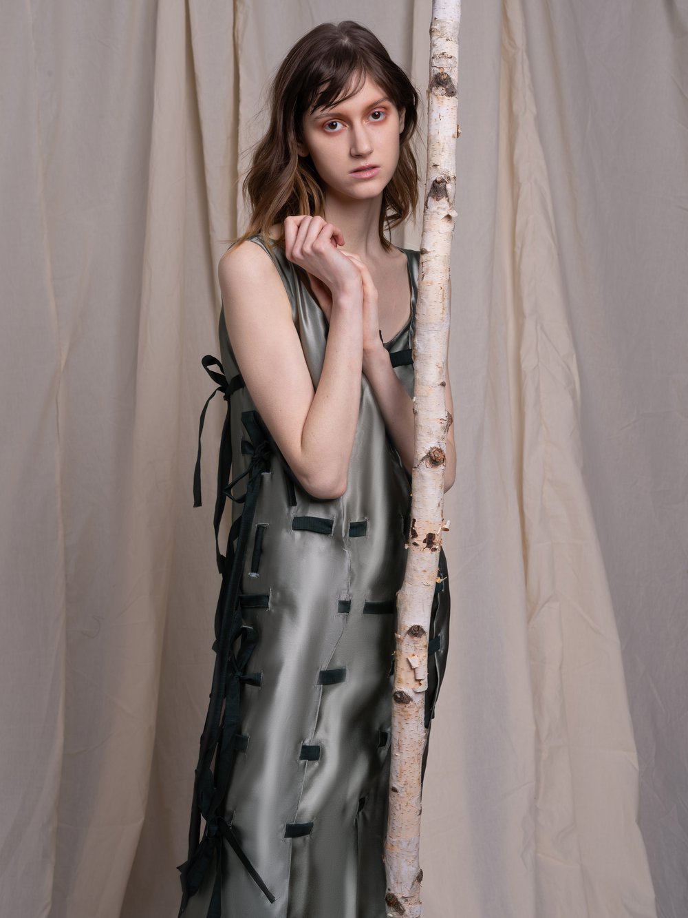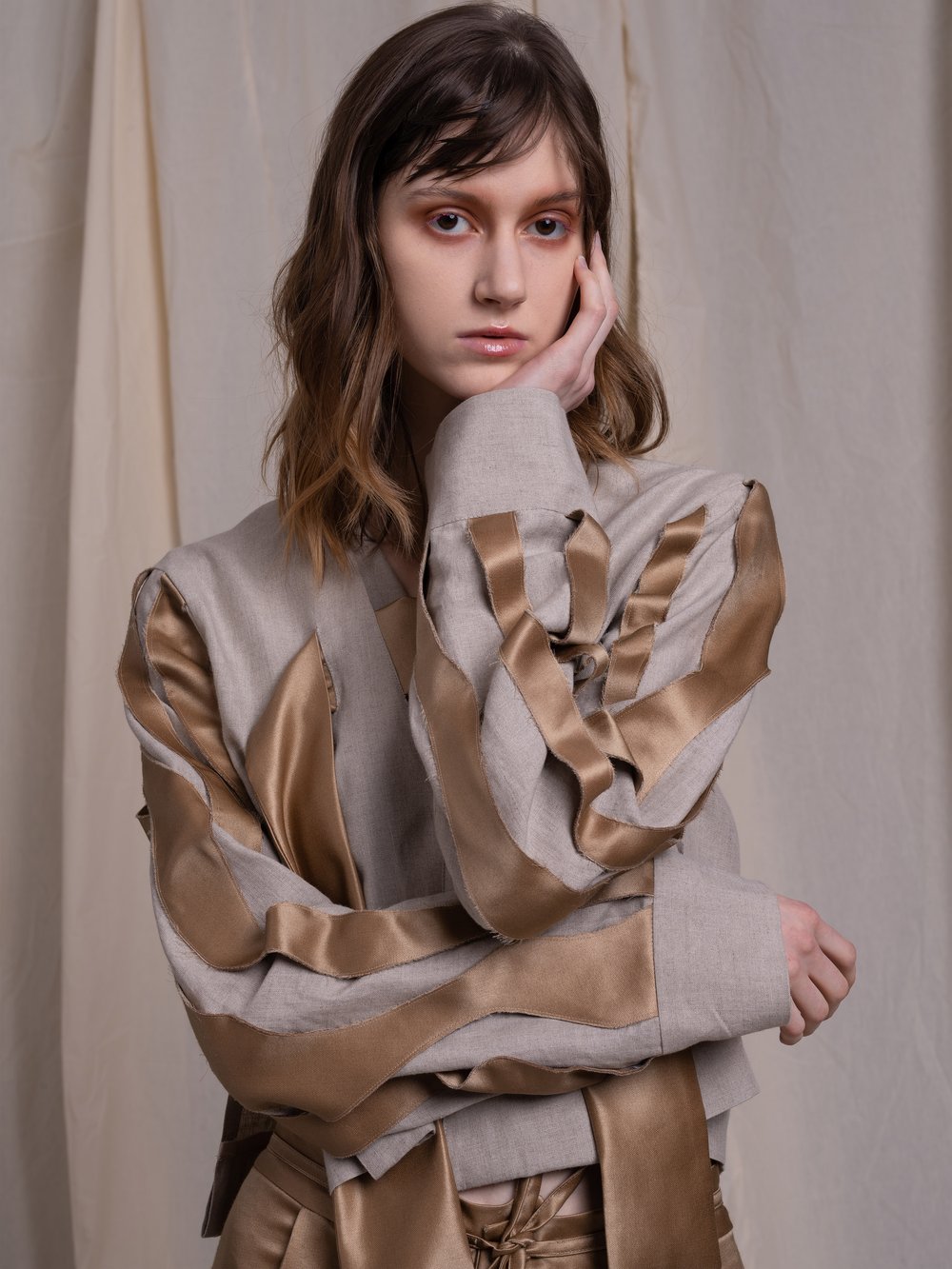 In this collection, I explore repetition and slowness through design. The garments feature multiple layers and closures that require time and attention—buttons and straps replace zippers to encourage an unhurried engagement with the clothing. There are no shortcuts. Dressing becomes an intentional act, a form of slow art.