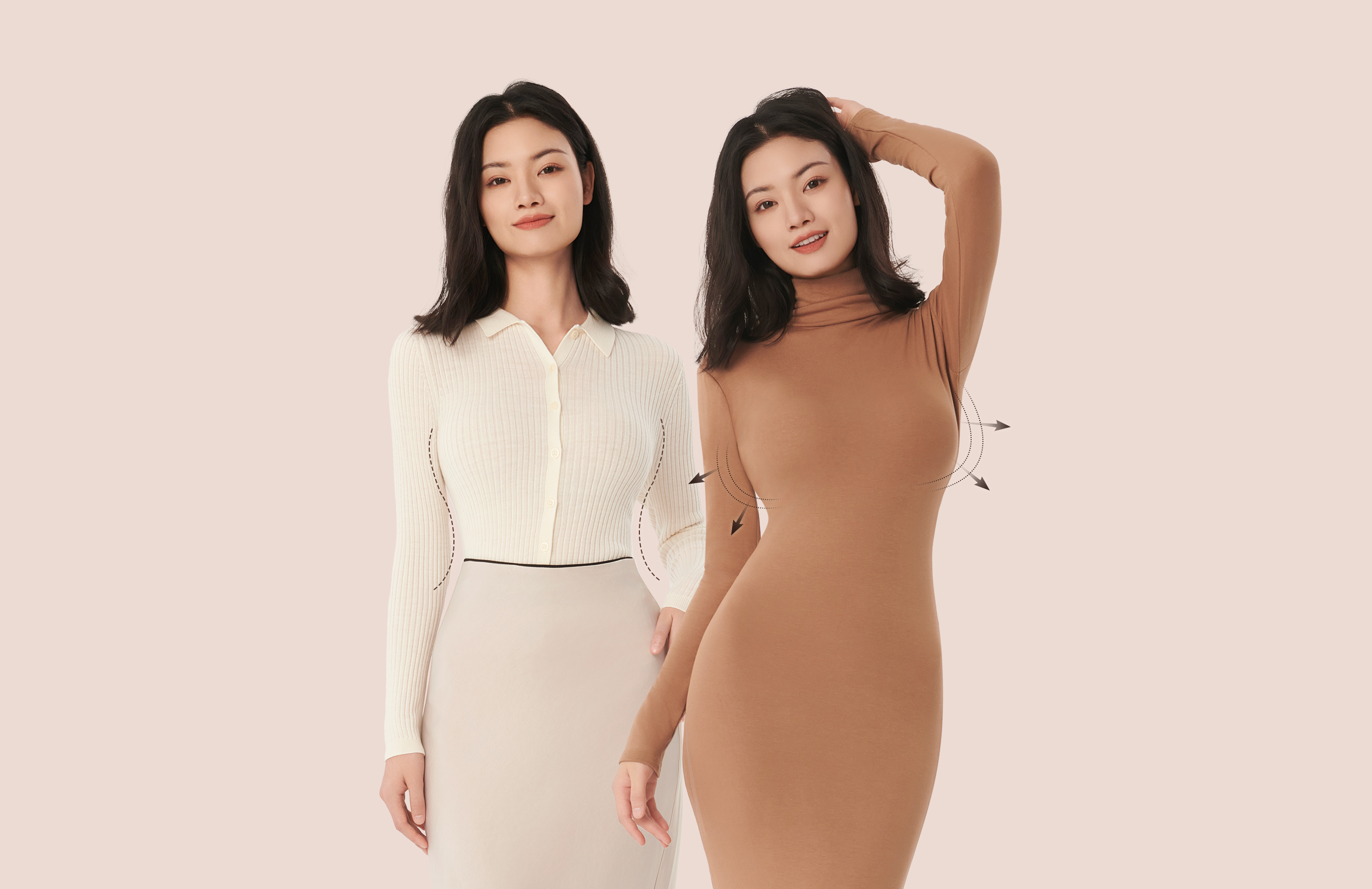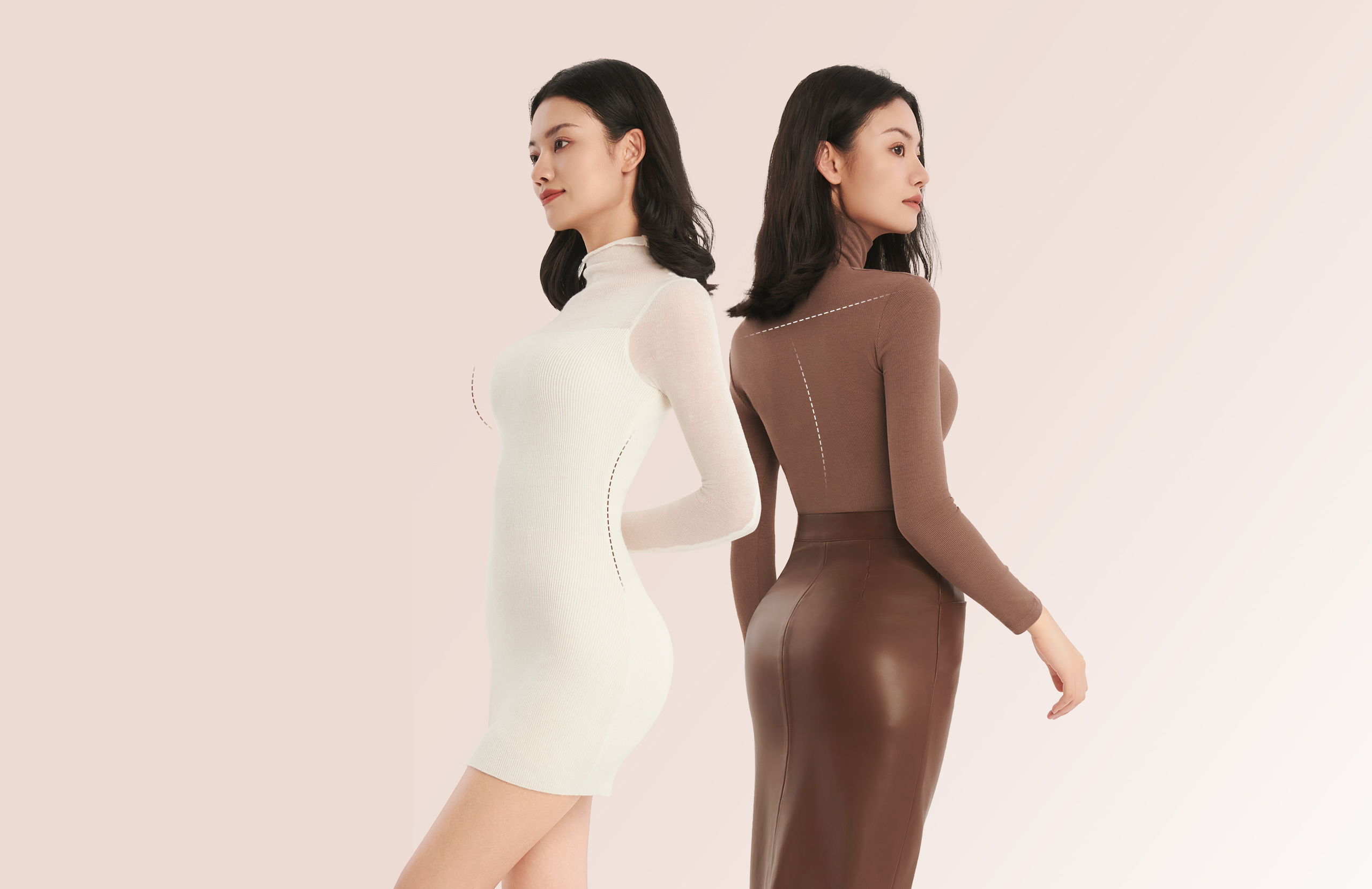 The seamless adhesive bonding and jelly-like soft support technology ensure that the undergarment provides both even support and comfortable breathability. The overall enveloping adhesive design features over 30,000 seamless bonding points, enhancing the stability of the undergarment while maintaining excellent resilience and preventing deformation, as well as minimizing bulges and sagging. The W-shaped jelly strips replace traditional underwire, ensuring effective support without adding pressure. The adjustable five-stage front closure design caters to individual preferences. The back features a one-piece vest structure, combining a 150g four-way stretch spandex fabric with perforated material to enhance breathability and avoid indentations, creating a seamless shaping effect.