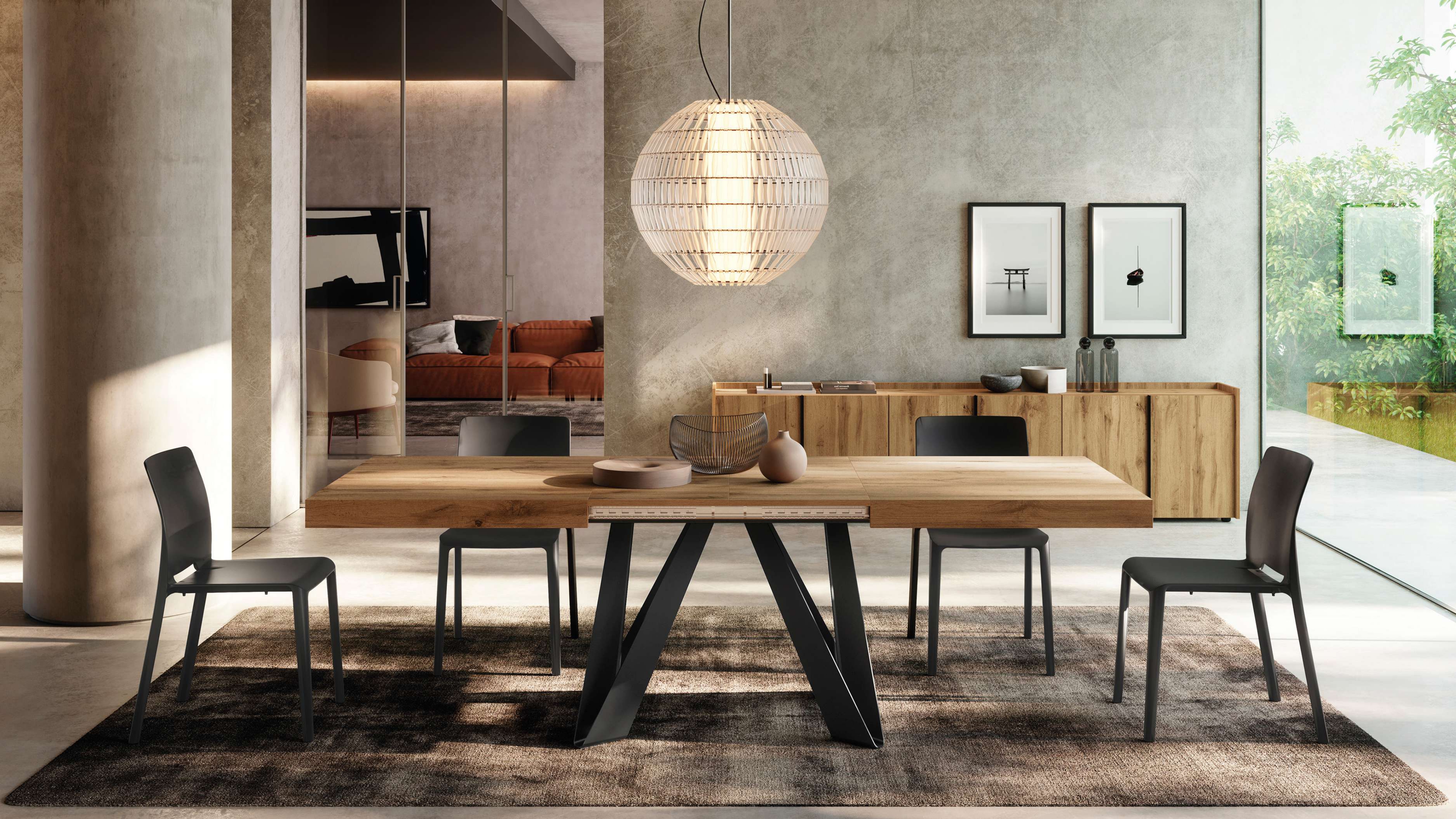 The Romina table stands out with its distinctive industrial flair and exclusive, sculptural design. Created for contemporary homes, it blends the robustness of iron with the warmth of wood, offering a sophisticated focal point for dining or living spaces.