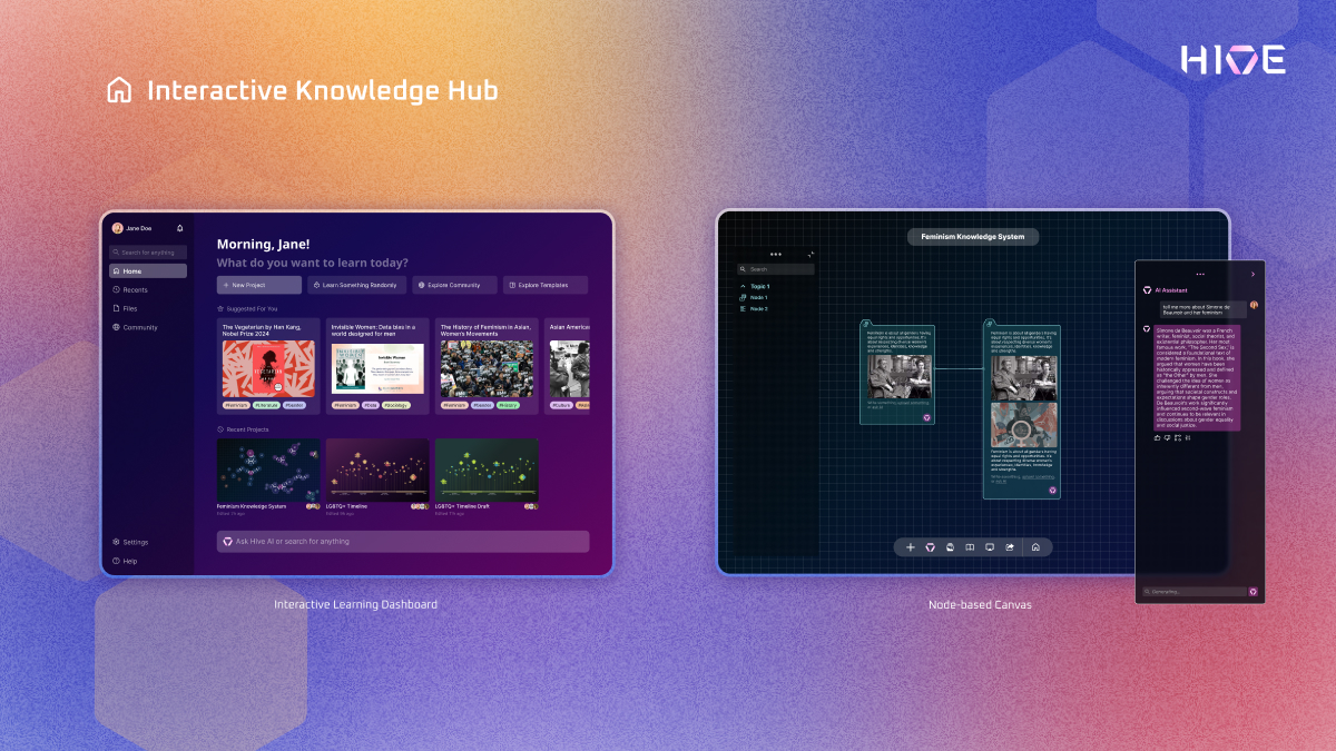 Hive AI is a transformative learning platform that enables learners to build personalized knowledge systems. With our unique “hexagon knowledge nodes” and AI-driven tools like tailored recommendations, knowledge grouping, and dynamic data visualization, Hive supports students, professionals, and researchers in fostering interdisciplinary exploration and managing complex information.