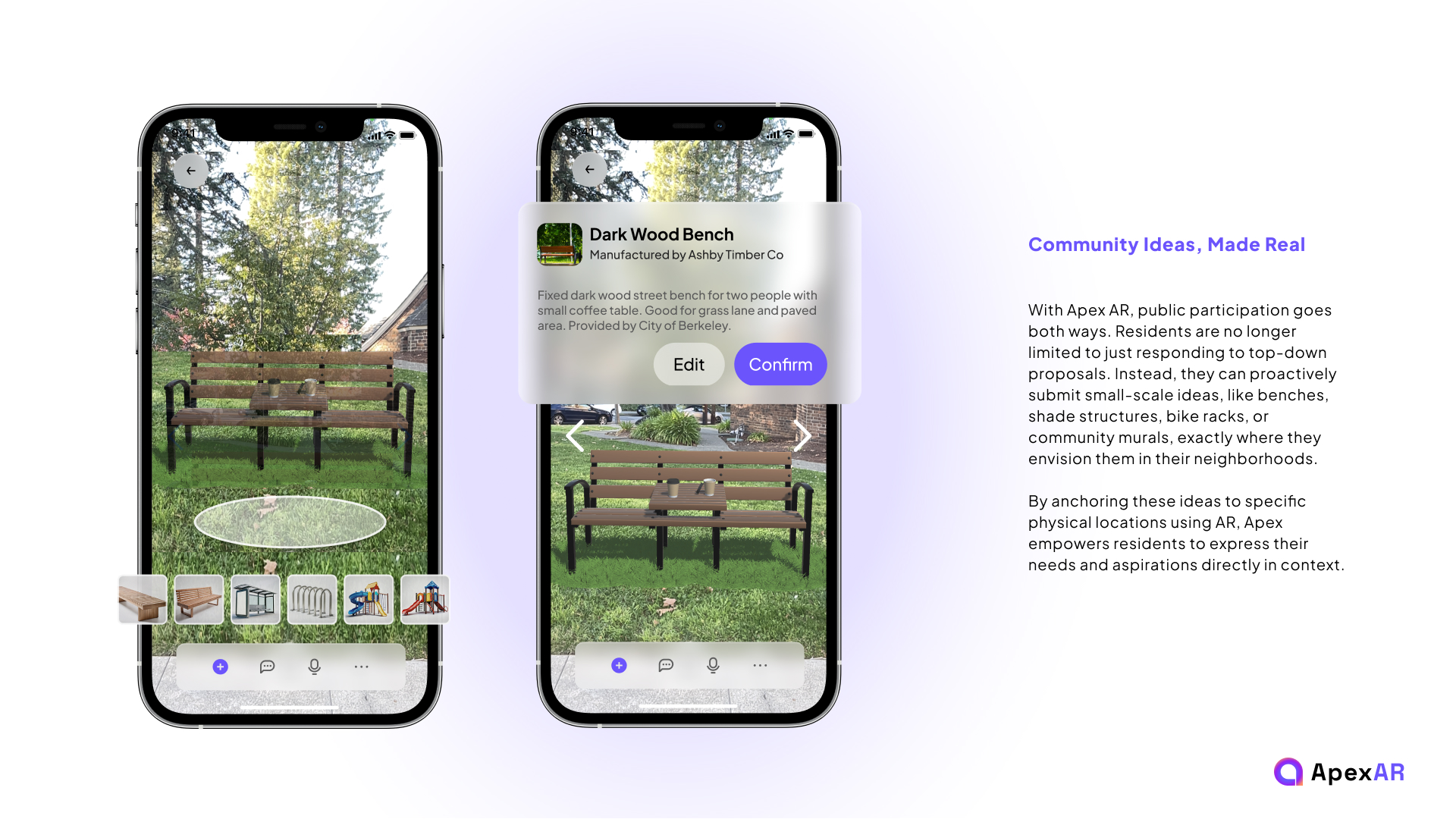 By reimagining how residents see and shape their cities, Apex AR brings participatory urban design into the 21st century.