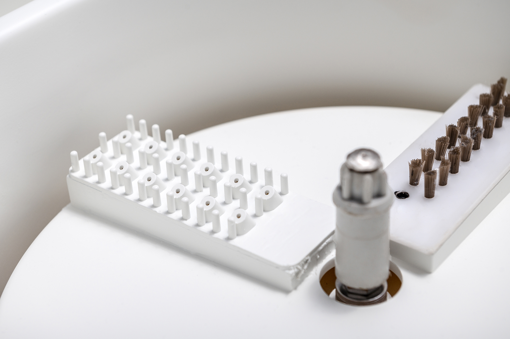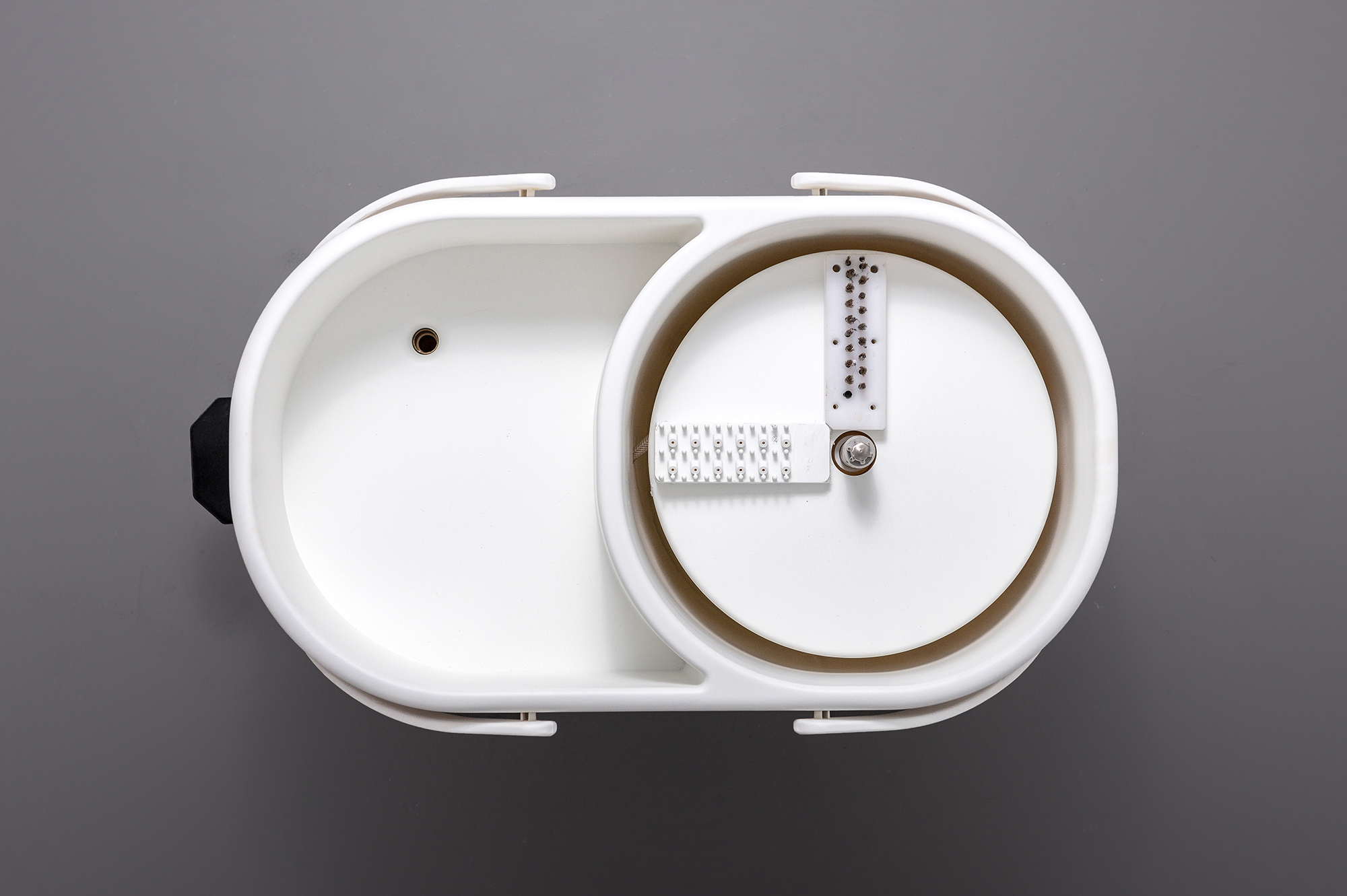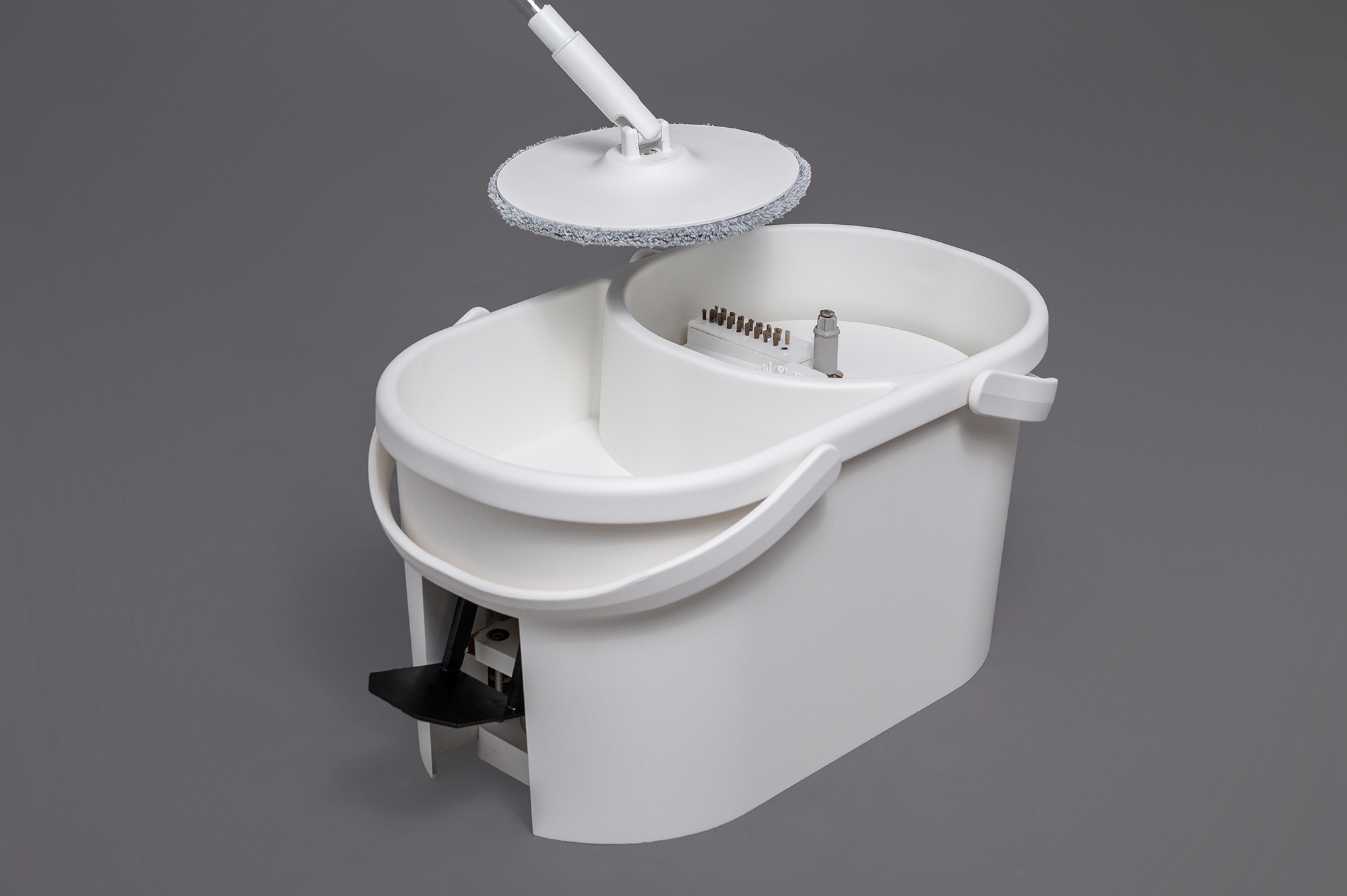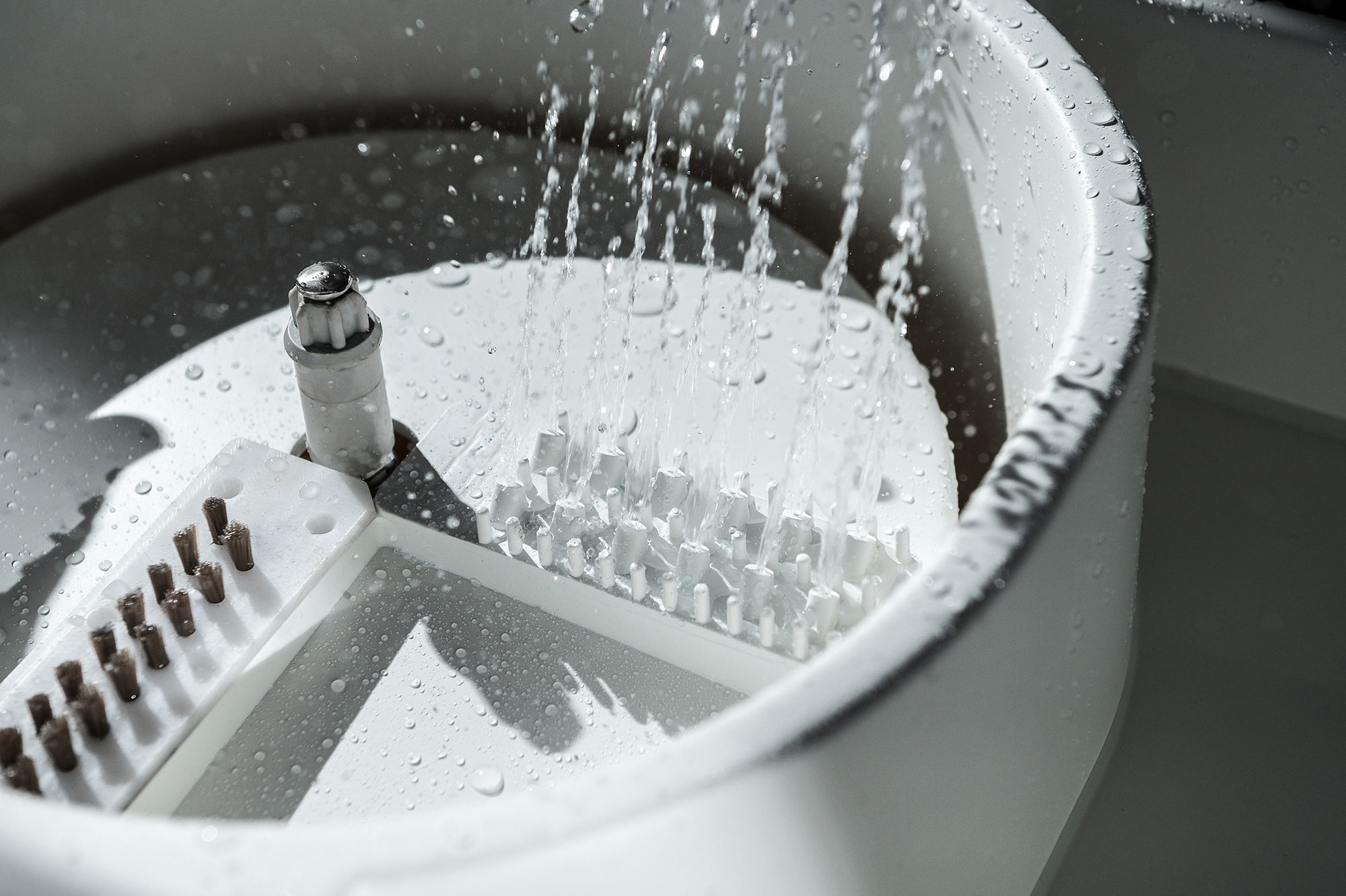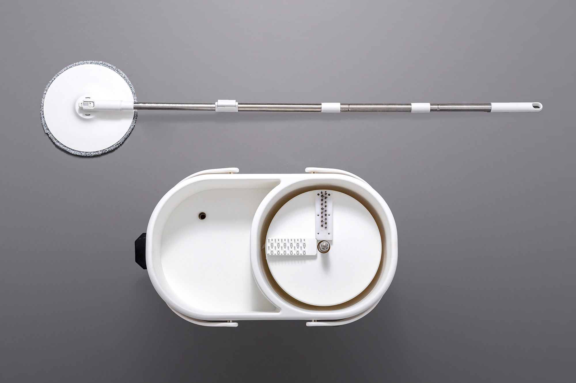 Additionally, the thoughtfully designed matrix brush works wonders by effectively capturing hair, grease, and various particles, thereby maintaining the mop's cleanliness and eliminating any unsightly residue. Remarkably, each cleaning cycle uses only 40 milliliters of clean water. When the system is filled with 2 liters of water, it can perform an impressive 50 full-cycle washes. In stark contrast, traditional rotating mops typically consume between 6 to 8 liters of water per use.
