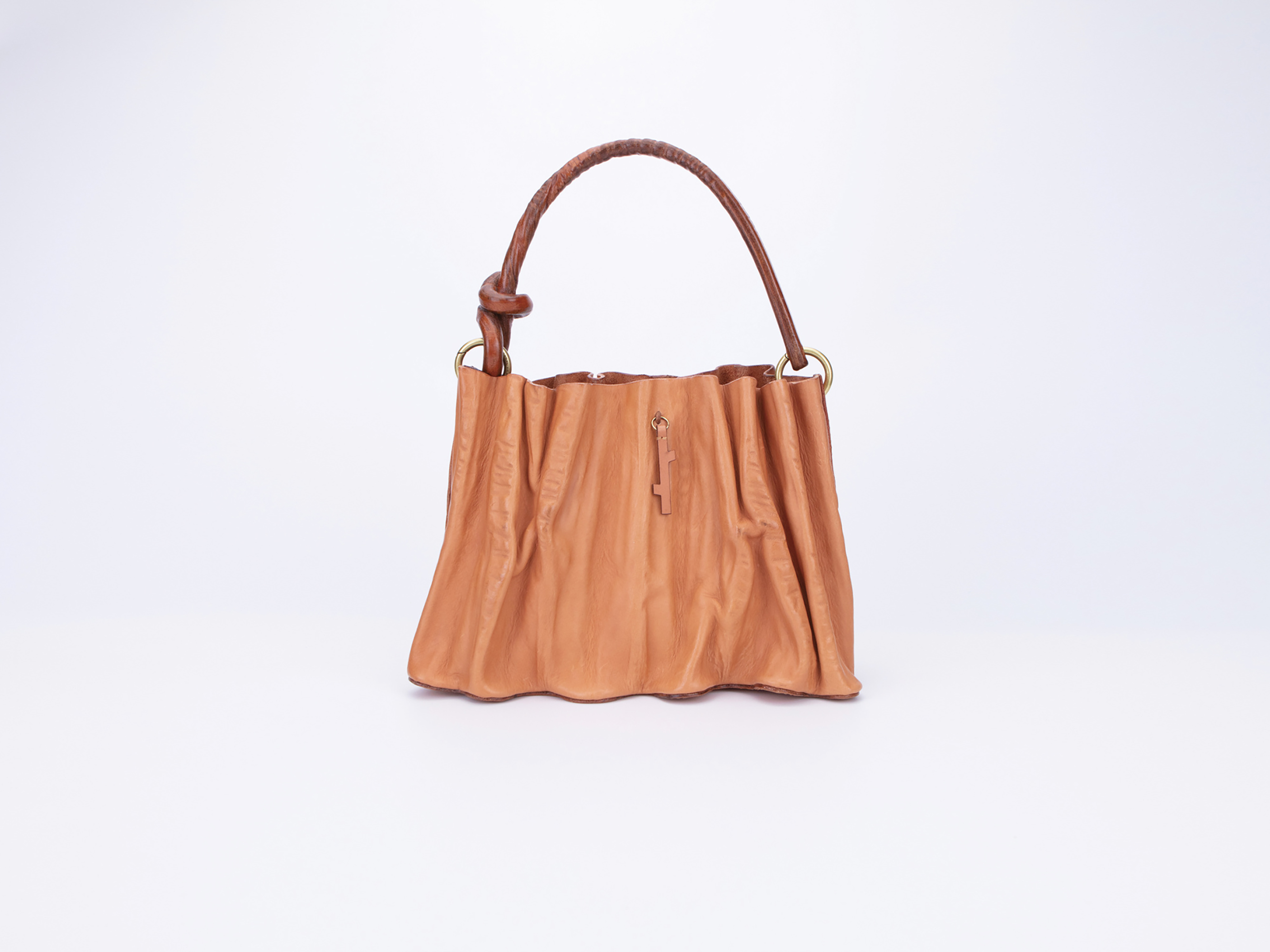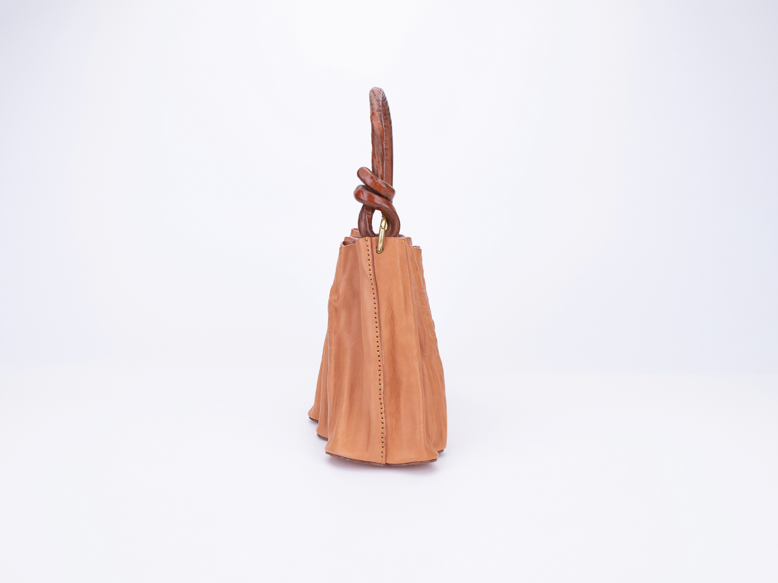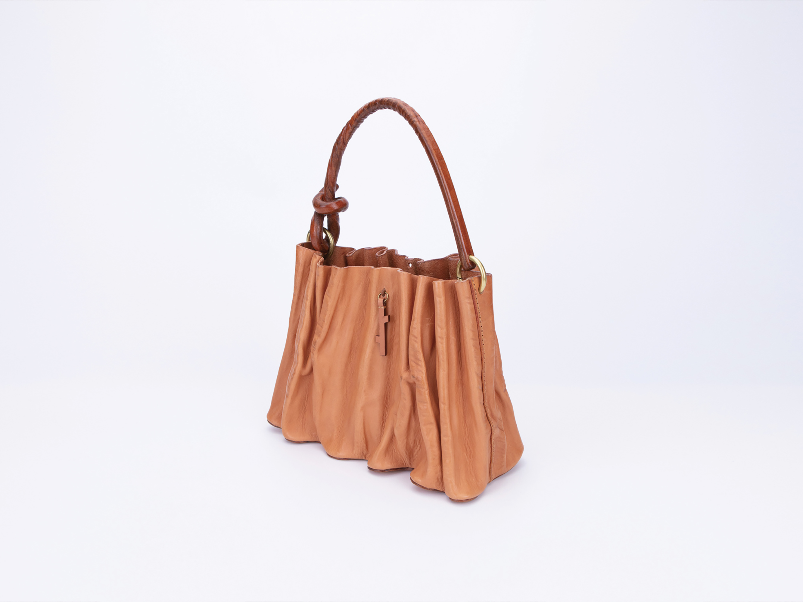 The bag not only has a unique shape, but each one will be unique during the production process. It is also a small sculptural work.