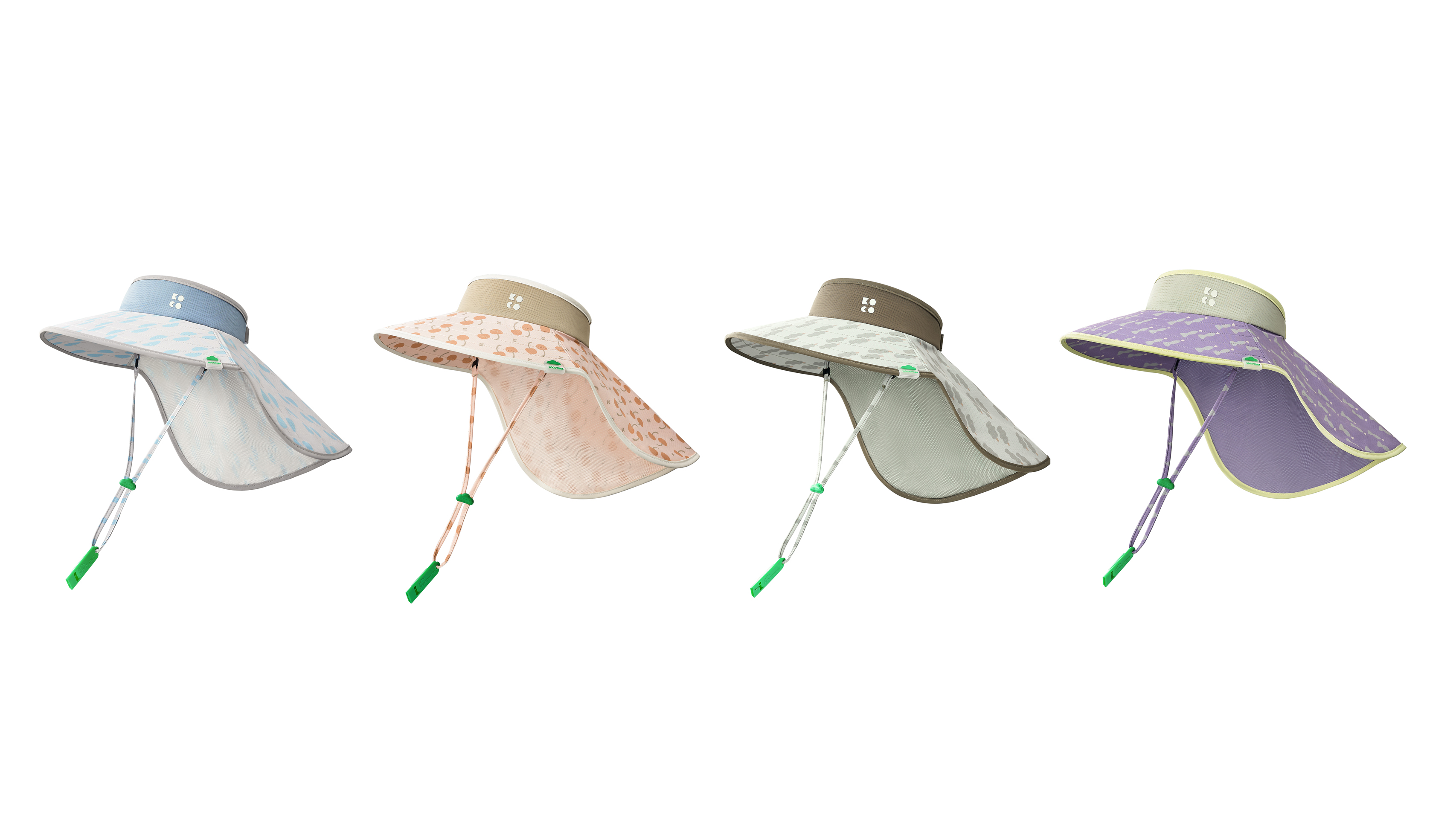 Kocotree Empty Shawl Hat is a revolutionary sun protection accessory designed for children's outdoor adventures, seamlessly blending robust functionality with playful charm. Upholding the brand's unwavering commitment to children's health and safety, both TiO2 UV-blocking factors and cooling agents are woven directly into the yarn fabric. This results in a yarn-based protective fabric that offers an impressive UPF of 83 and a cooling coefficient of 0.23, delivering a refreshingly cool sensation. Remarkably, even after undergoing 1,000 washes, its protective capabilities remain uncompromised. Moreover, a high-performance sweatband paired with micro-vented fabric wicks moisture to the surface, achieving Level 4 quick-dry properties (as verified after 1,000 washes) to keep the forehead dry and comfortable. Strategic mesh panels prevent heat buildup, allowing children to fully enjoy outdoor activities. To deliver safer and purer antibacterial performance, this hat utilizes photon broadband irradiation technology to permanently alter the yarn's molecular structure. This creates a "super-powered antibacterial shield" that far exceeds 7A-grade antibacterial standards even undergoing 1,000 wash cycles. Unlike traditional chemical-treated antimicrobial solutions, this innovative approach ensures absolute safety for even infant skin contact.