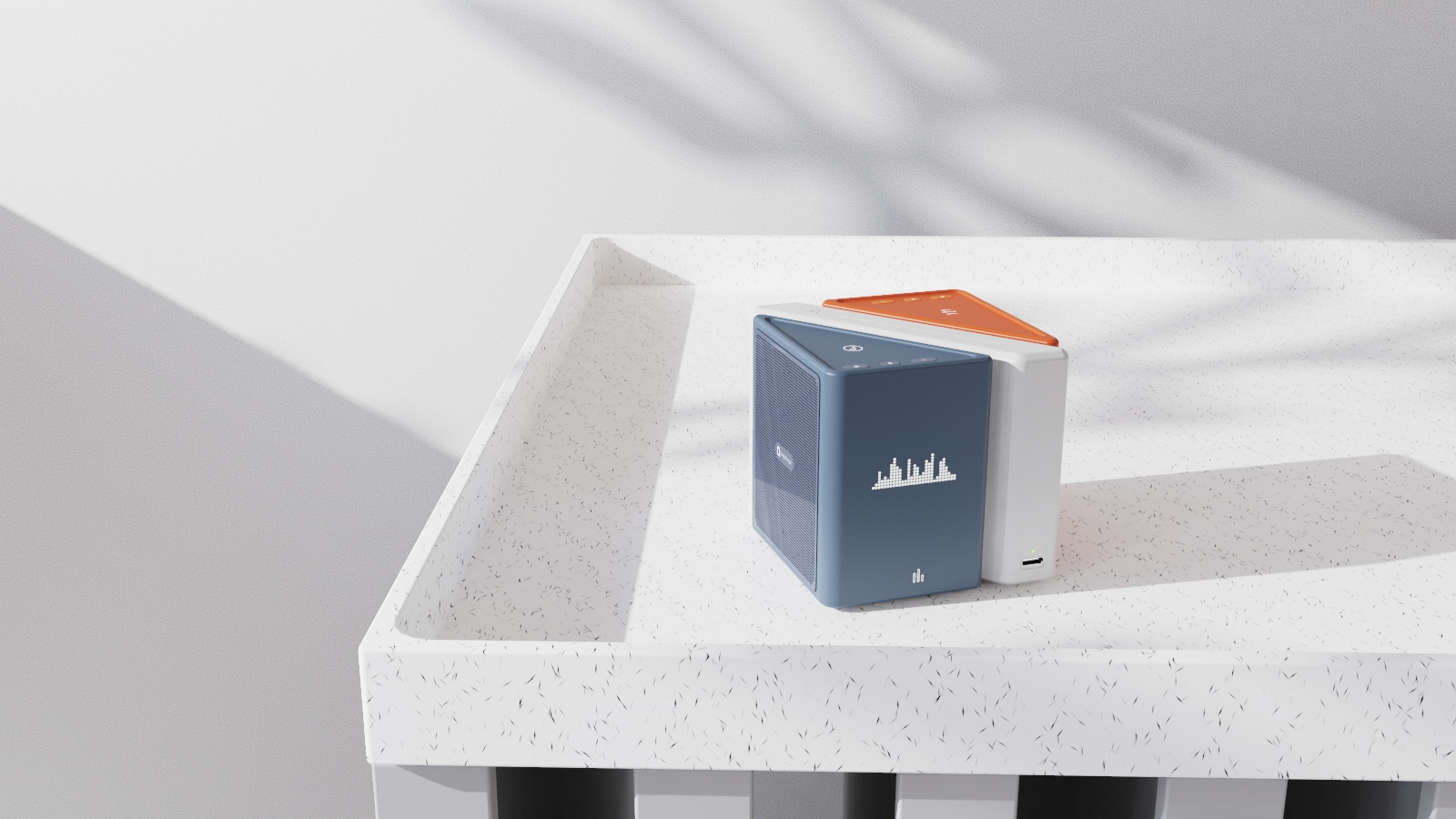 The sound system physically decomposes the existing music, splitting the complete music into accompaniment and lyrics. The user can listen to the accompaniment alone or just the song, or listen to the whole music. The sound adopts modular design, three parts are connected by electromagnetic induction inductive charging. It can be disassembled into three modules to facilitate users to experience the three-dimensional surround function. When used, the user converts the sound into tactile blocks to enjoy the experience of building blocks, which makes the user's experience pleasant.