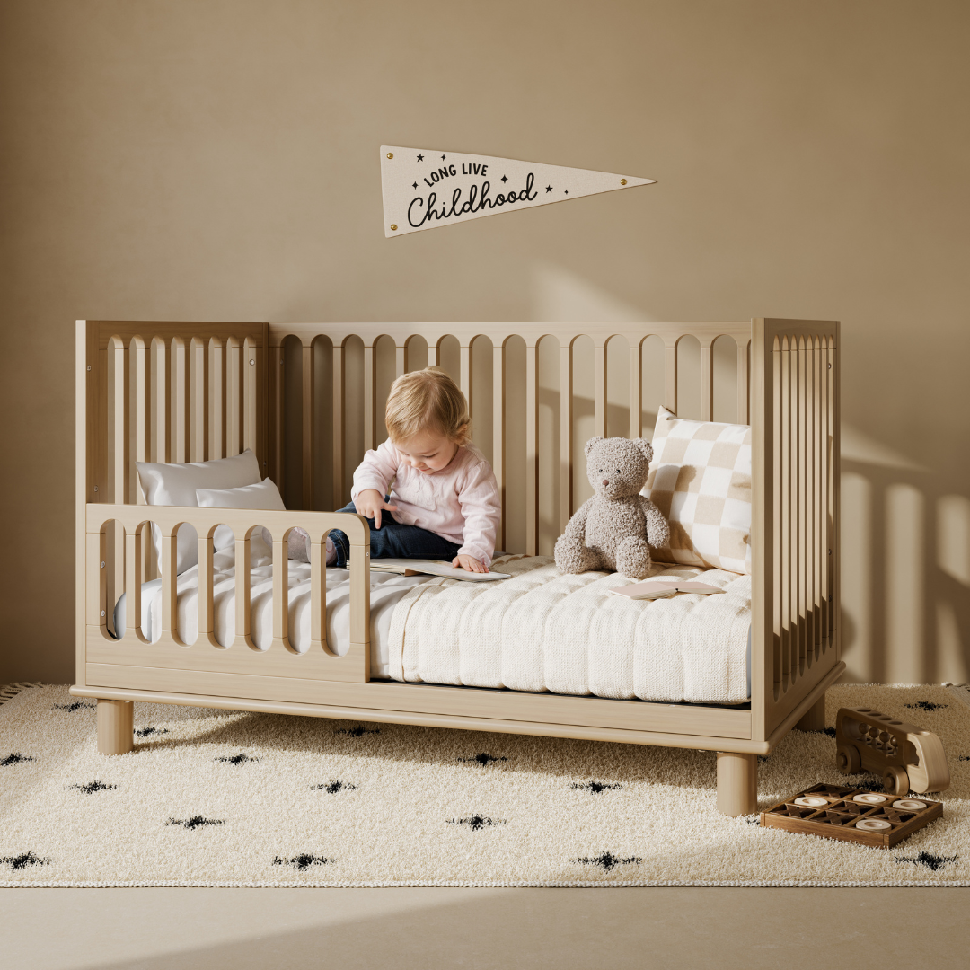 An in-house design from Storkcraft—North America's longest-standing name in baby cribs, makers of fine nursery furniture since 1945—the Sicily Deluxe 3-in-1 Convertible Crib with Toddler Guardrail has quickly blossomed into one of the brand's most beloved, iconic, and sought after nursery pieces. A part of Storkcraft's exclusive, premium, design-forward Art of Nursery collection, the Sicily stands out from other cribs in the market due to its iconic, arched slats and softly rounded, cylindrical feet. A nod to Italian architecture, history, and excellence, the Sicily’s iconic arched slats pay tribute to Italy's Roman aqueducts while the Sicily’s chunky, substantial, cylindrical feet pay tribute to columns found across Italy's historic relics and sites. The Sicily originated as a hand-sketched design by Storkcraft's very own Justin L. Segal (co-owner and Vice President, Product & Brand), and was brought to life by Dashiell Corvin-Brittin (Head of Product Design) and Chris Wyman (Vice President, Quality & Sourcing). To provide the utmost value and convenience to families, the Sicily includes a premium, matching, longer-length toddler guardrail in its box — meaning, the Sicily is ready to be converted into a toddler bed, without the need for an additional purchase. To match seamlessly with the rest of the crib, the Sicily’s bonus toddler guardrail also contains the Sicily’s defining arches. The Sicily is currently available in two, rich wood tones—Driftwood and Hazelnut—and three calming, two-tone colorways—Sage with Driftwood, Olive with Driftwood, and Frosted Oat with Driftwood. Since its launch, the Sicily has been an instant success in the North American market: achieving (and holding onto) Amazon’s #1 New Launch within the Crib category. The Storkcraft Sicily Deluxe 3-in-1 Convertible Crib with Toddler Guardrail is a grow-with-me design, transforming from a crib into a toddler bed and daybed. The Sicily, exclusively from Storkcraft — makers of fine nursery furniture since 1945, and proudly serving families for 80 years. Delivering childhood memories.