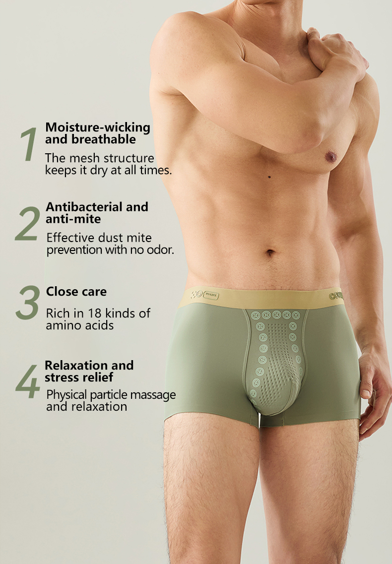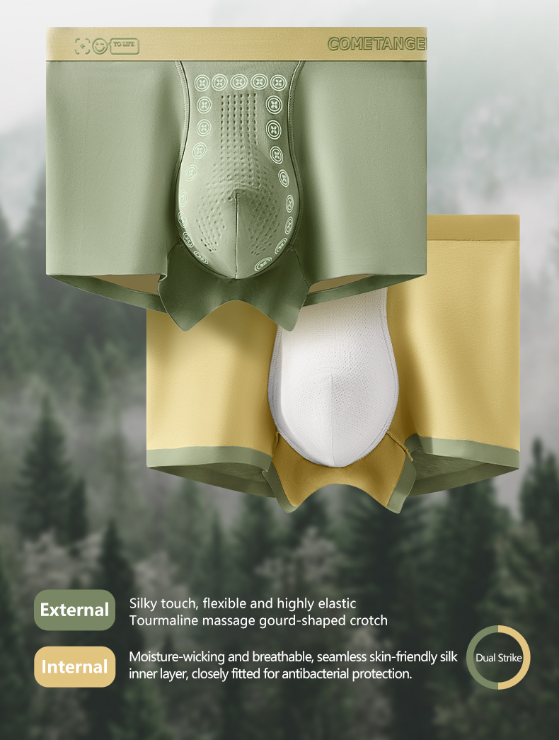 Additionally, designers have strategically embedded and arranged 192 tourmaline particles between the crotch fabric and lining, following the natural shape of the male private area. Tourmaline, a natural mineral crystal, exhibits thermoelectric and piezoelectric effects, releasing far-infrared rays with wavelengths of 7–14 mm at room temperature. These electromagnetic waves penetrate the skin’s surface, boosting local blood circulation and improving tissue metabolism, which supports body temperature regulation and physiological benefits.