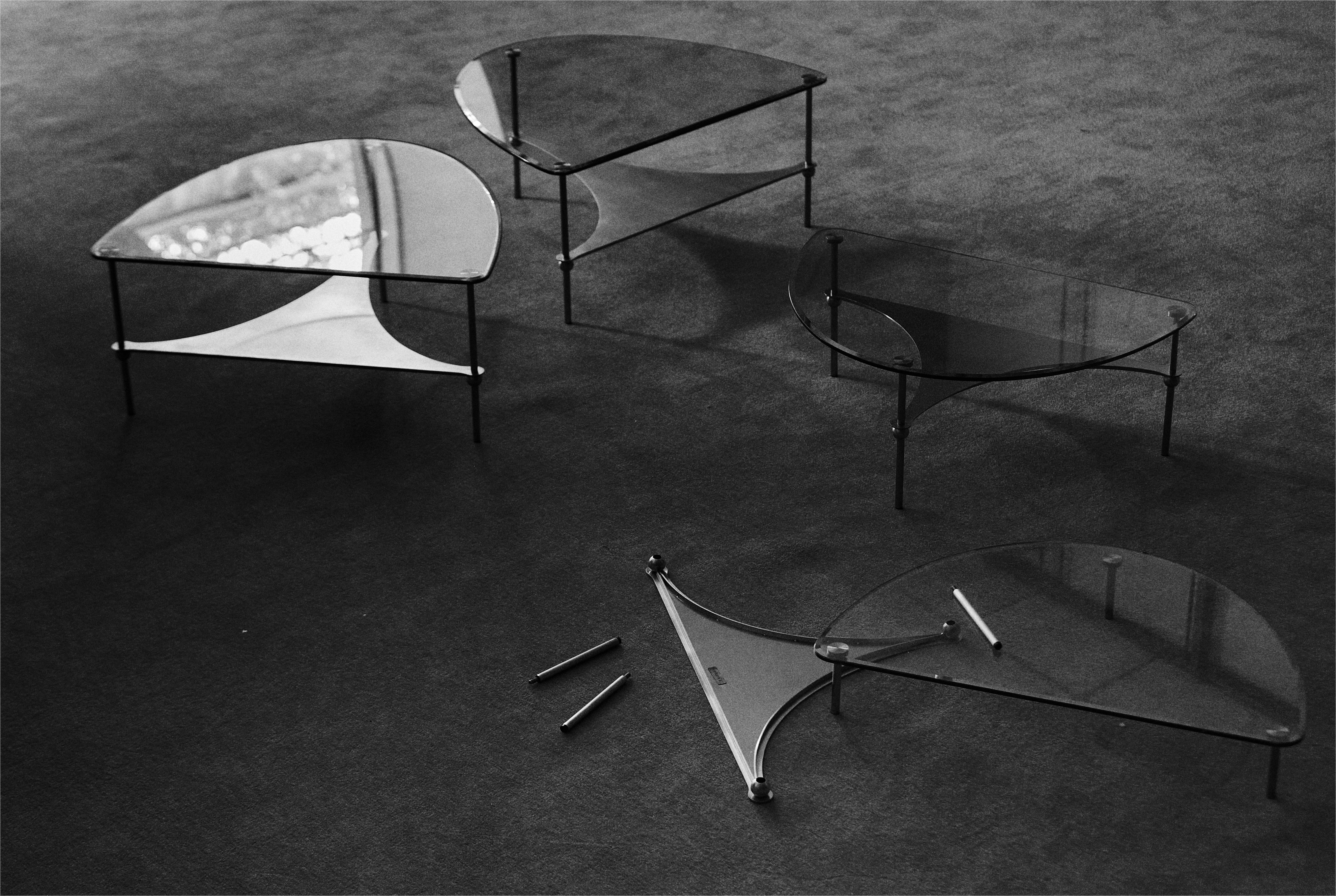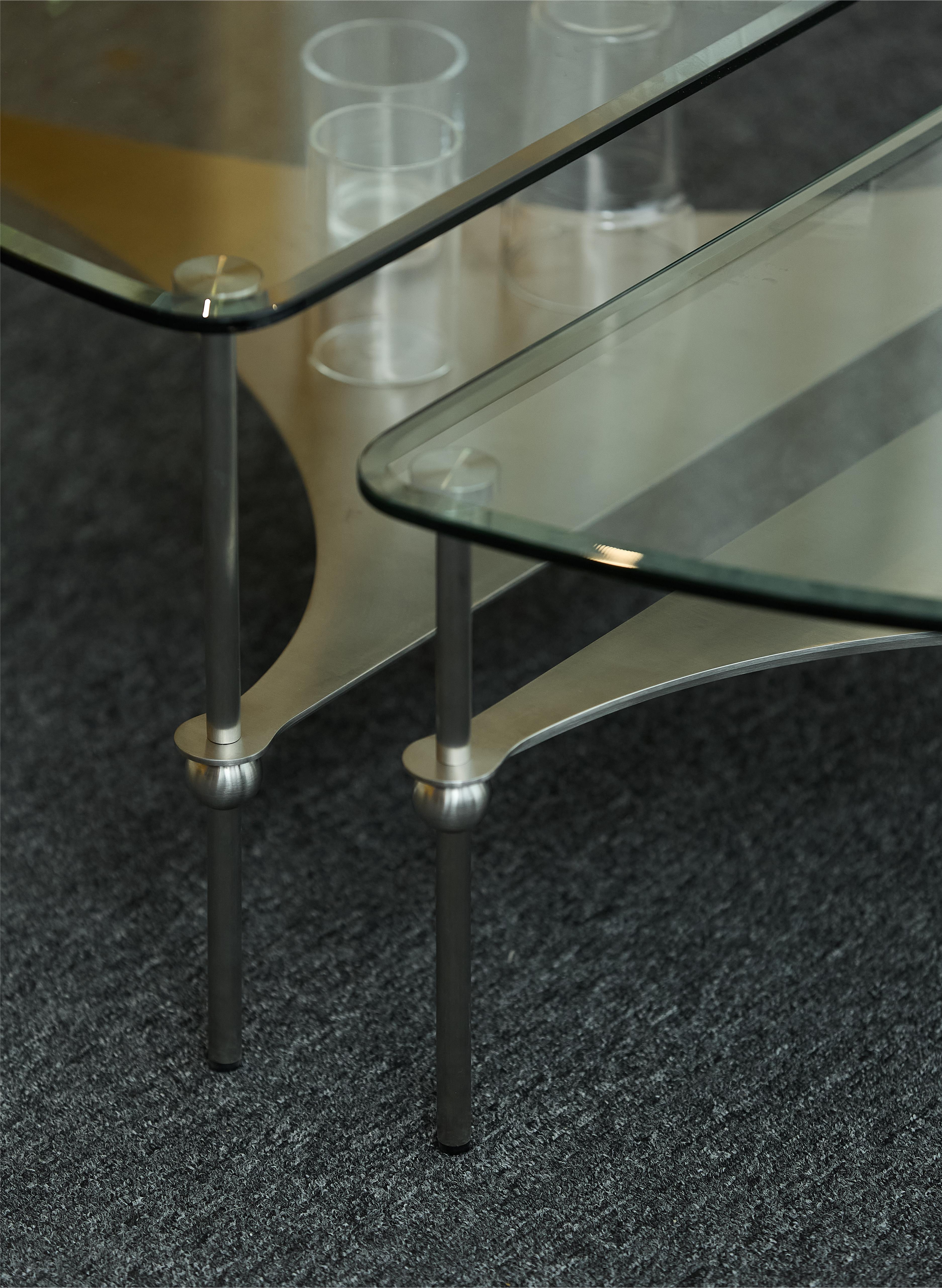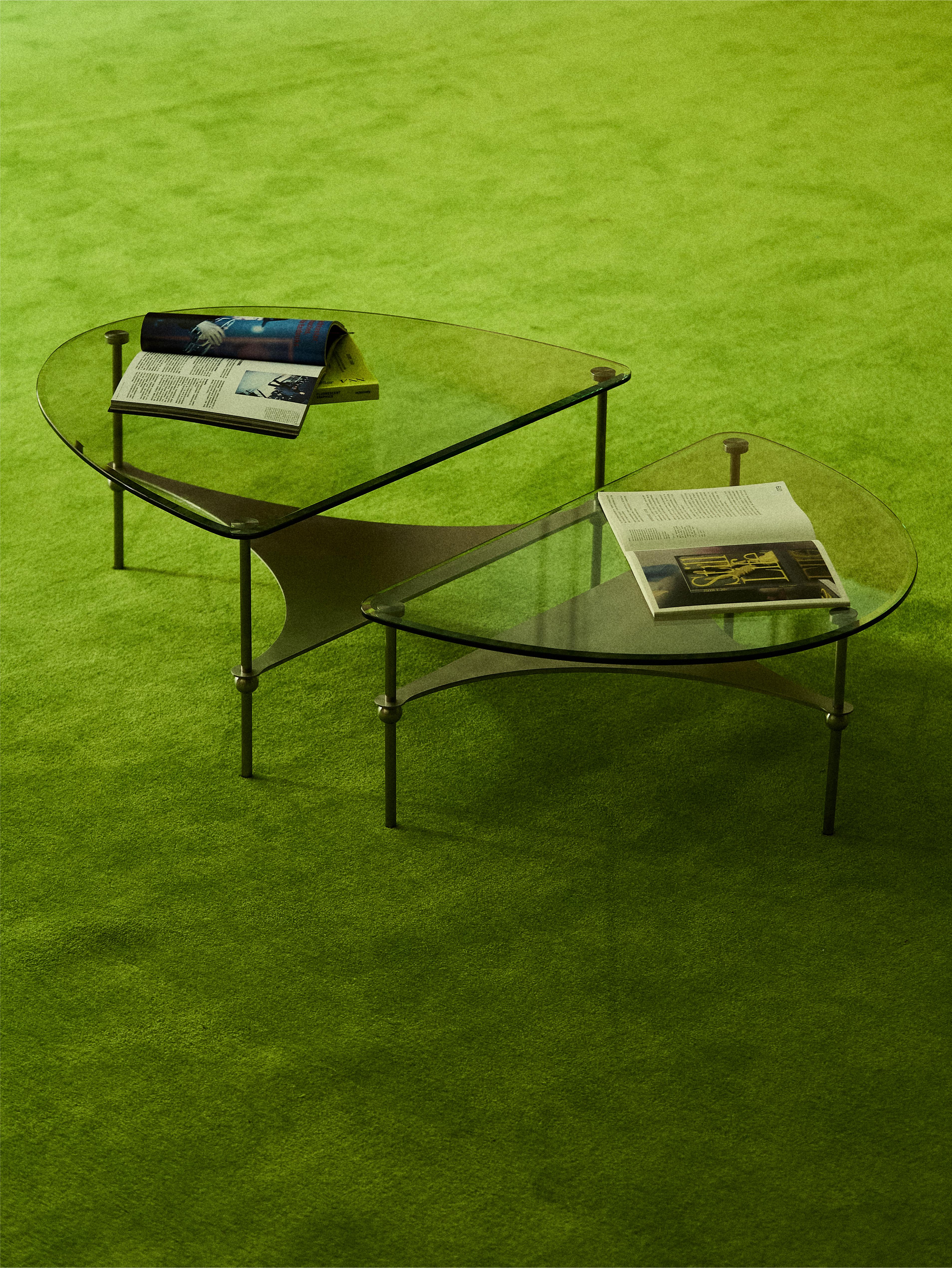 Beyond its flexible configuration, the table also delivers a distinctive aesthetic language. Breaking free from conventional circular or rectangular shapes, the tabletop adopts an asymmetric, droplet-like form that adds playfulness and artistic appeal to the home environment. The lower storage layer takes the shape of stars radiating outward to create a sense of dynamism while visually softening the table’s edges. A highly transparent glass top is paired with a brushed stainless steel storage layer to lighten the visual weight and achieve a harmonious balance between lightness and stability. The dual-layer structure prioritizes both aesthetic form and function, providing ample space to store or display magazines, teaware, and other daily items—maximizing spatial efficiency while contributing to a clean, organized atmosphere.