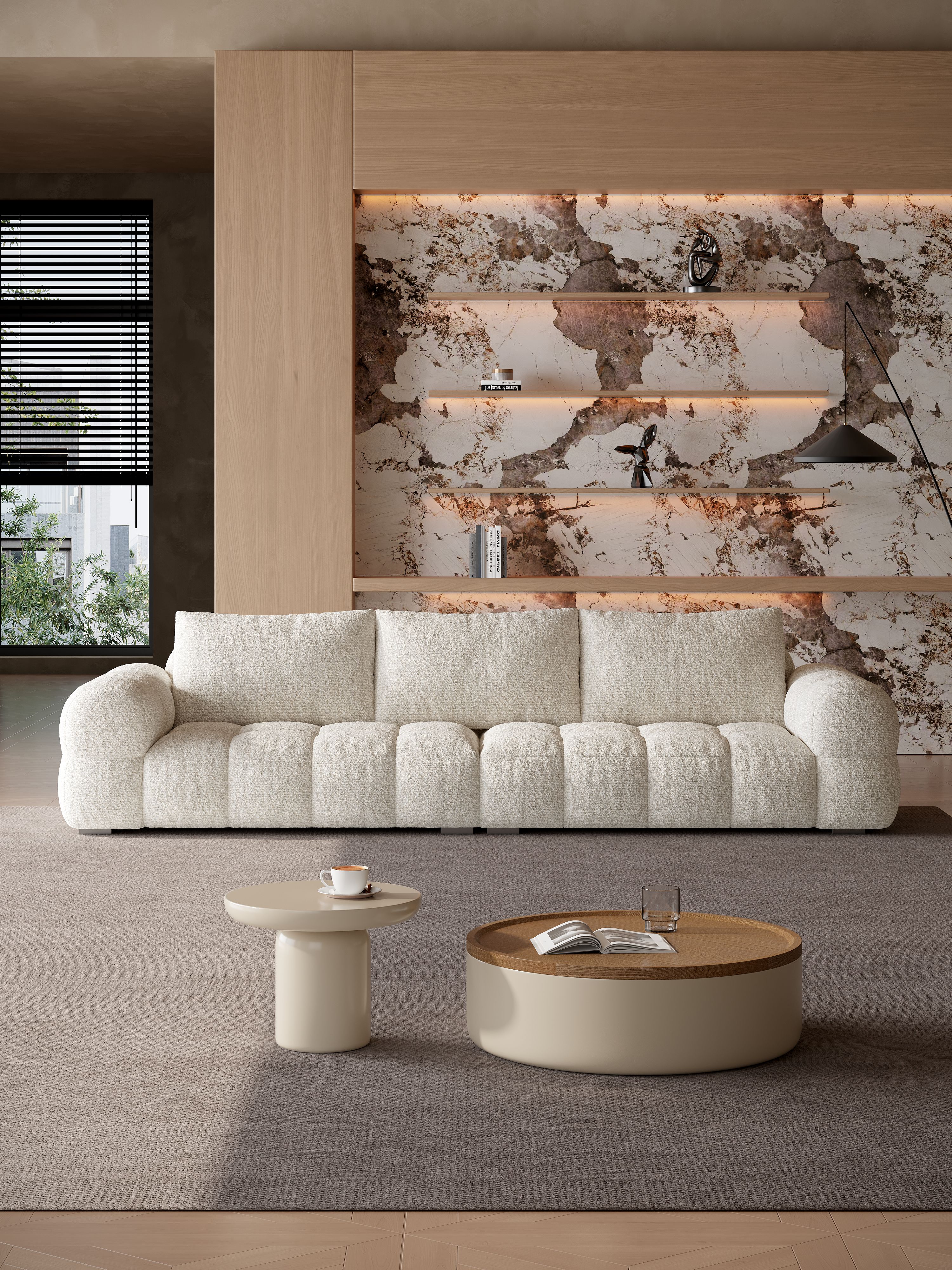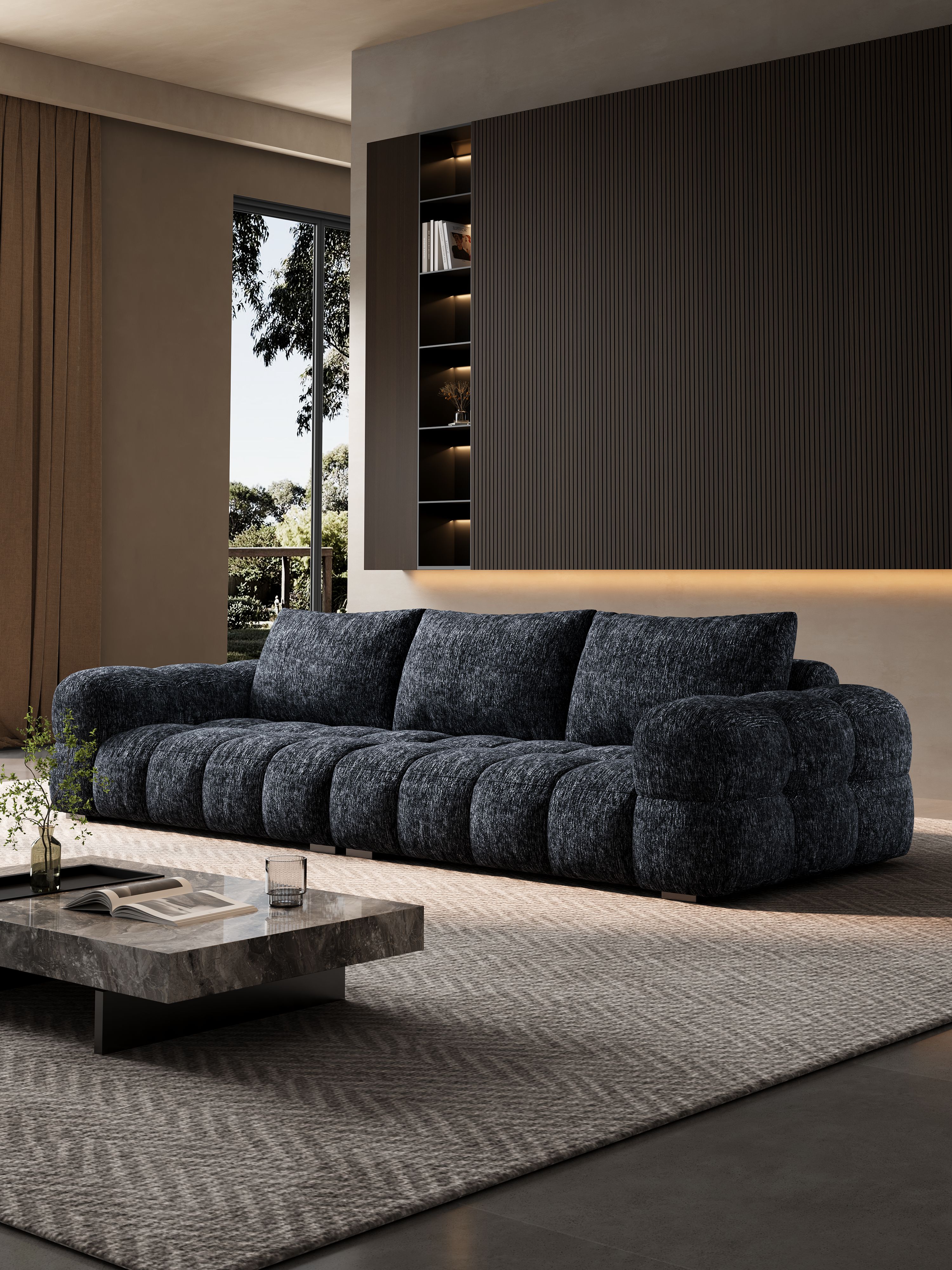 Grounded in ergonomic principles, the design incorporates biomimetic techniques to develop a support system that feels like a gentle, cloud-like embrace. The back cushions combine high-resilience foam with fluffy down, precisely aligning with the natural curves of the neck, back, and hips. Complemented by wide, plush armrests, this thoughtful construction transforms every moment on the sofa into a serene, spa-like experience.
