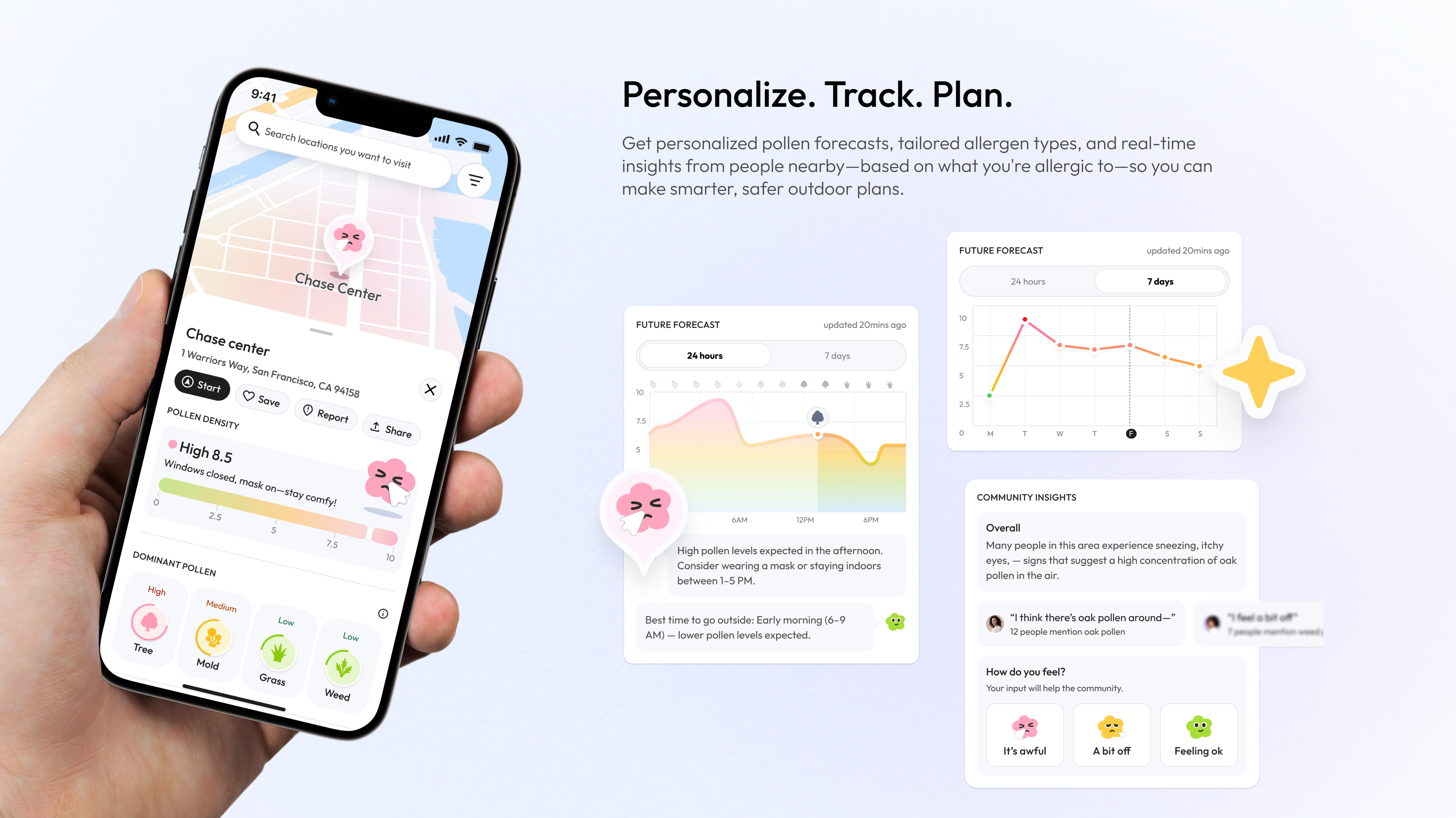Share Pollen Alert: Community reporting of well-being and pollen reactions to help others avoid allergic reactions and improve navigation accuracy across different devices.