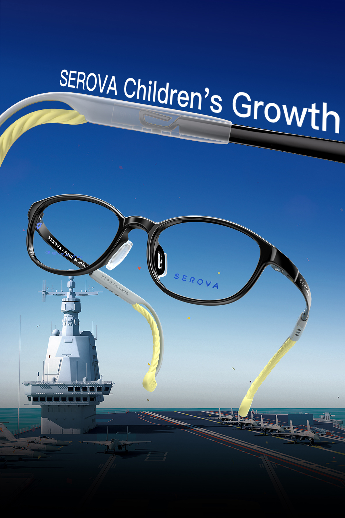 The SEROVA Children's Growth eyeglass frame is specifically developed for the vision correction needs of children aged 6 to 12, with its structure and functionality designed to enhance fit precision and optical performance stability.