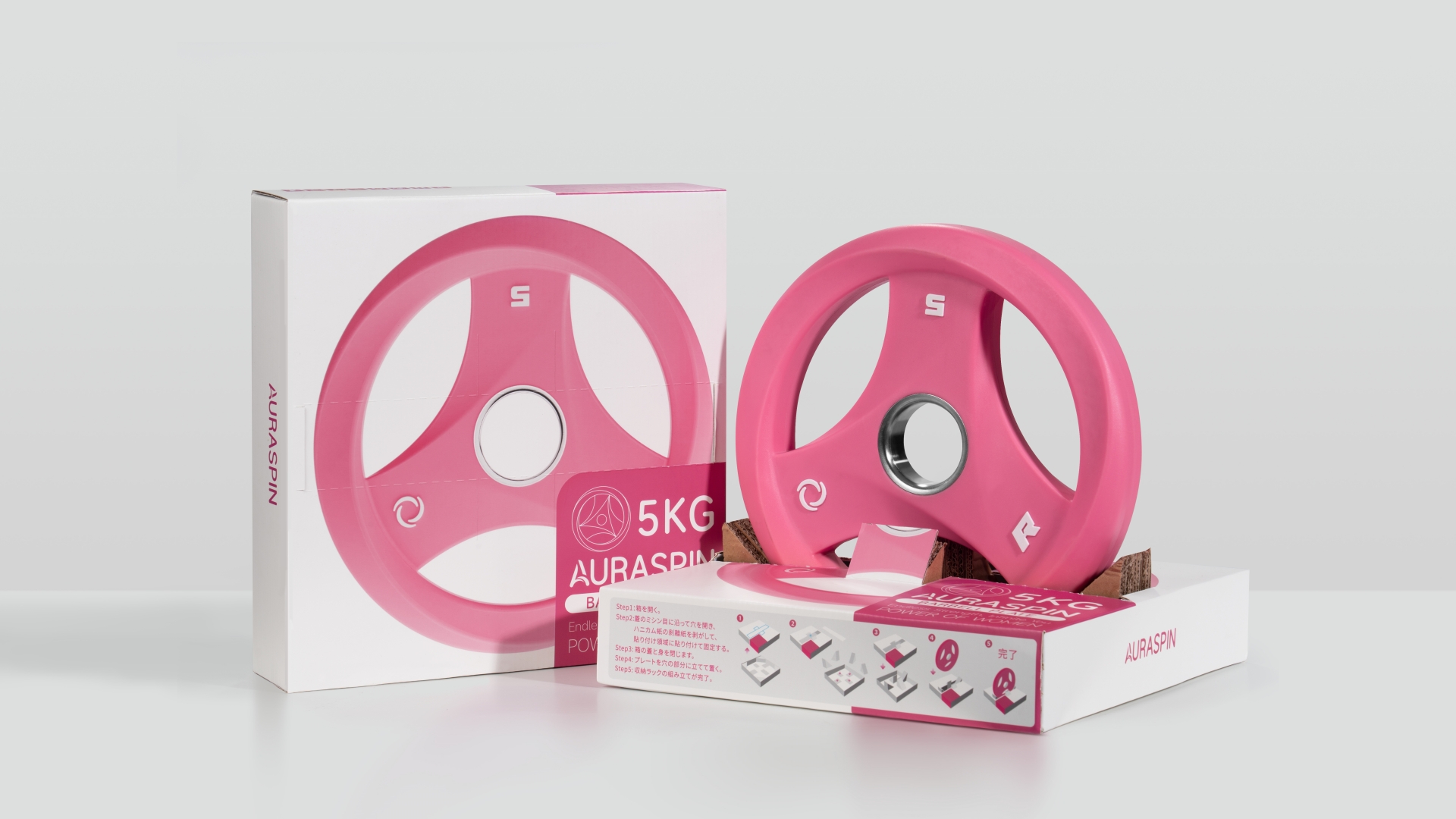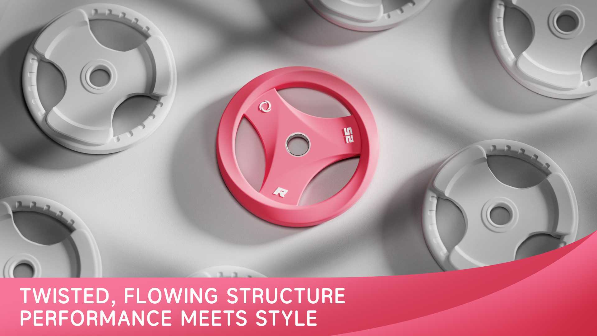 Visually,the design of the AURASPIN weight plate draws inspiration from the Möbius strip, symbolizing “infinite continuity”. Its twisted, flowing form is based on the Möbius strip’s spiral structure, combined with the dynamic curvature of swirling water, creating smooth, fluid transitions. This soft and elegant aesthetic breaks away from the traditionally dull, male-dominated appearance of conventional weight plates, redefining fitness equipment made specifically for women.