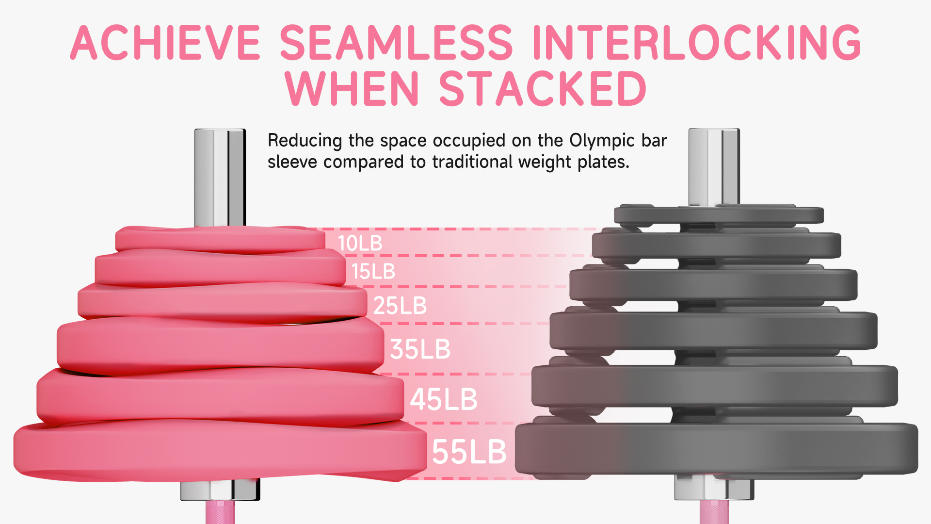 Additionally,when multiple AURASPIN plates are installed on a barbell,the interlocking contours ensure a secure fit without requiring extra space on the bar sleeve.