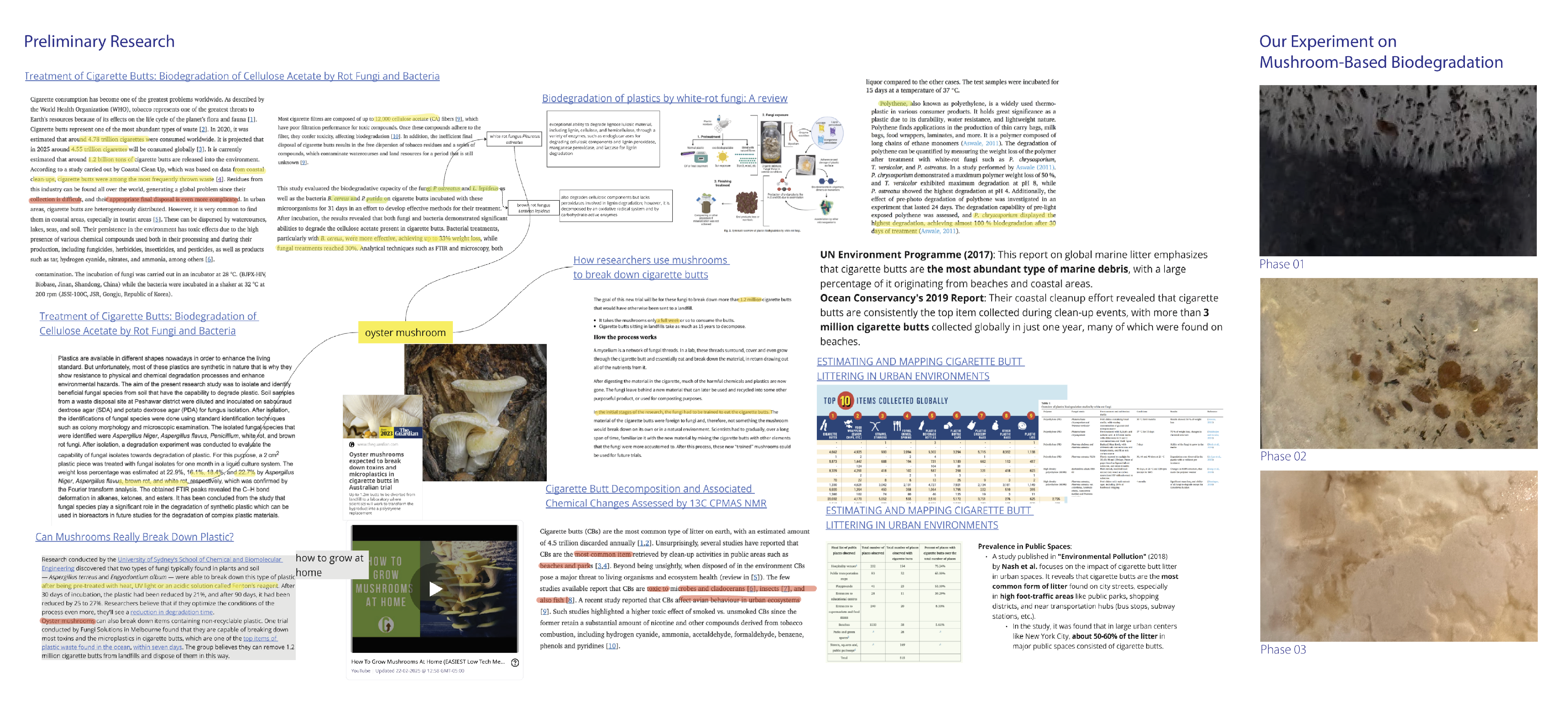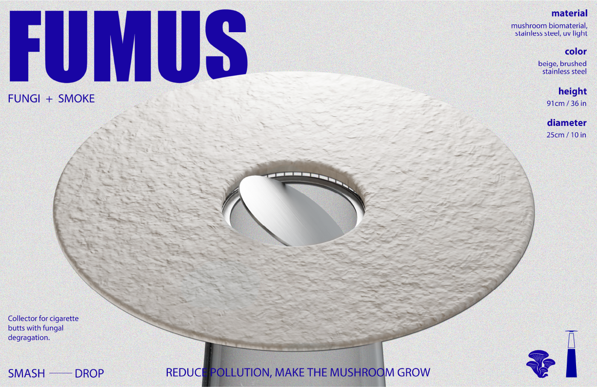 At FUMUS, we see design not as decoration, but as intervention. Research has shown that, with proper pretreatment, oyster mushrooms can break down and grow on cigarette butts. This insight inspired our mission: to create a public infrastructure that not only collects but also begins the process of degrading cigarette waste using mycelium (mushroom)-powered bioremediation.