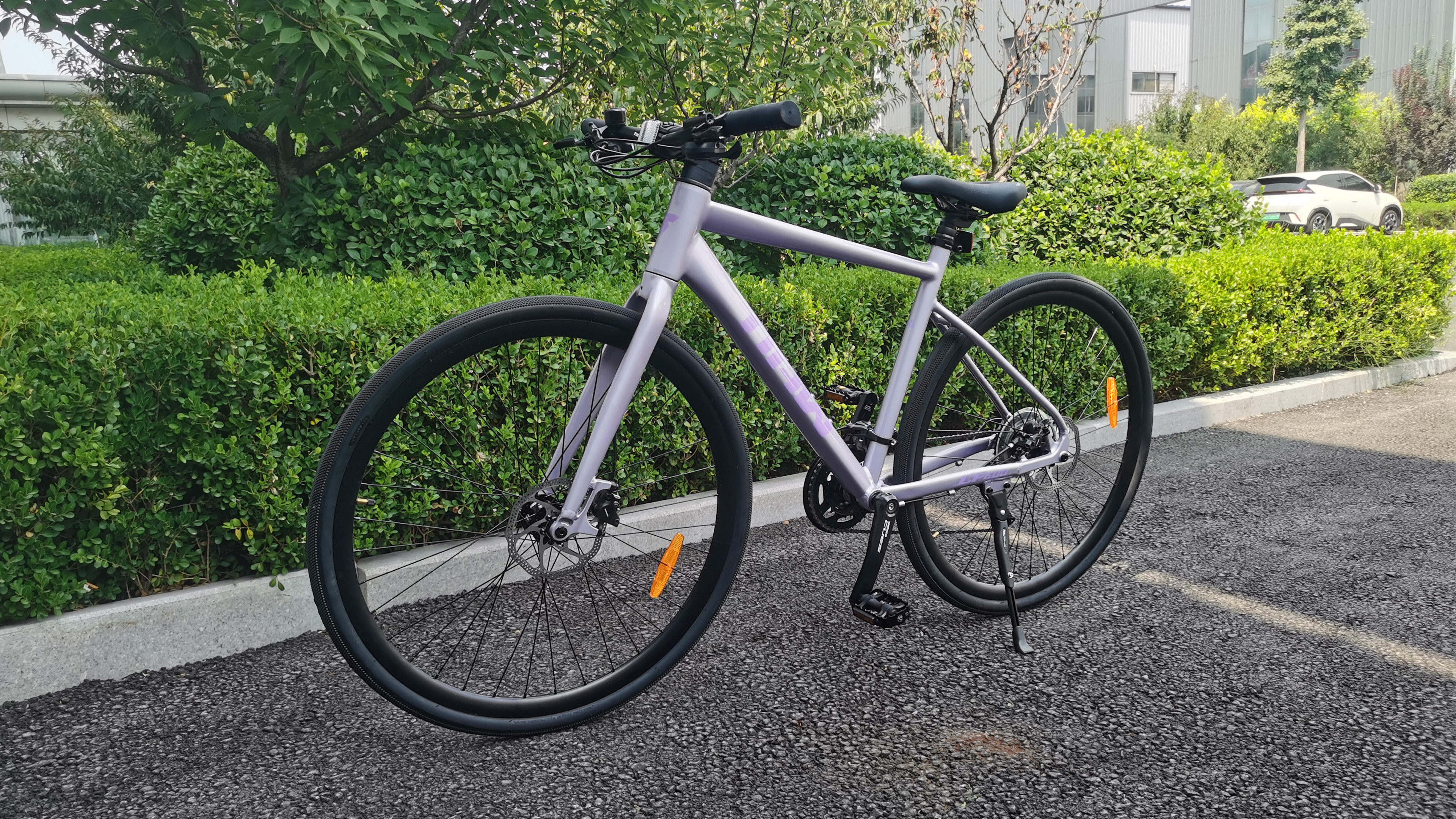 Beyond visual design, the Gazelle Racer prioritizes performance in real-world scenarios. Equipped with front and rear disc brakes, flat handlebars, and platform pedals, it offers intuitive control and braking reliability. Practical details — such as a water bottle cage mount, kickstand, and wheel reflectors — ensure full functionality across commuting and leisure use cases.
