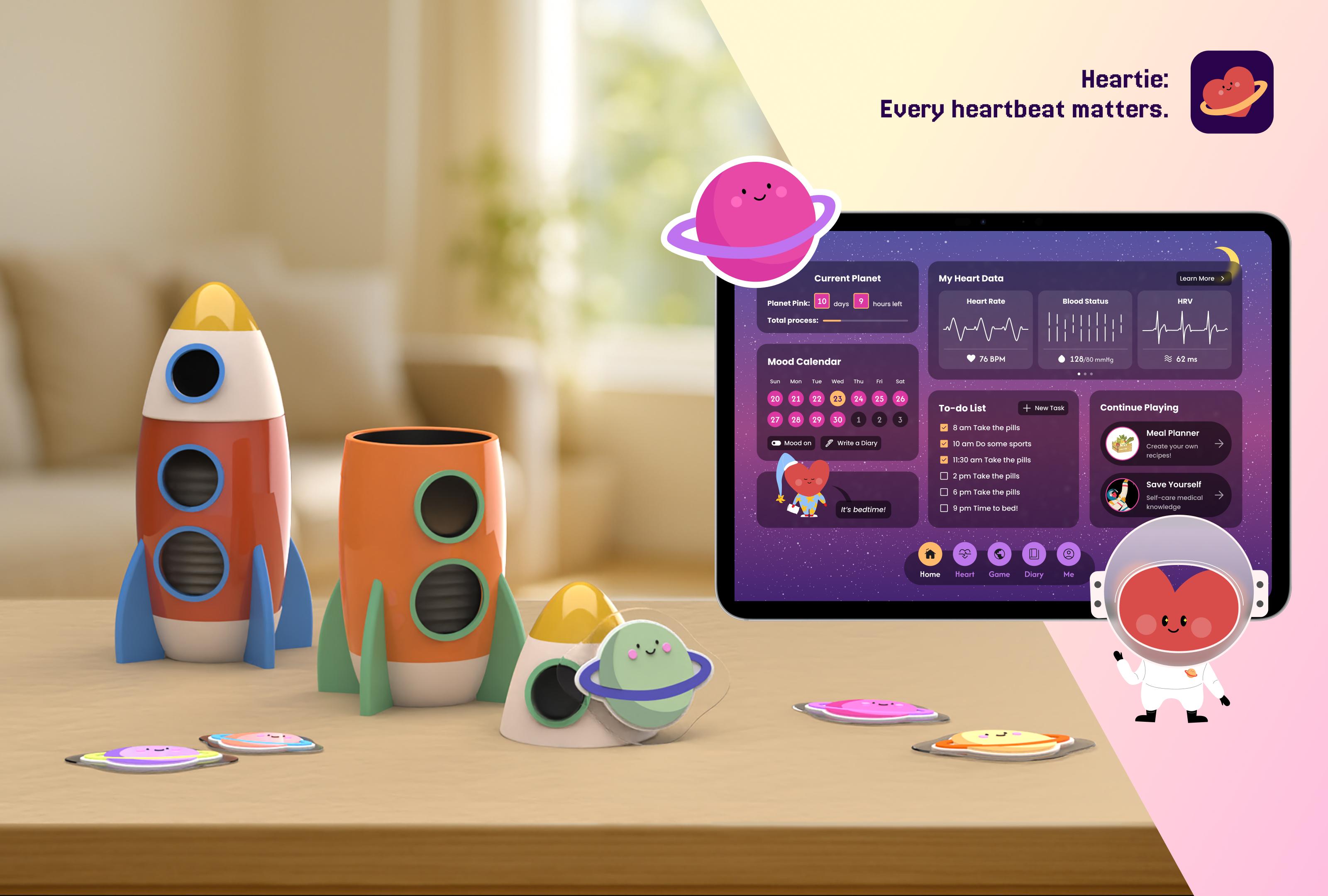 By blending storytelling, gamification, emotional support, and biometric tracking, Heartie bridges the gap between clinical monitoring and everyday care. Its goal is to reduce fear and isolation in treatment, empower families, and foster a generation of young patients who understand and care for their own health.