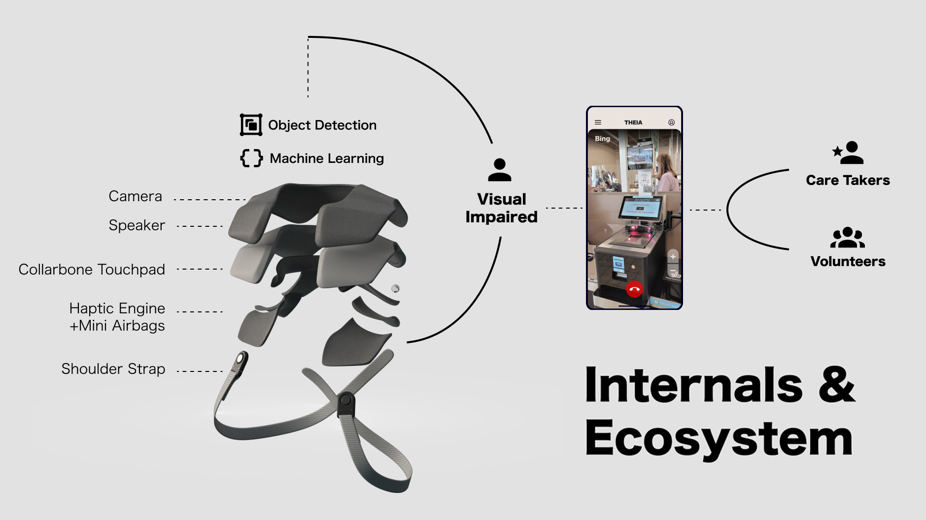 By combining intelligent object recognition, immersive feedback, adaptive learning, and human connectivity, THEIA redefines accessibility, helping visually impaired individuals navigate the world with confidence, freedom, and dignity.