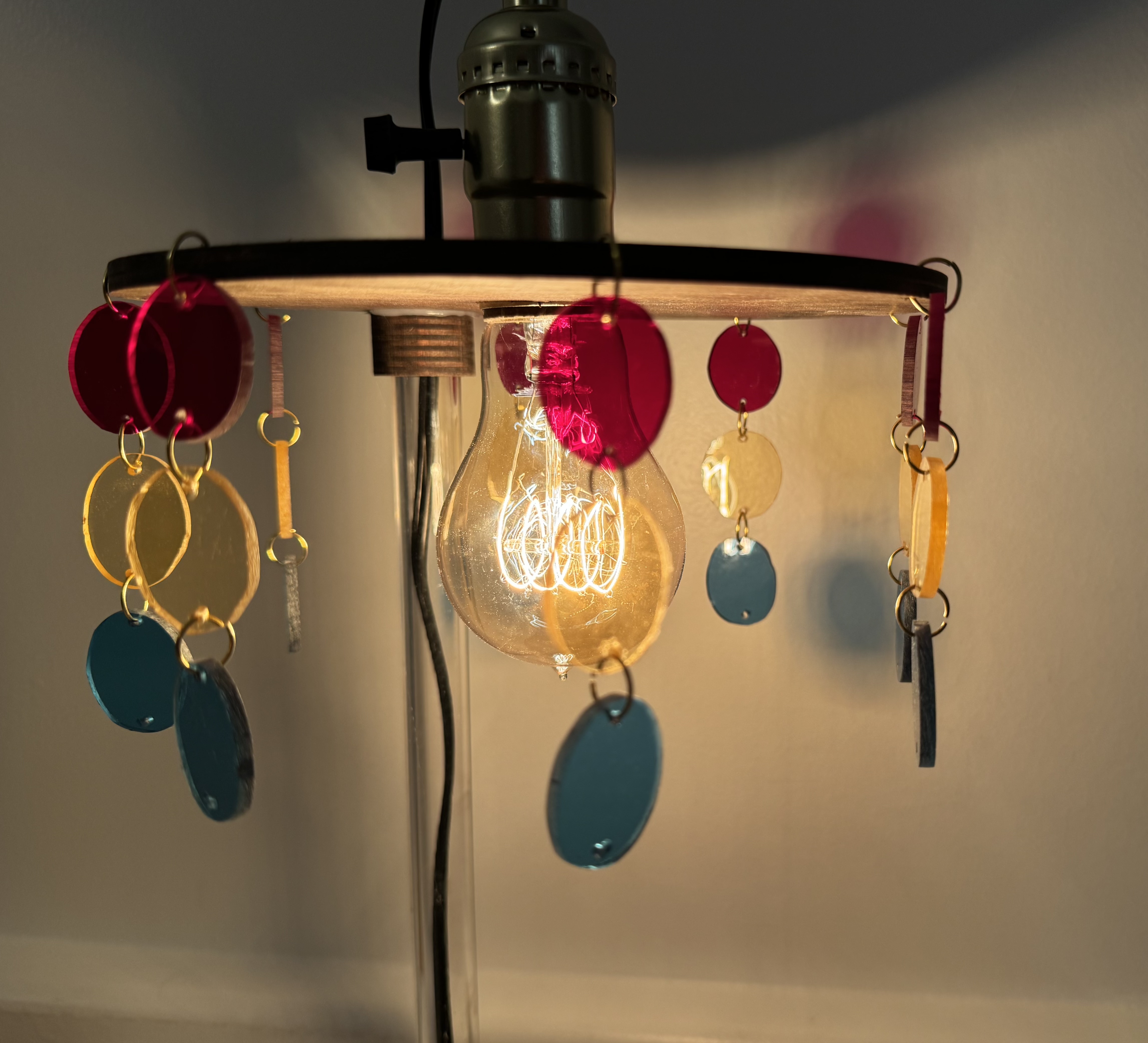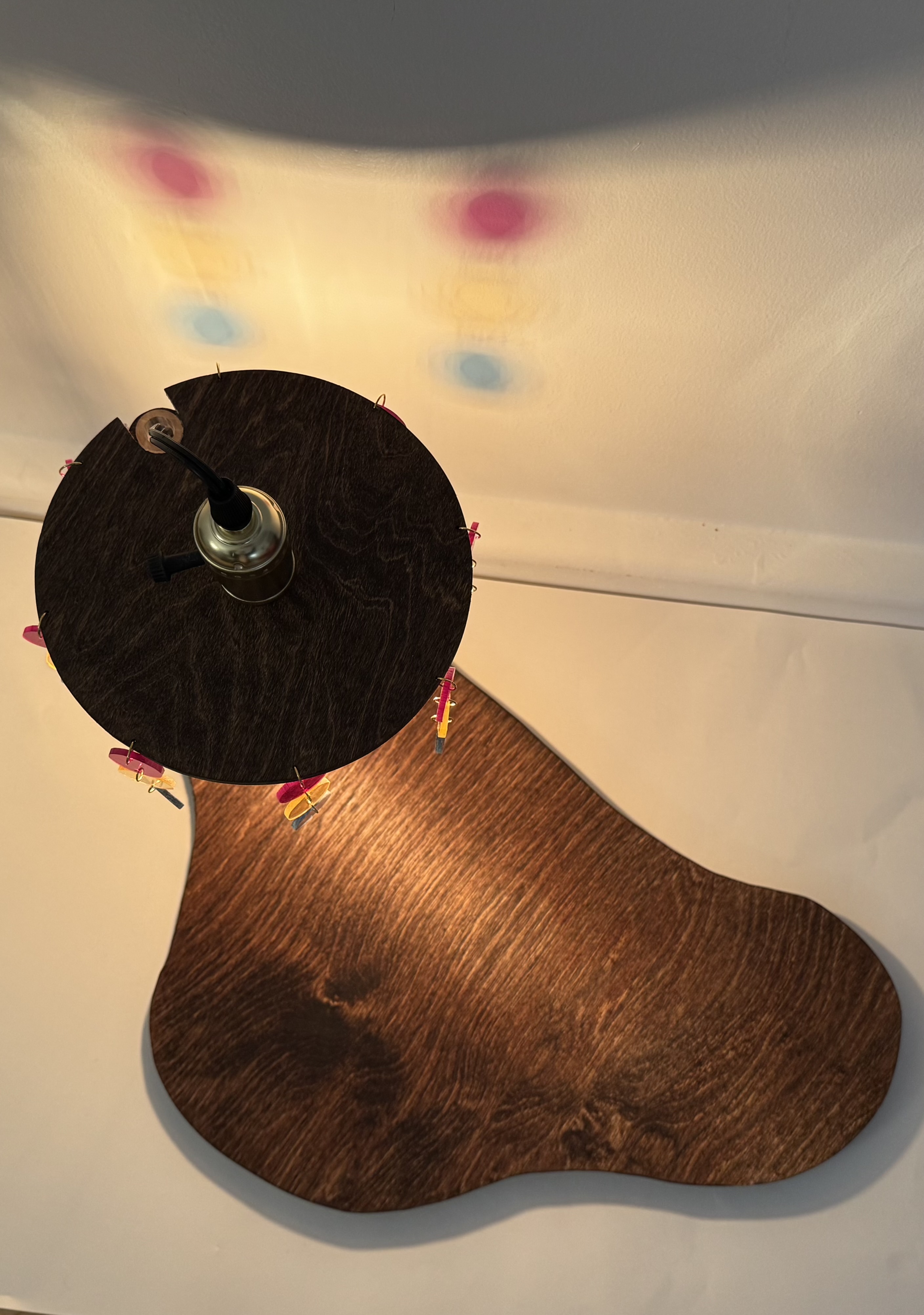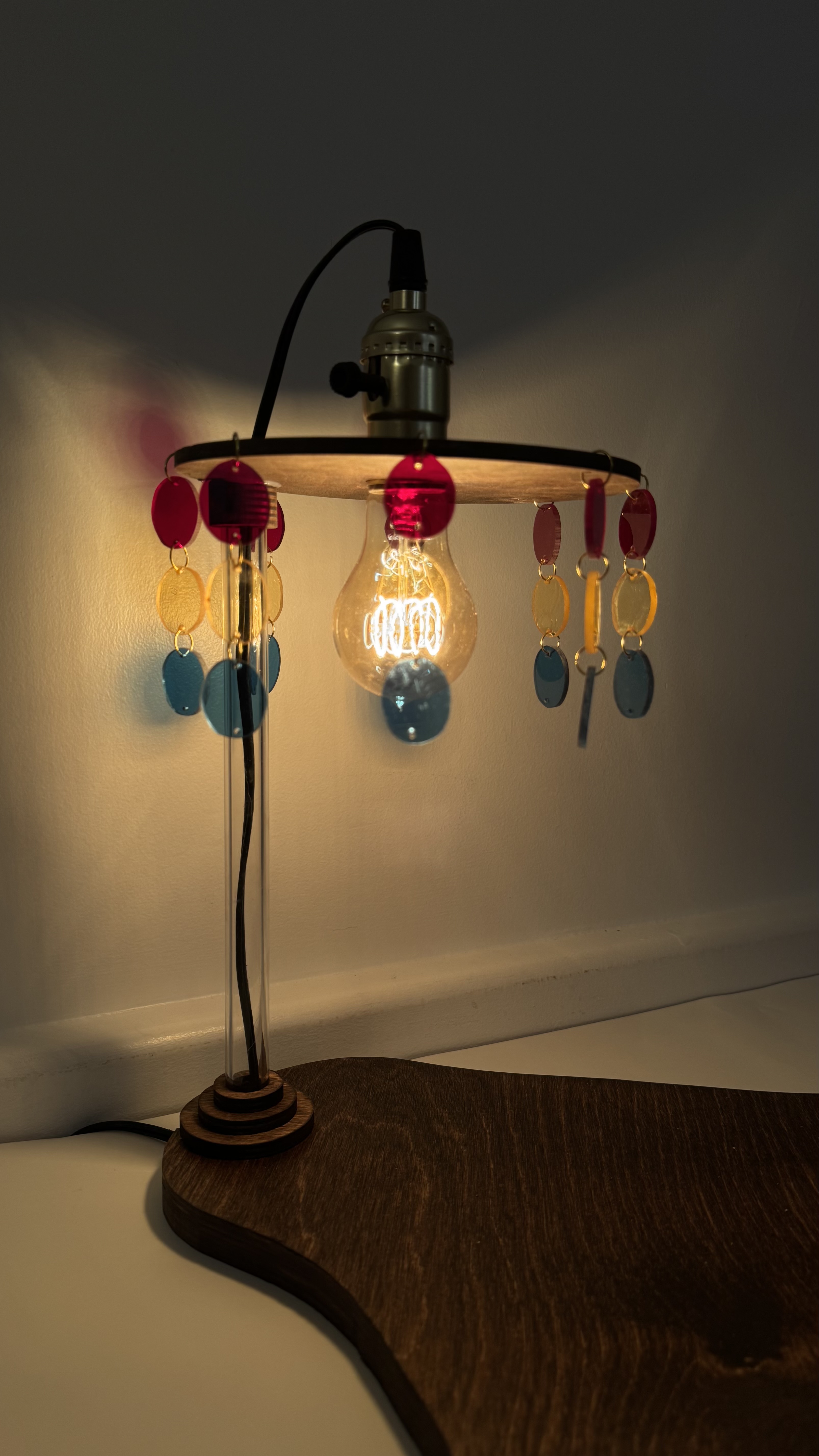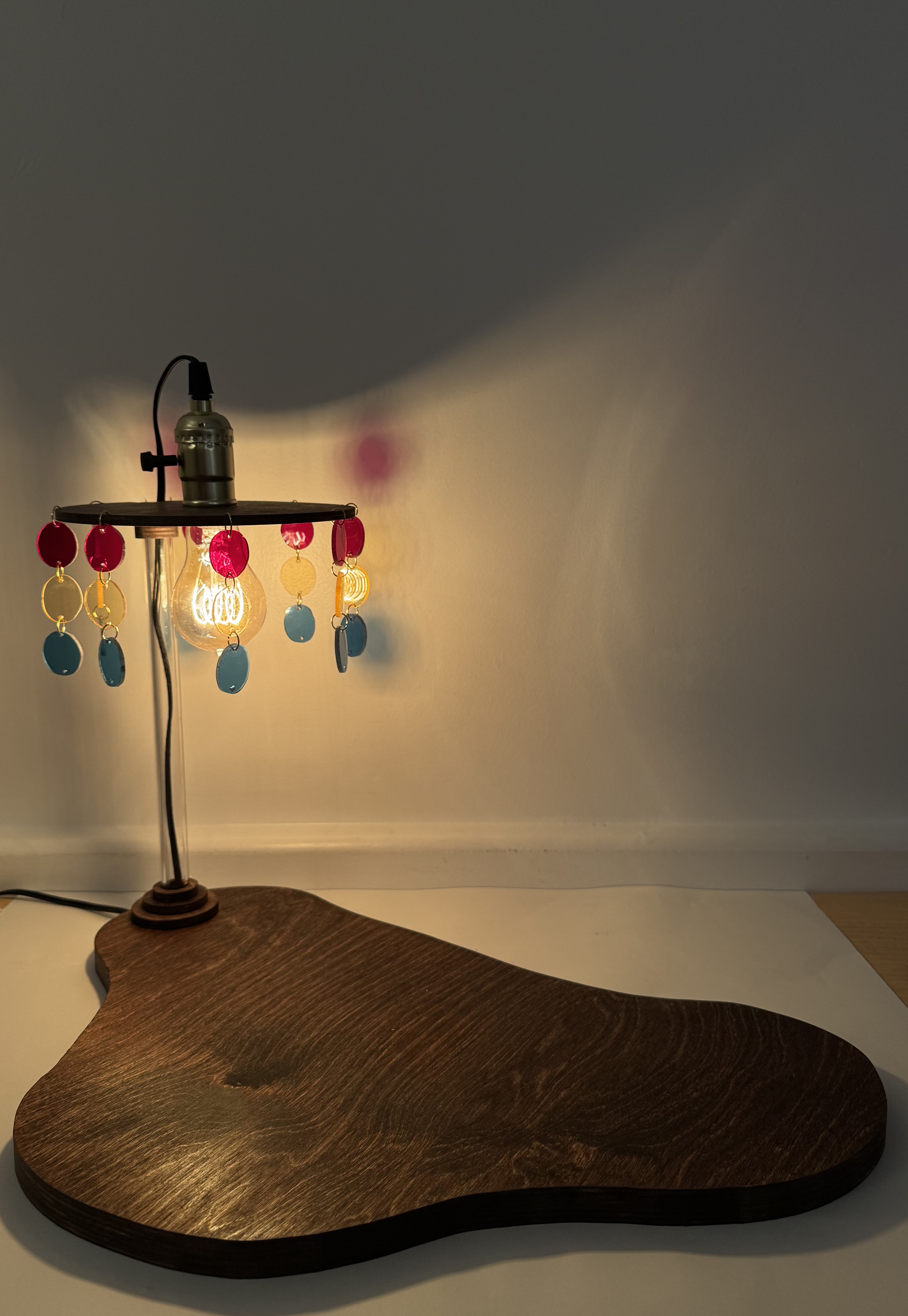I used wood as the main material to give the product a warm, sturdy foundation. To enhance the design, I incorporated acrylic cylinders and colorful acrylic sheets. These elements not only add a modern aesthetic but also interact beautifully with light, casting colorful reflections that make the drawing experience more playful and inspiring.