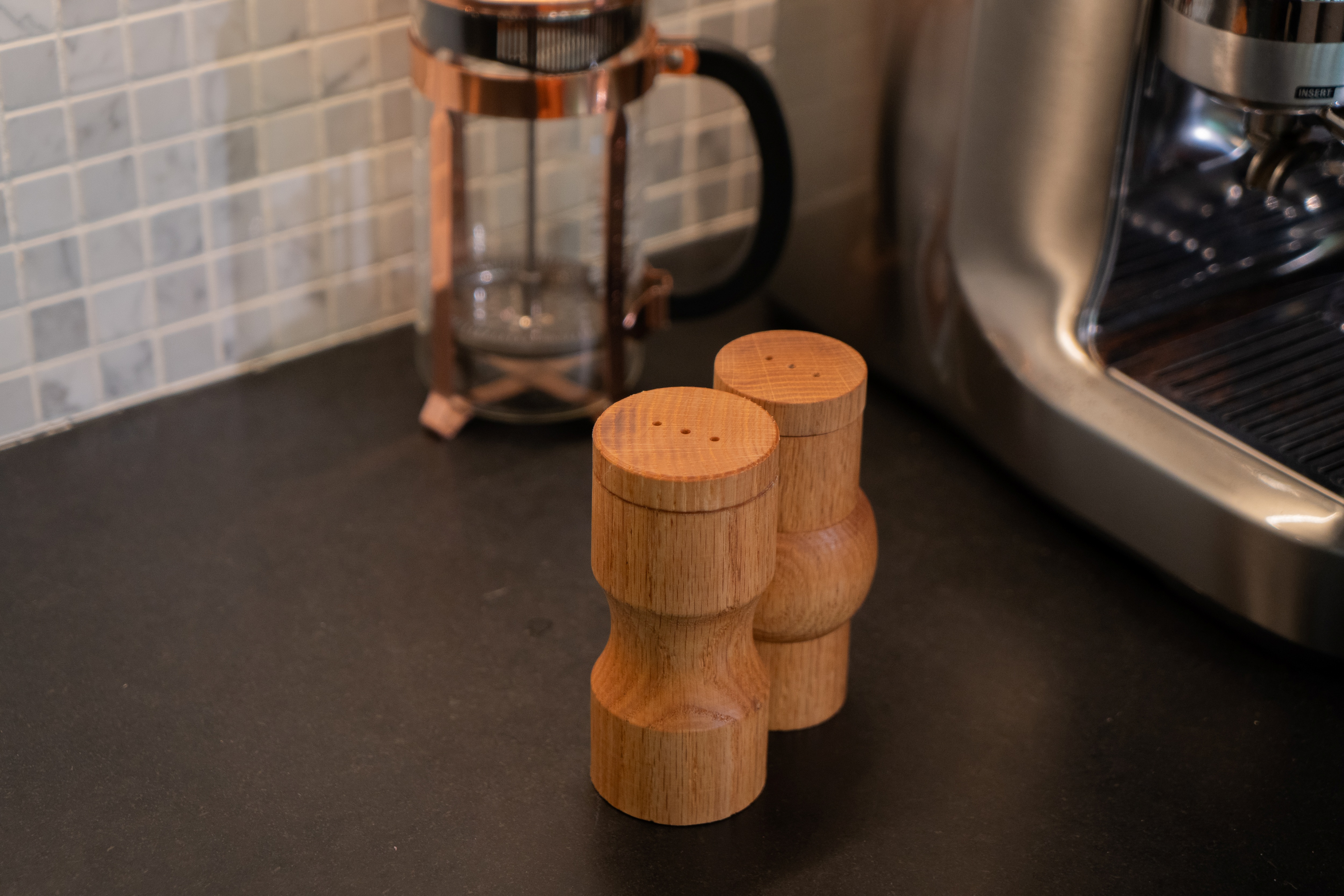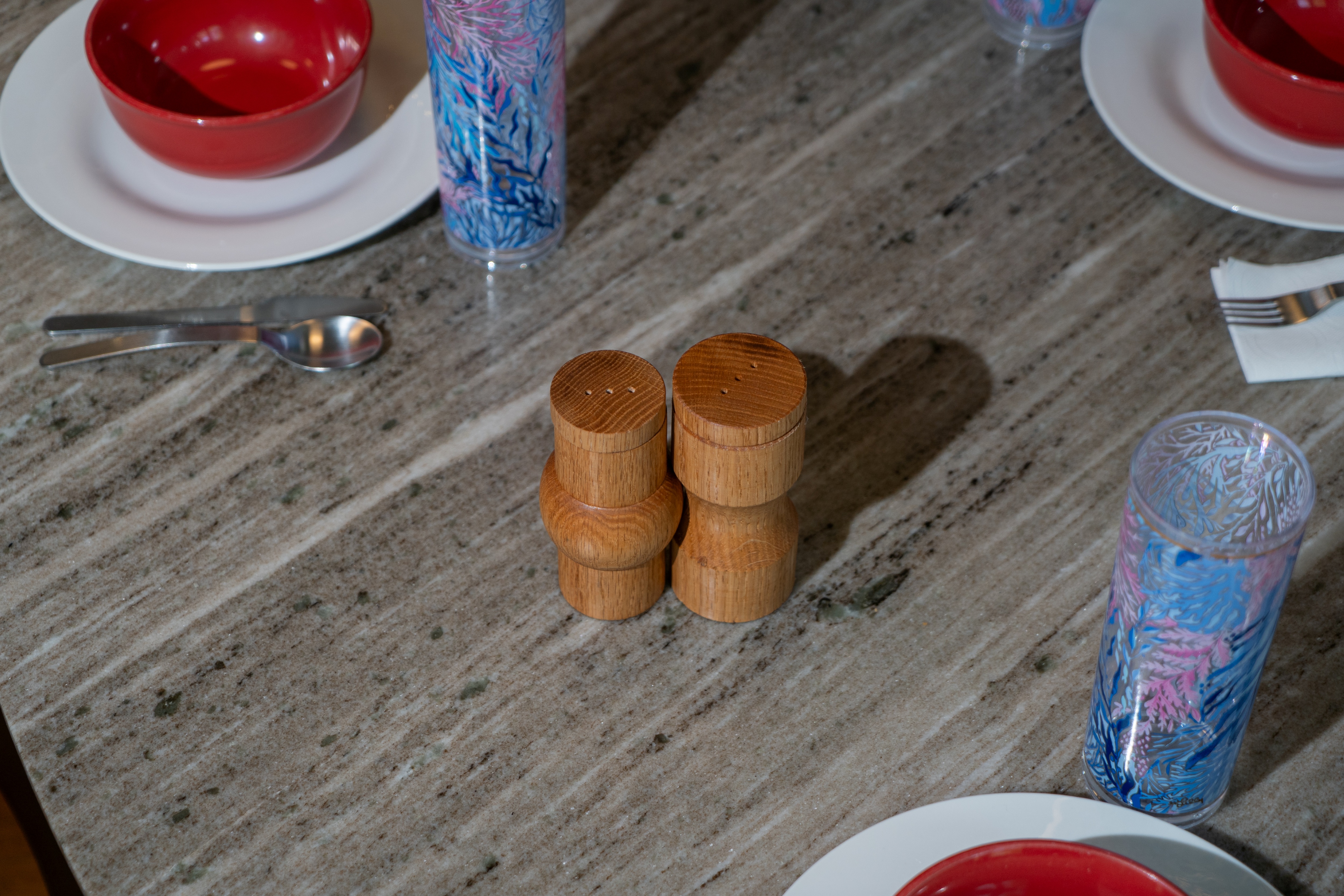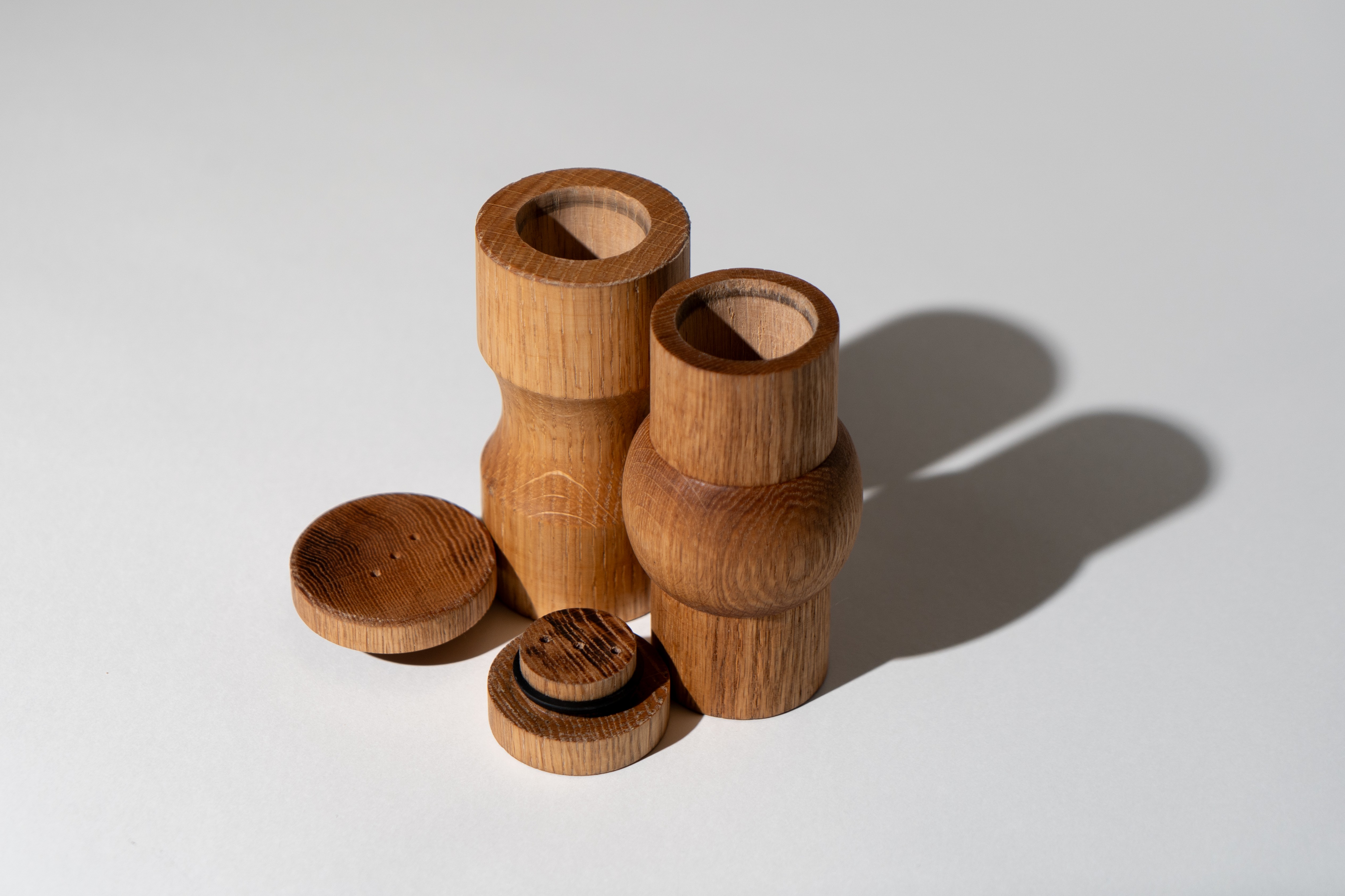 Contour Shaker is a sculptural two-piece salt and pepper set that promotes local production in the USA. Designed for efficient wood-lathe manufacturing, it has a simple nested composition balancing with expressive form, aligning with Areaware’s commitment to thoughtful, well-crafted tabletop objects.