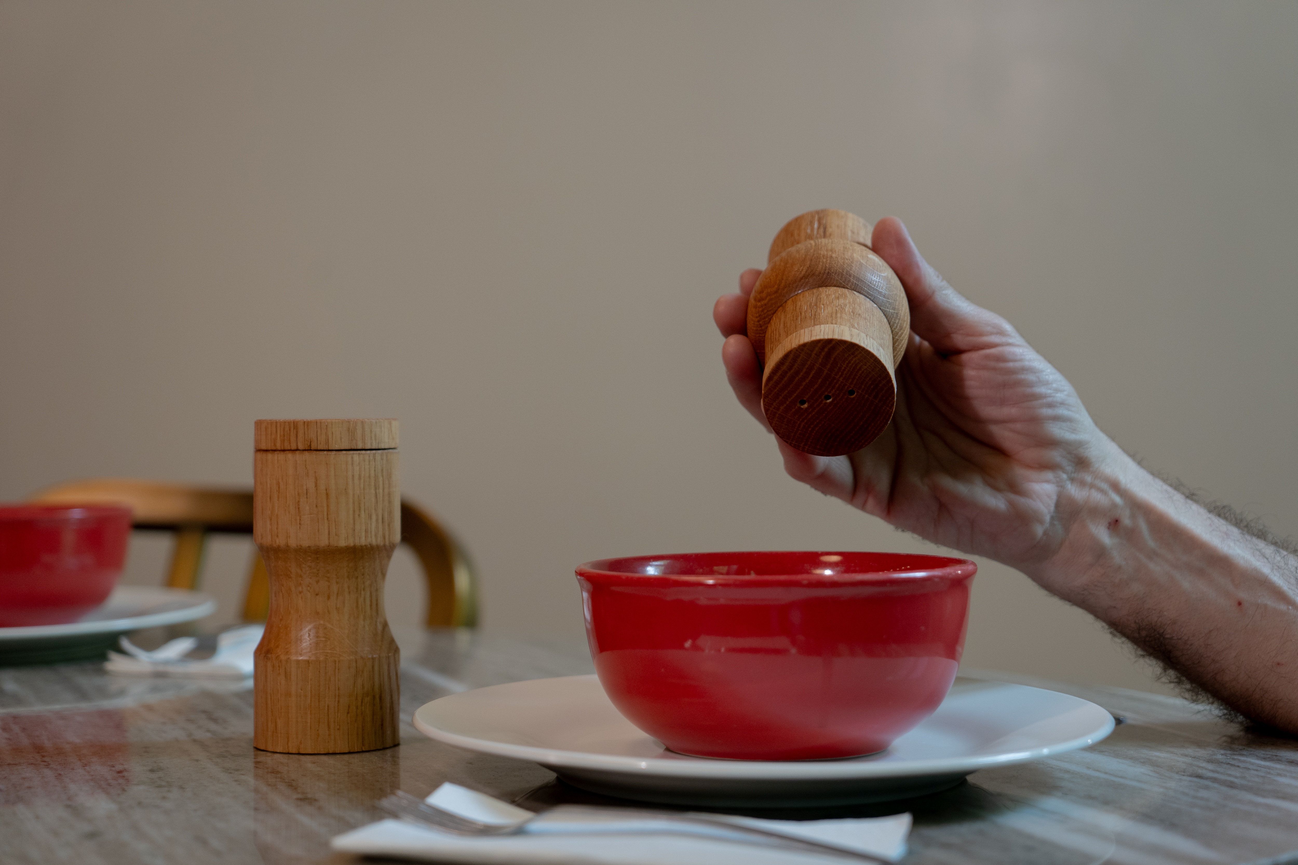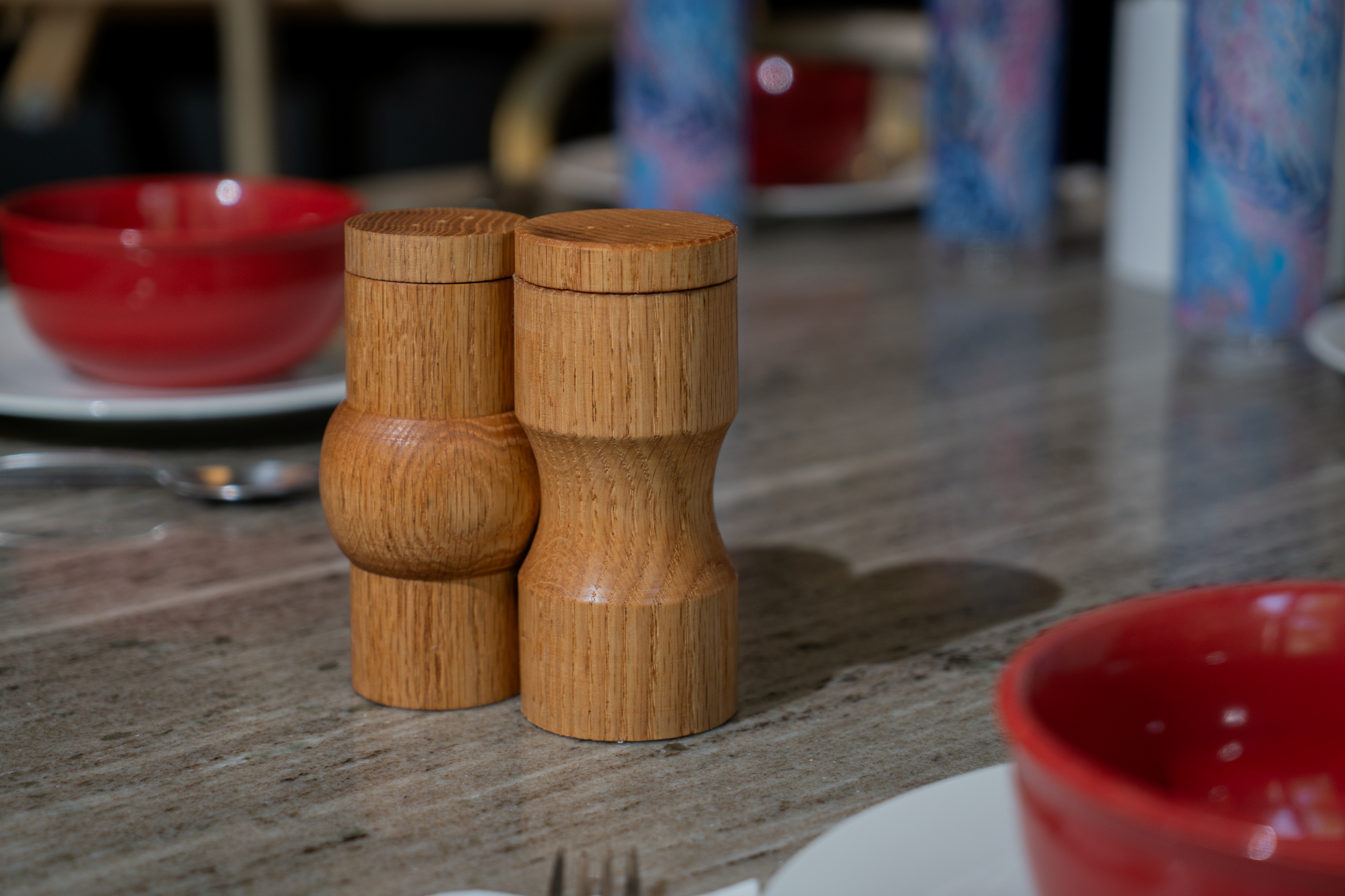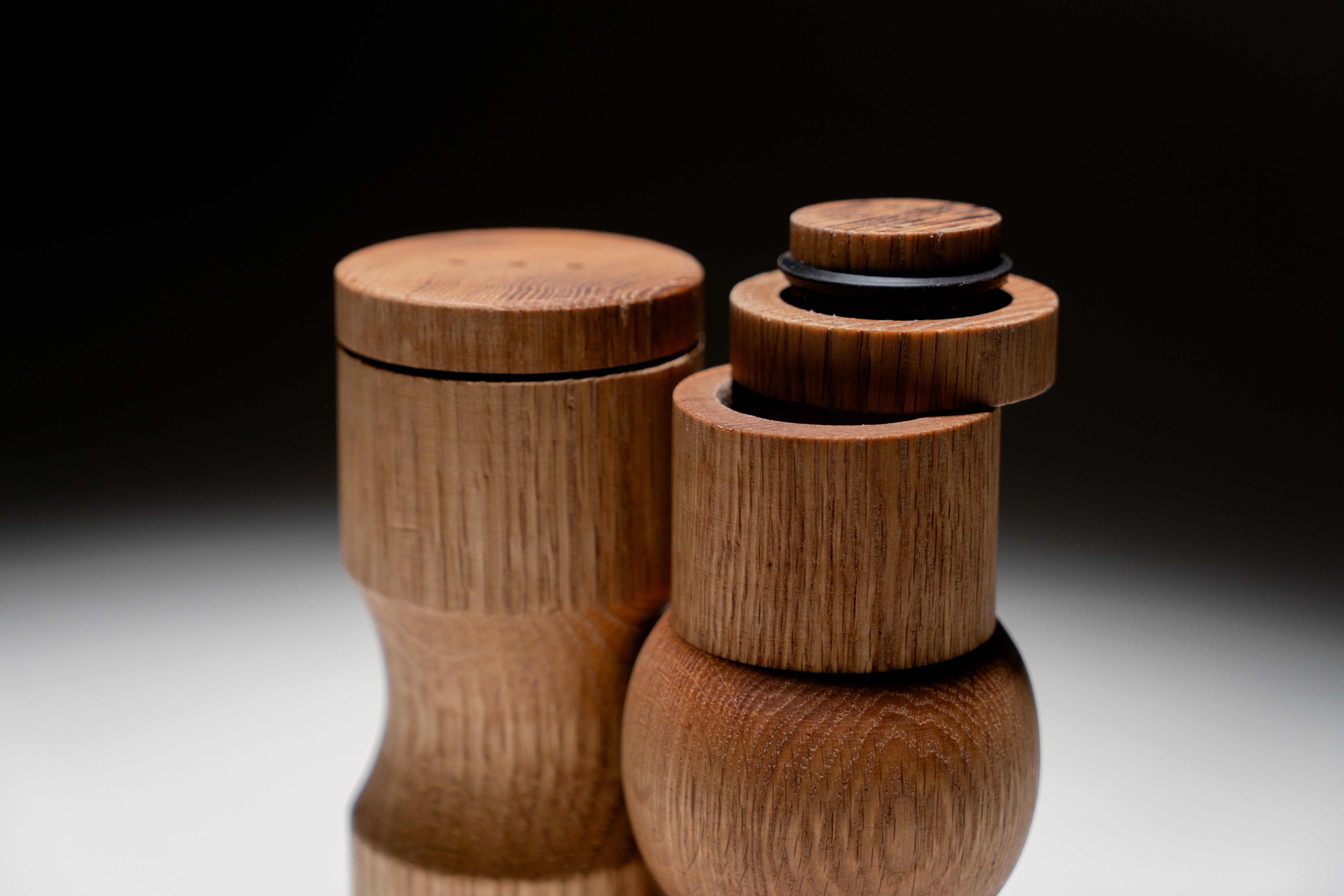 Contour Shaker is a sculptural two-piece salt and pepper set that promotes local production in the USA. Designed for efficient wood-lathe manufacturing, it has a simple nested composition balancing with expressive form, aligning with Areaware’s commitment to thoughtful, well-crafted tabletop objects.