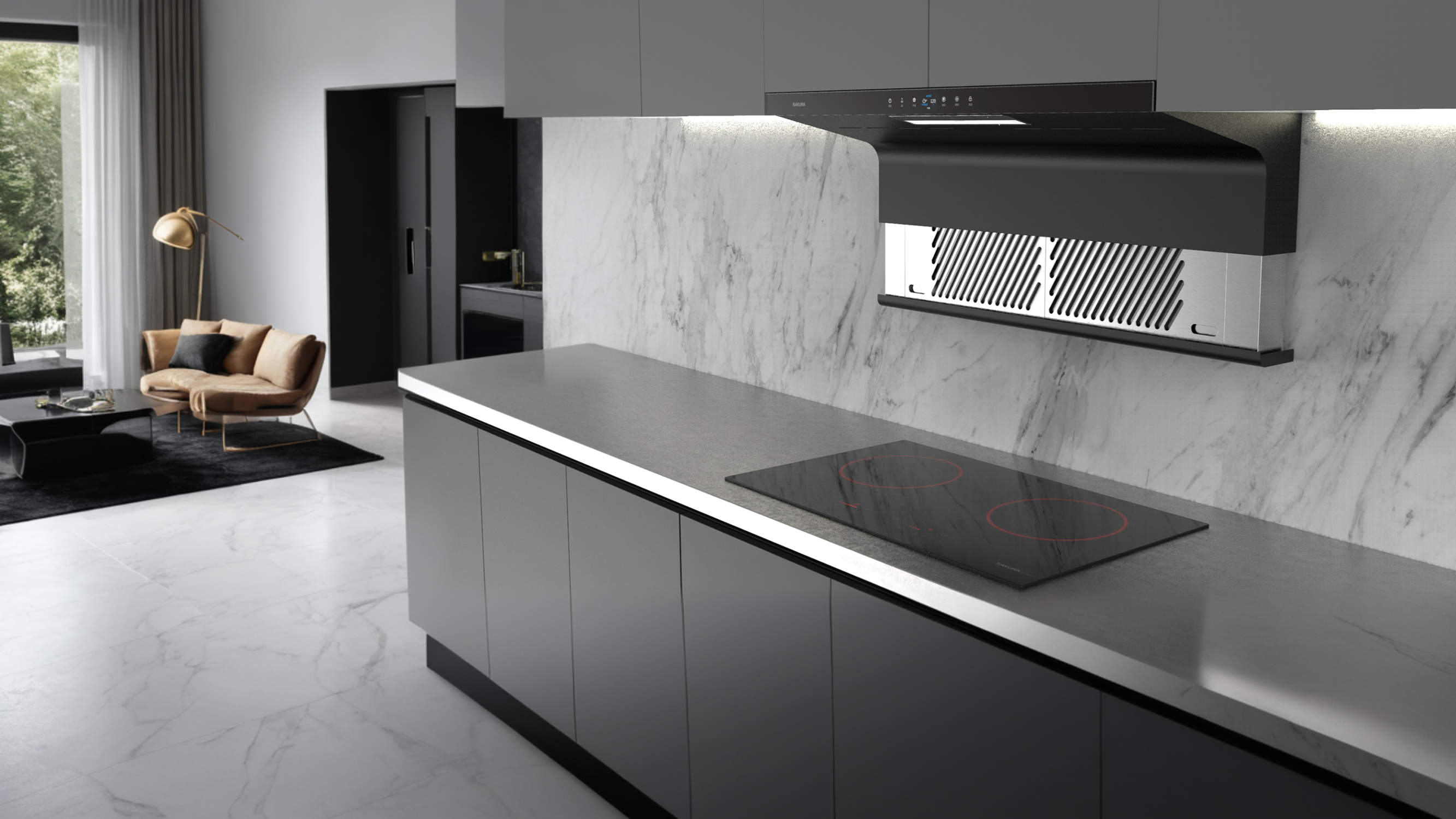 Introducing the "AI Closer-Distance Suction Built-in Range Hood," an innovative, AI-driven solution designed specifically for contemporary open kitchens. This hidden range hood seamlessly blends advanced technology with sophisticated design, ensuring both functionality and aesthetic appeal. Crafted with Design for Six Sigma (DFSS) engineering principles, it employs intelligent wind speed adjustment to optimize performance based on real-time cooking conditions. Equipped with cutting-edge AI detection modules, the hood automatically calibrates its suction power for maximum efficiency, capturing smoke and odors with precision. The unique liftable suction port and thoughtfully designed side suction structure enhance its smoke removal capabilities, creating a cleaner and more enjoyable cooking environment. Furthermore, the range hood supports interlock control with induction heating (IH) stoves, elevating the operational experience and providing an integrated kitchen solution. Experience the perfect fusion of style, technology, and performance with the AI Closer-Distance Suction Built-in Range Hood, where modern design meets exceptional functionality.