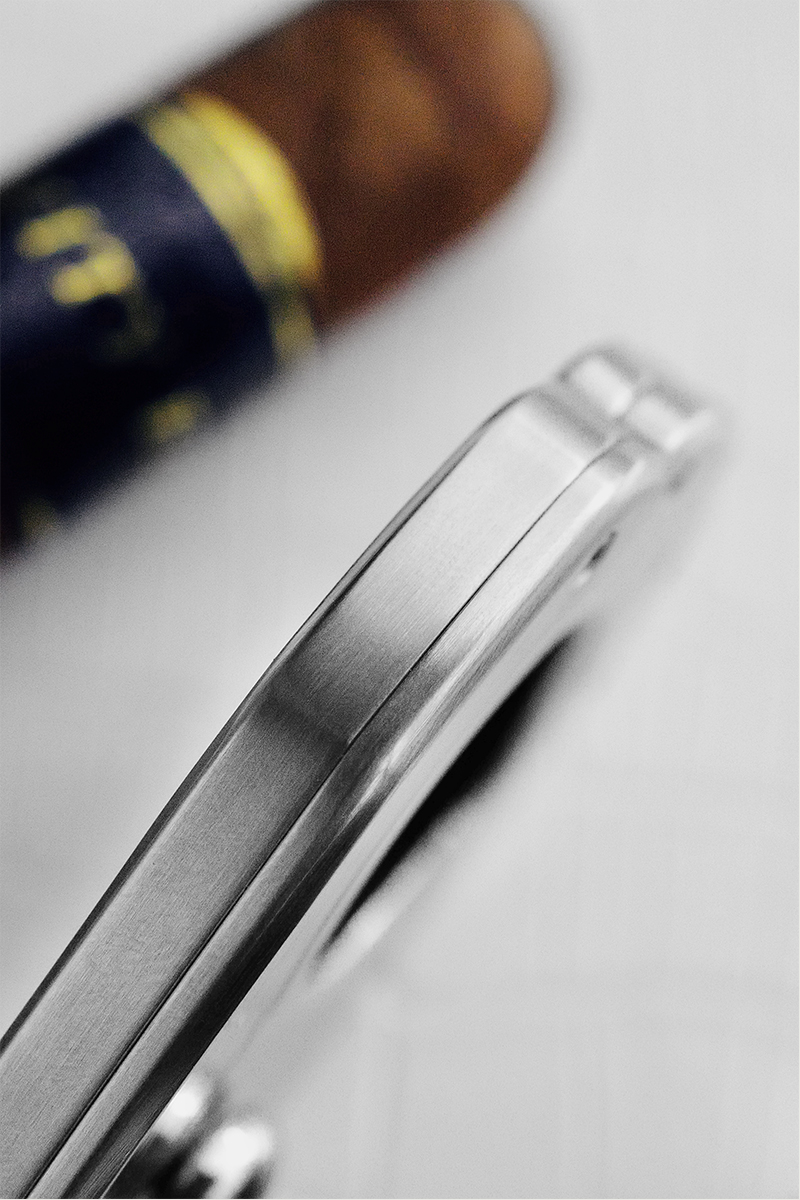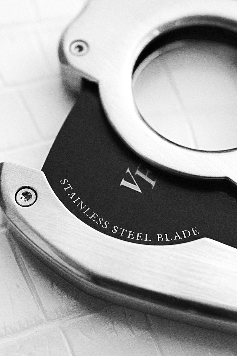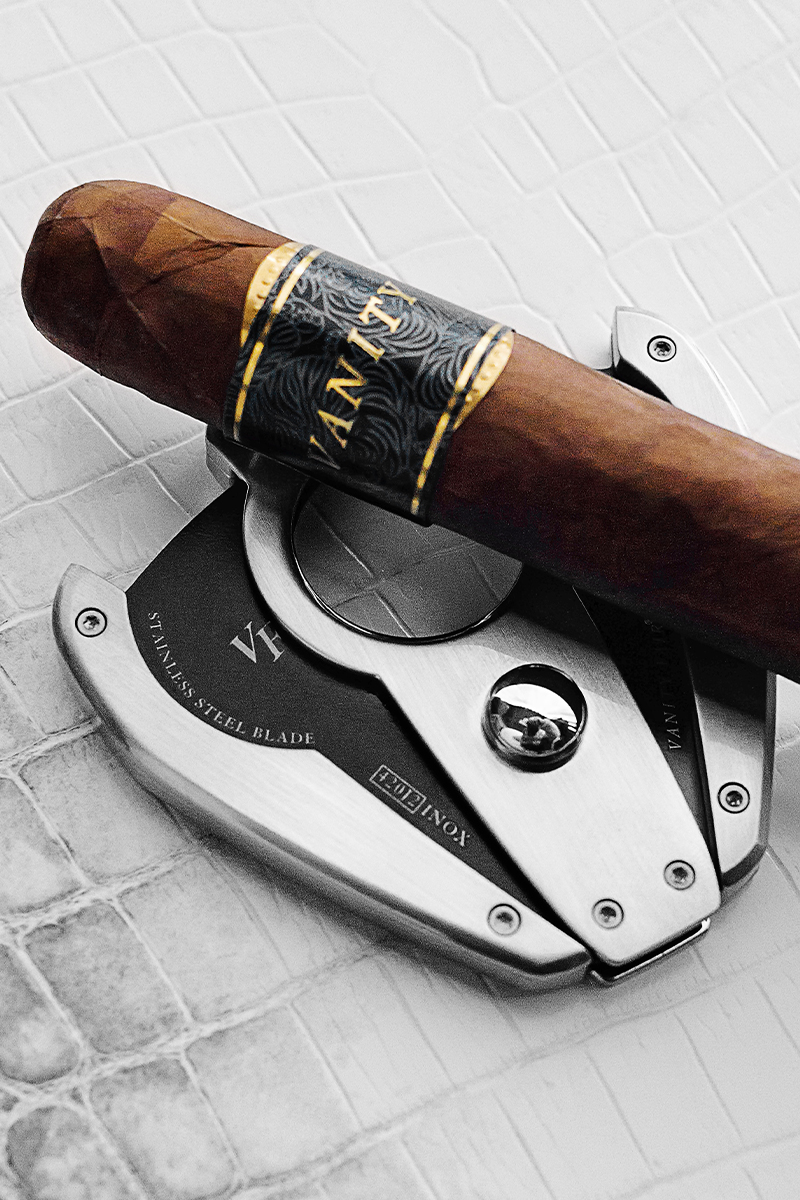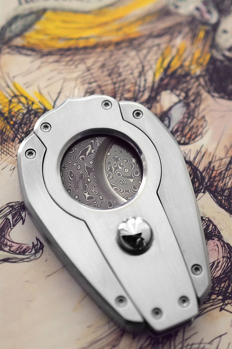 Vanity Fair reimagines the art of cigar scissors through the lens of minimalism — where form follows function, and every curve tells a story. In this pursuit of purity, excess is stripped away to reveal the essence of design: balance, harmony, and intention. The result is VF·SHARP — a masterpiece not only of engineering but of emotion. Fluid, harmoniously balanced lines shape a blade of timeless elegance, crafted from RWL34 powdered Damascus steel, a material revered for its edge retention, resilience, and visual complexity. Each blade is born from a fusion of tradition and innovation, its surface marked by quenching patterns that resemble flowing water or the gentle rise and fall of breath — alive, natural, and deeply human. These patterns are more than aesthetic; they are the fingerprints of the forging process, telling a silent story of heat, pressure, and precision. At its core lies a dual-edge mechanism engineered for perfection: a single, smooth downward glide deploys the blades in perfect synchronicity, like a choreographed dance between two partners. There is no hesitation, no resistance — only clarity of motion and purpose. Closing the scissors is just as effortless, requiring only the gentlest pressure from both thumbs, a tactile gesture that feels intuitive, almost instinctive. Every motion feels refined, every detail deliberate. From the weight in the hand to the whisper of metal against metal, VF·SHARP transforms a routine act into a ritual — one of refinement, focus, and appreciation. This is more than a tool; it’s a meeting of mechanics and muse, a symphony of precision and passion. In the hands of the connoisseur, VF·SHARP becomes an extension of intent — where cold steel reveals its most sensual form. It is not merely used; it is experienced. A celebration of craftsmanship, control, and quiet confidence — in every cut, a moment of grace.