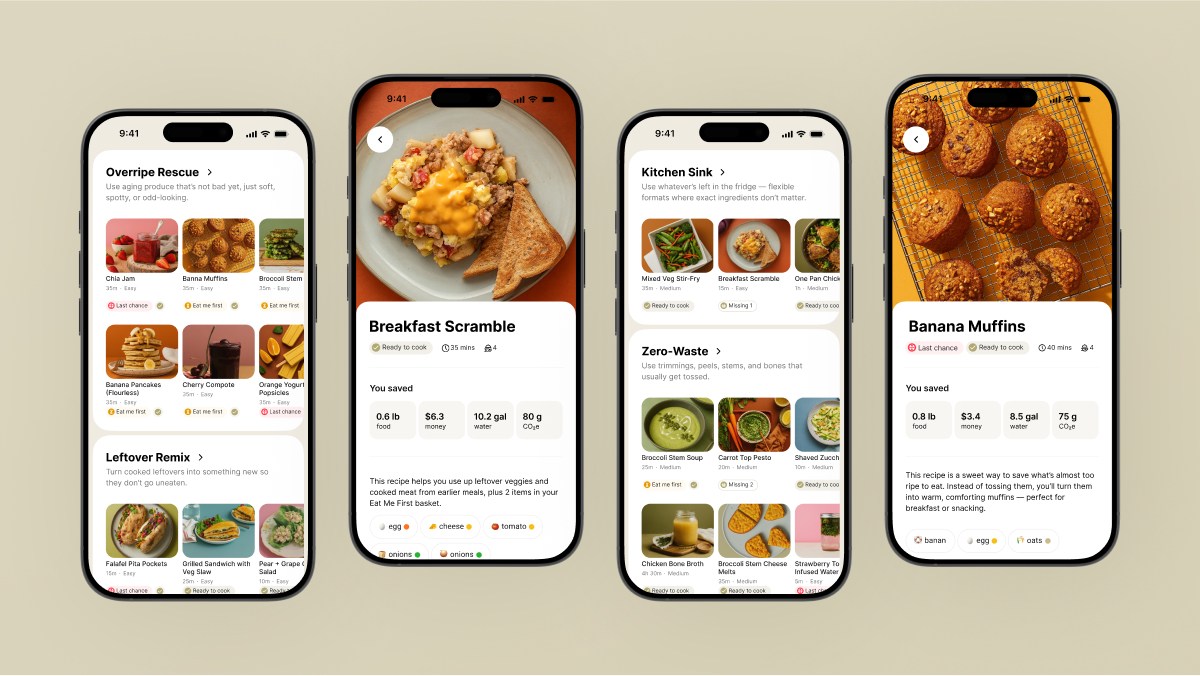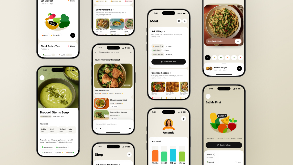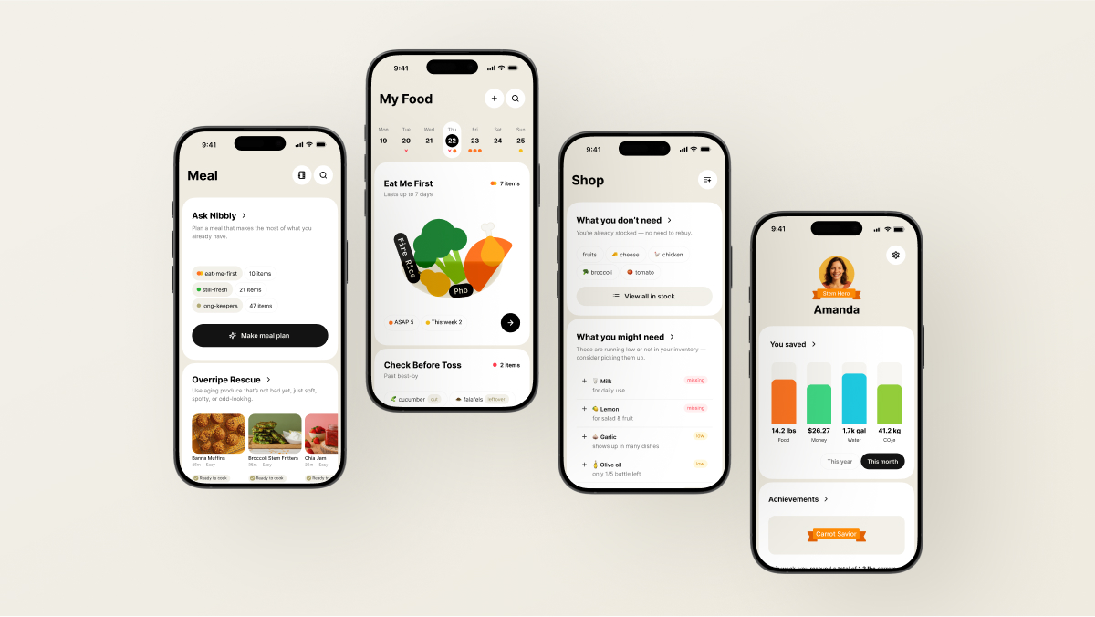 Food waste is a global problem—and it’s hitting hard. We don’t throw away food deliberately; we simply forget what we bought, overcook, or miss expiration dates. Nibbly is a sustainable, smart, and easy-to-use app that reduces household food waste by helping users track food at home, plan creative meals, and shop more thoughtfully. By scanning groceries or pantry items, Nibbly automatically organizes food into perishability-based categories—Eat Me First, Still Fresh, Long Keepers, and Check Before Toss—so nothing gets overlooked. An AI-driven recipe engine highlights soon-to-expire ingredients and suggests zero-waste menus or creative ideas like Overripe Rescue and Freezer Dump. Smart shopping lists focus only on what’s needed, avoiding unnecessary purchases. In the Impact module, users see clear metrics for money saved, waste prevented, and environmental benefits.