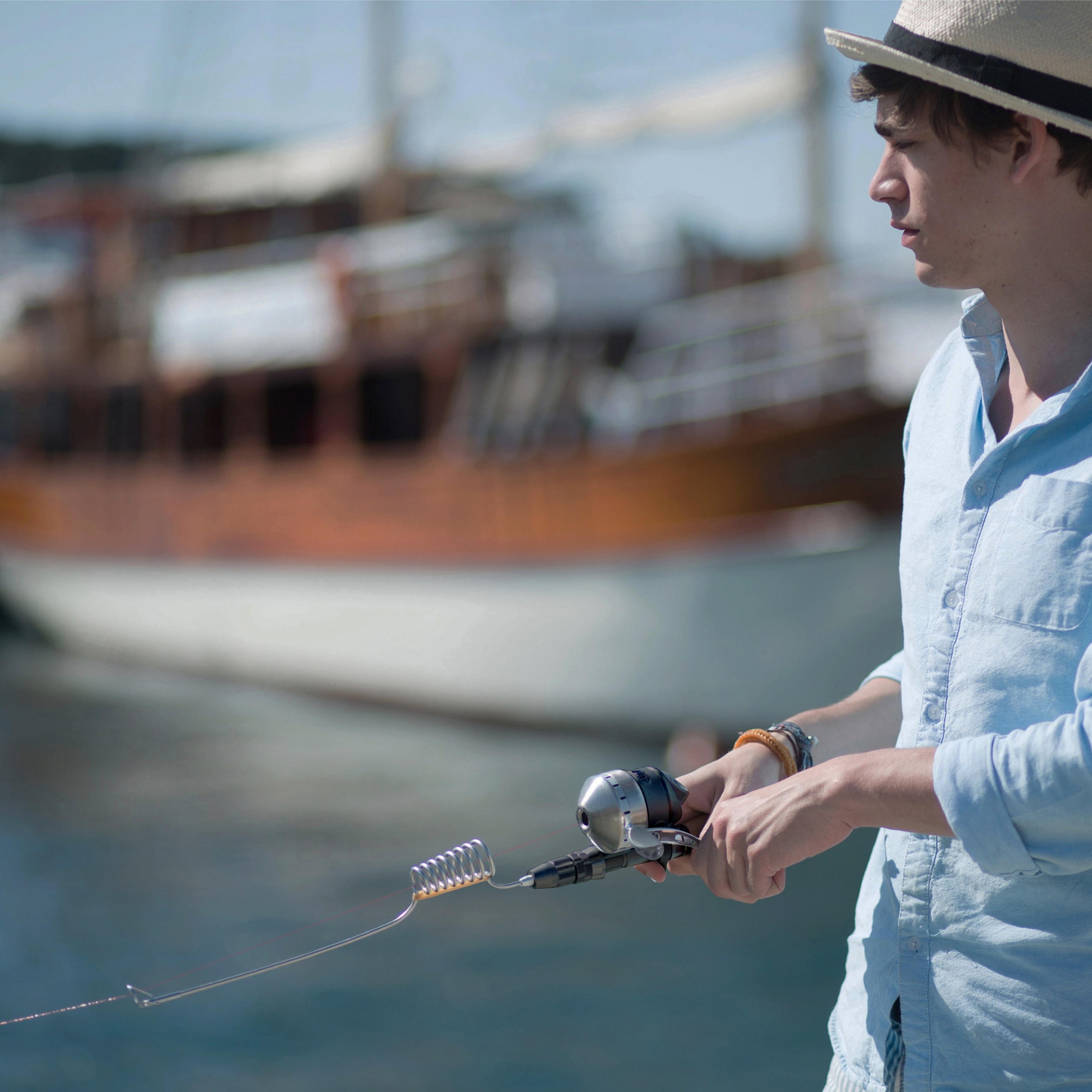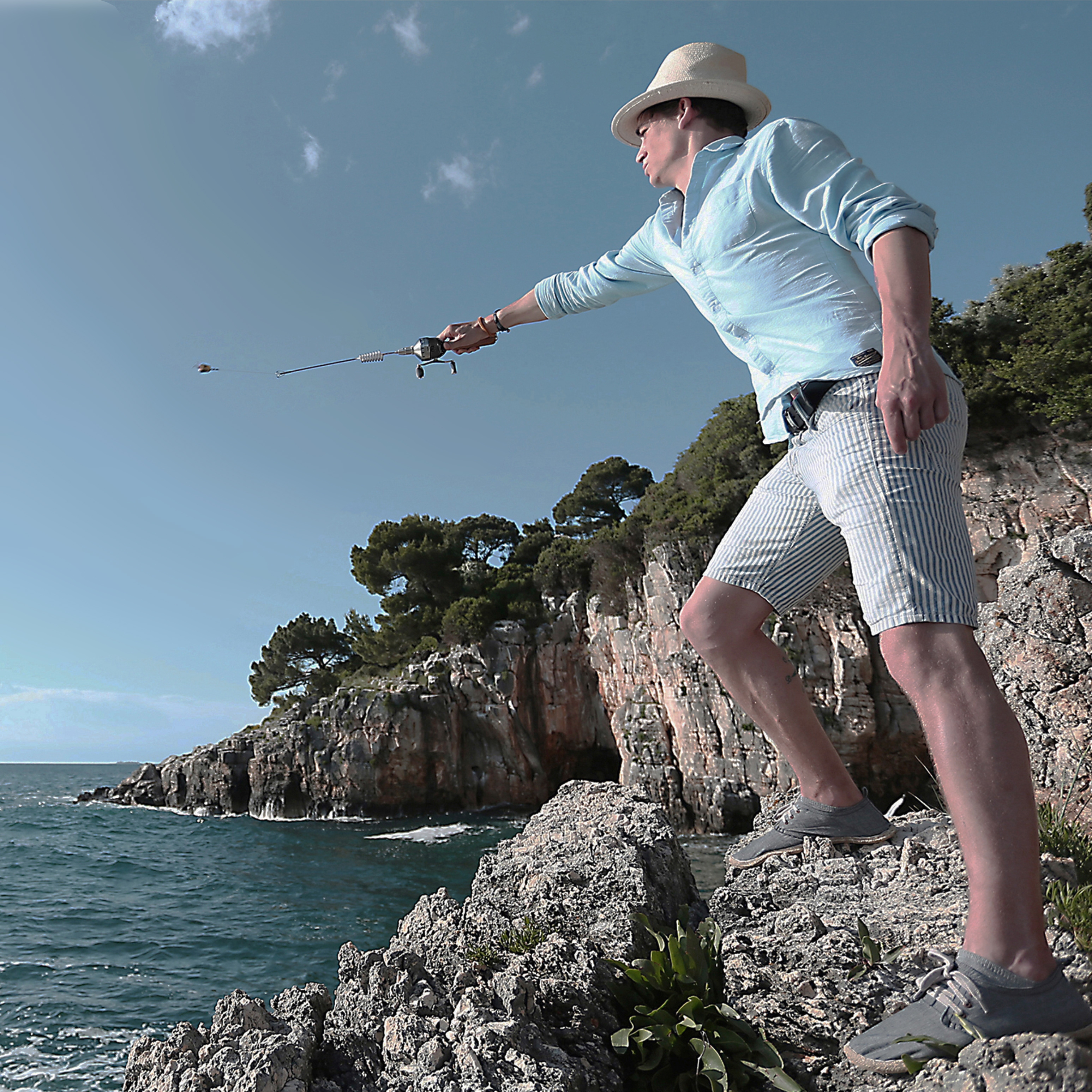 I have broken a lot of fishing rods in my life, so I bought as few as possible. I also hated carrying them. Wanted something very simple and universal that I could use right away or put in my pocket if I had to go. A compact fishing rod has to meet the same challenges as any multi-tool or as a Swiss army knife: to be multifunctional, small, and durable. The goal was to design a system that has several ways of usage with the smallest possible size and minimum weight for the sake of durability.