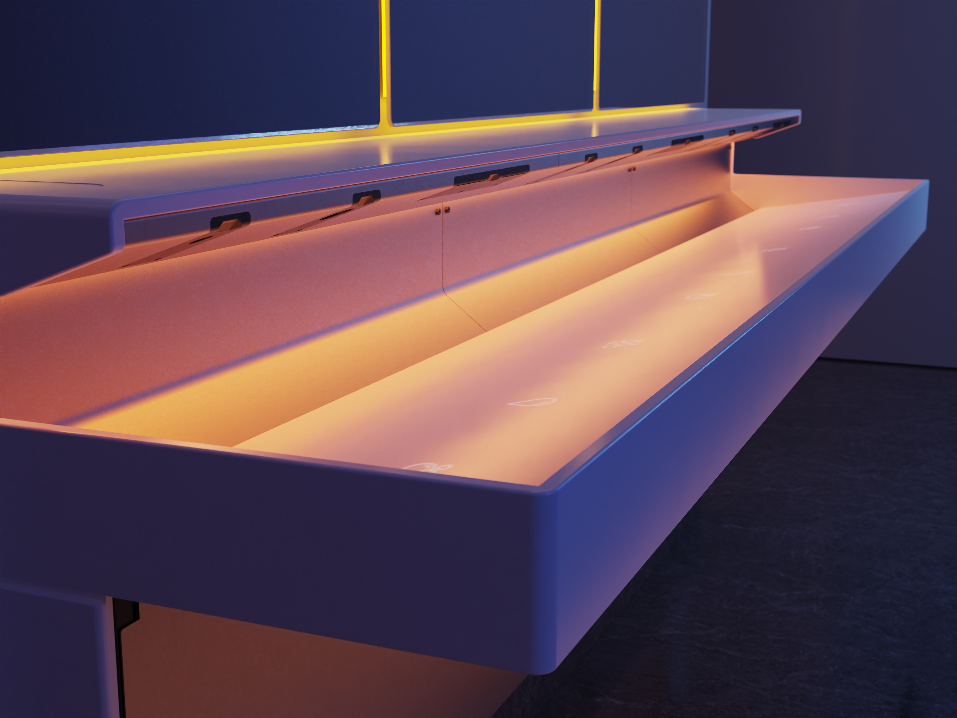 Lumashelf is The Splash Lab’s solution to the challenges of high-traffic restrooms. Engineered for intelligent simplicity, it minimizes visual clutter by integrating soap, water, and air into a single, seamless shelf. Its modular design, available in 30” increments, scales effortlessly for 1–3 users. Illuminated icons guide intuitive hand placement, while a top-fill soap system with smart alerts streamlines maintenance. Each unit ships fully assembled with all plumbing and electrical components pre-tested, ensuring a fast and seamless installation.