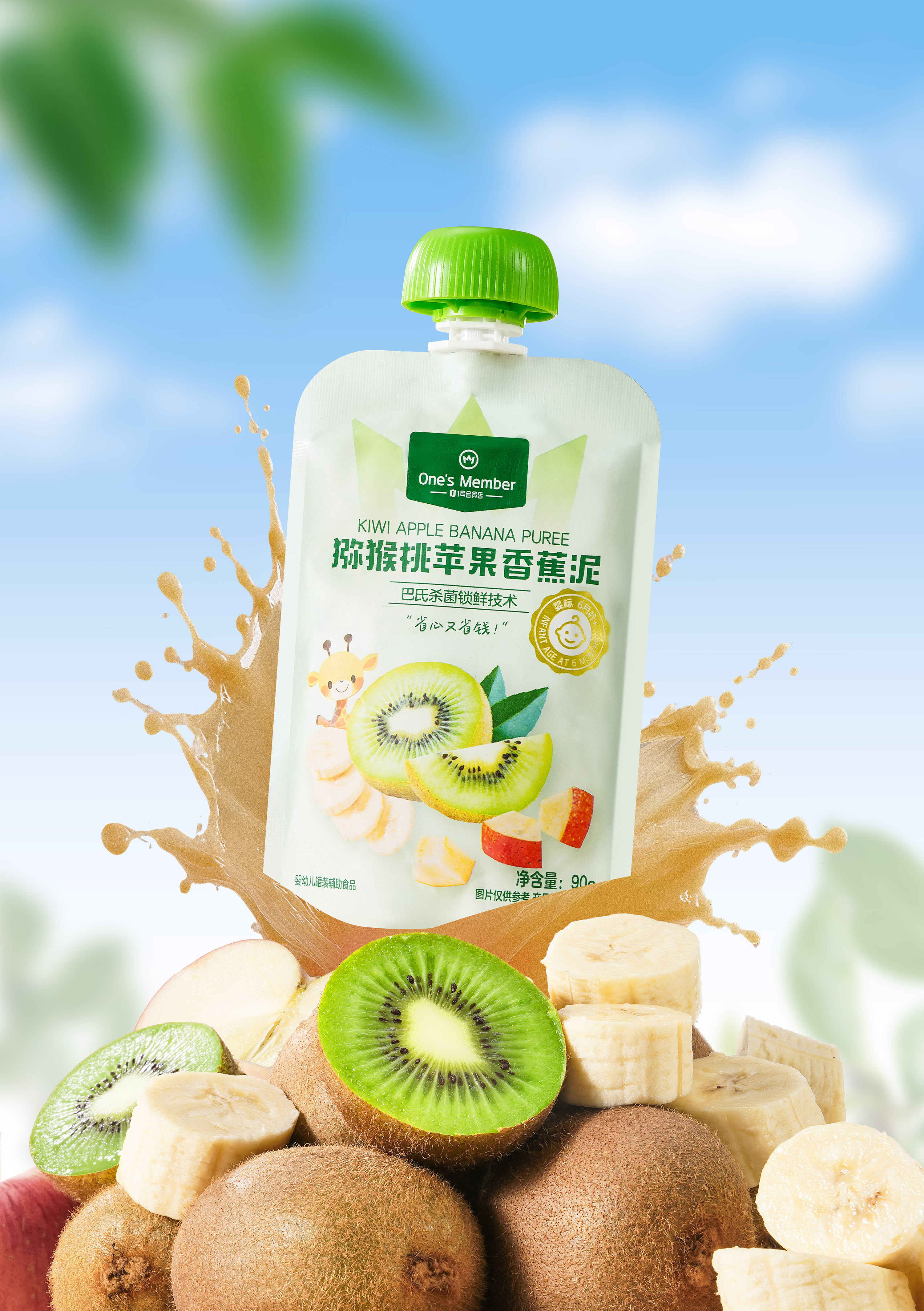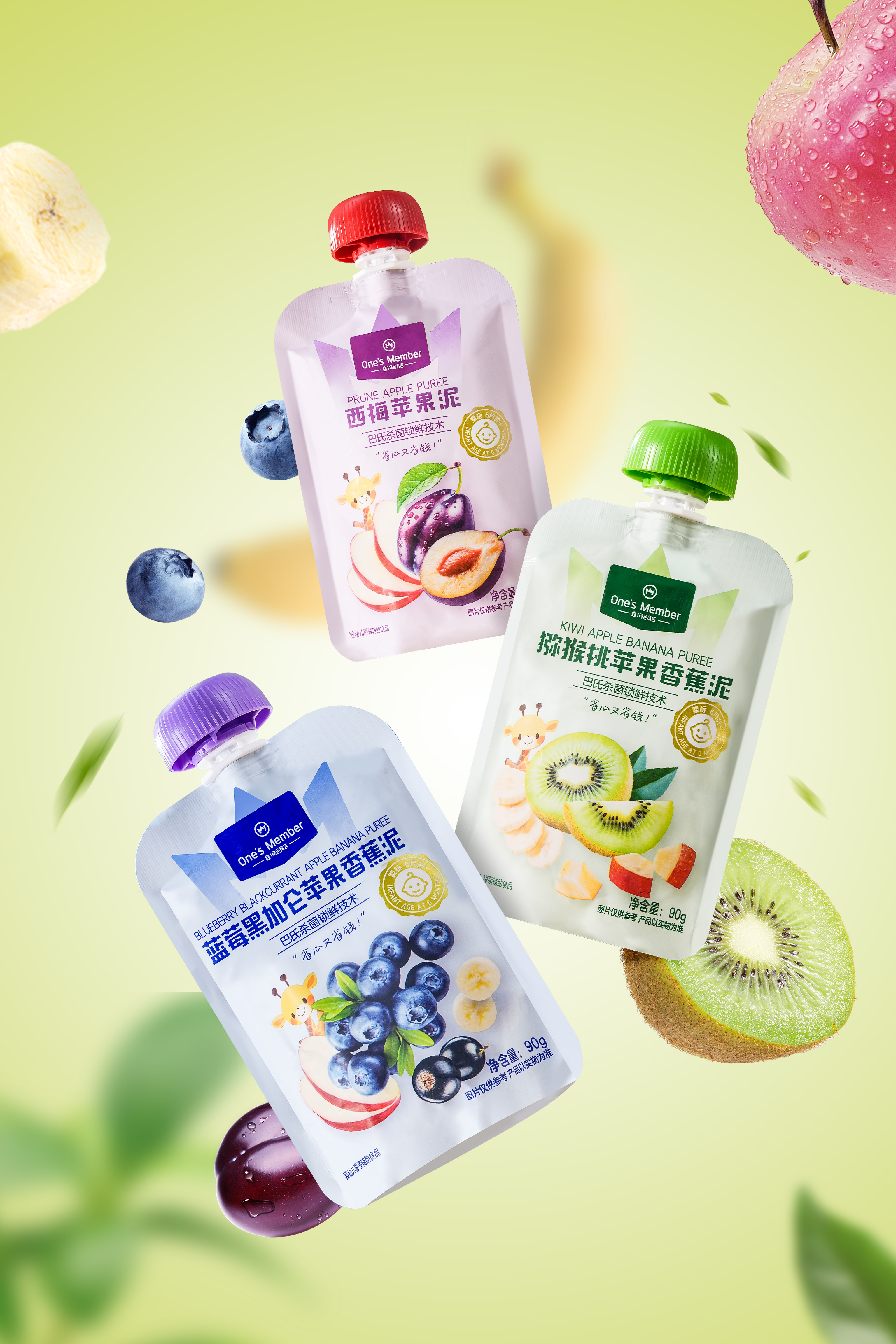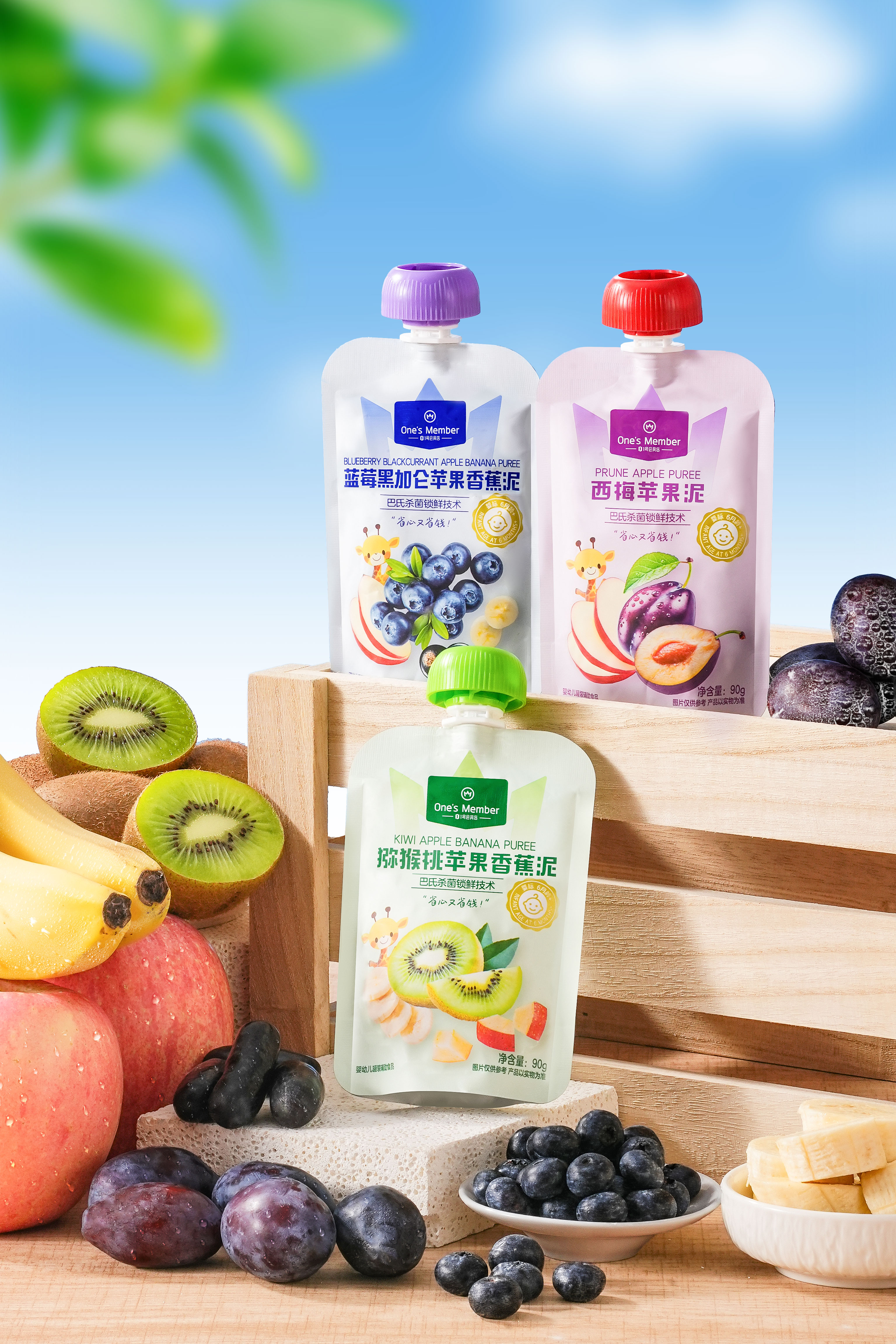 The packaging for One’s Member Baby Fruit Puree Series adopts meticulously designed visual elements to embody the all-natural attribute and high nutritional value of the products.