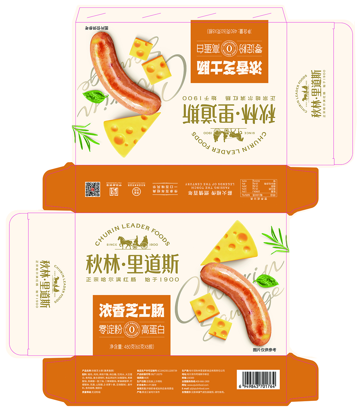 This packaging design builds upon the century-old heritage of Churin Leaderfoods red sausage, reimagining the visual identity for its new product, “Rich Creamy Cheese Sausage.” Departing from the heavy, traditional aesthetics typical of meat products, the concept establishes a fresh visual system that balances appetite appeal with a light, modern sensibility—directly addressing younger consumers’ desire for food that is delicious, healthy, and meaningful. The central visual features hand-drawn illustrations that meticulously capture the smoked texture of the sausage, the stretchy richness of cheese chunks, and the natural form of fresh herbs. Rendered with delicate strokes, the artwork emphasizes ingredient authenticity, reinforcing the perception of quality and craftsmanship while adding a human, artisanal warmth to the packaging. Color plays a transformative role: a warm, vibrant orange is used as the primary tone, breaking category conventions to evoke flavor excitement and signal innovative taste, while a clean white background enhances purity and contemporary clarity—creating strong shelf impact. The brand’s iconic “Since 1900” mark is subtly integrated through foil stamping in a corner of the layout, preserving the minimalist aesthetic while quietly anchoring the product in its historical legacy and building consumer trust. Information is structured according to visual hierarchy and reading flow. The product name and key selling points—“Rich & Cheesy Sausage,” “No Starch,” “High Protein”—are presented in a custom typeface that balances legibility with brand character, while nutritional and ingredient details are arranged in clear, modular blocks to ensure transparency and ease of comprehension. Visually, the design achieves a harmonious balance between tradition and modernity: the hand-crafted illustration echoes the brand’s century-old craftsmanship, while the minimalist composition and fresh color palette align with today’s lifestyle aesthetics. Through this cohesive visual language, the packaging transcends its functional role to become a communication medium—connecting brand and consumer by resonating with their desire for flavorful, wholesome, and authentic food. It transforms the package into a core vehicle for brand storytelling and emotional engagement.