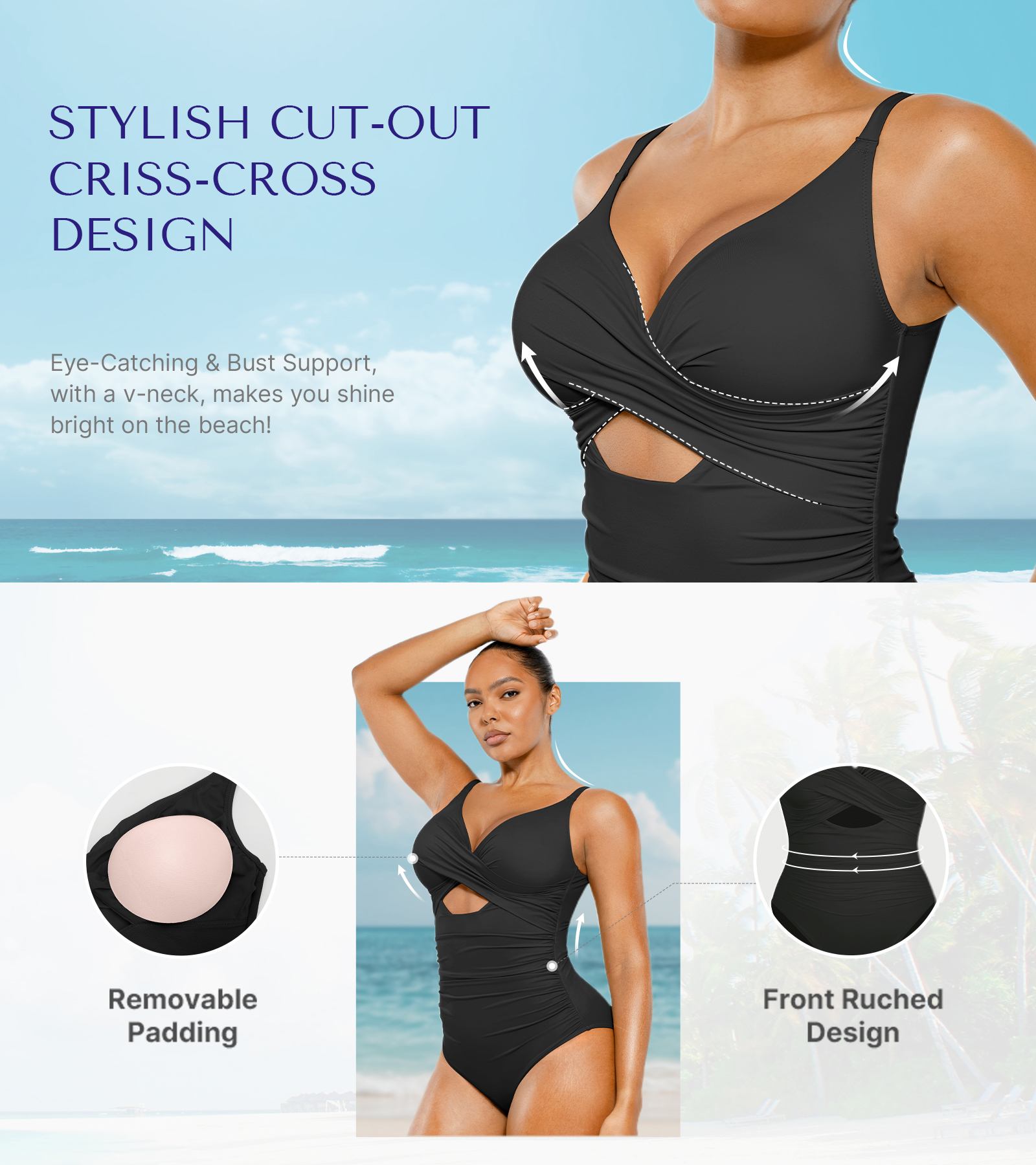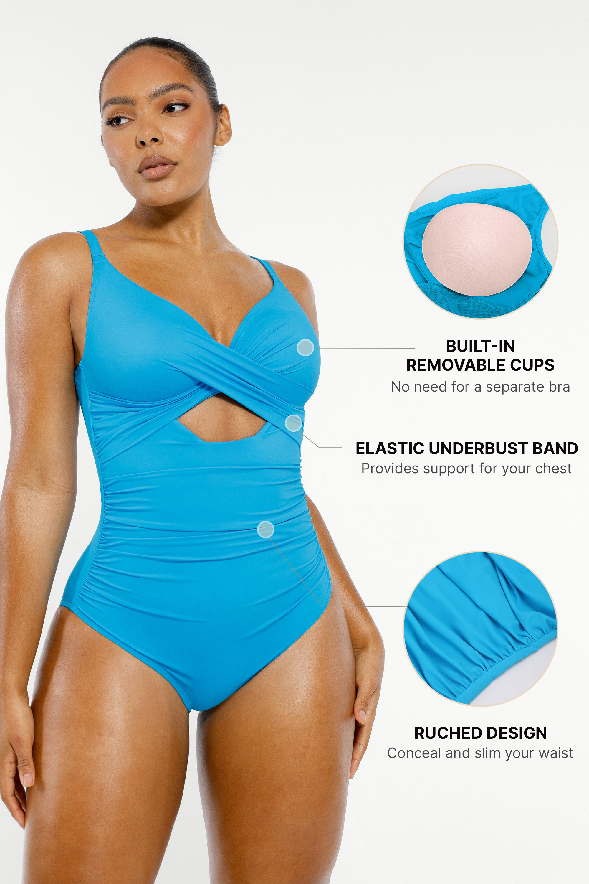 Beyond the pool or beach, this swimsuit transitions effortlessly into daily wear when paired with casual bottoms, reflecting a confident fashion sensibility from within. It redefines “functional fashion” by delivering the medium-control benefits of shapewear while celebrating modern women’s embrace of body diversity and aesthetic freedom.