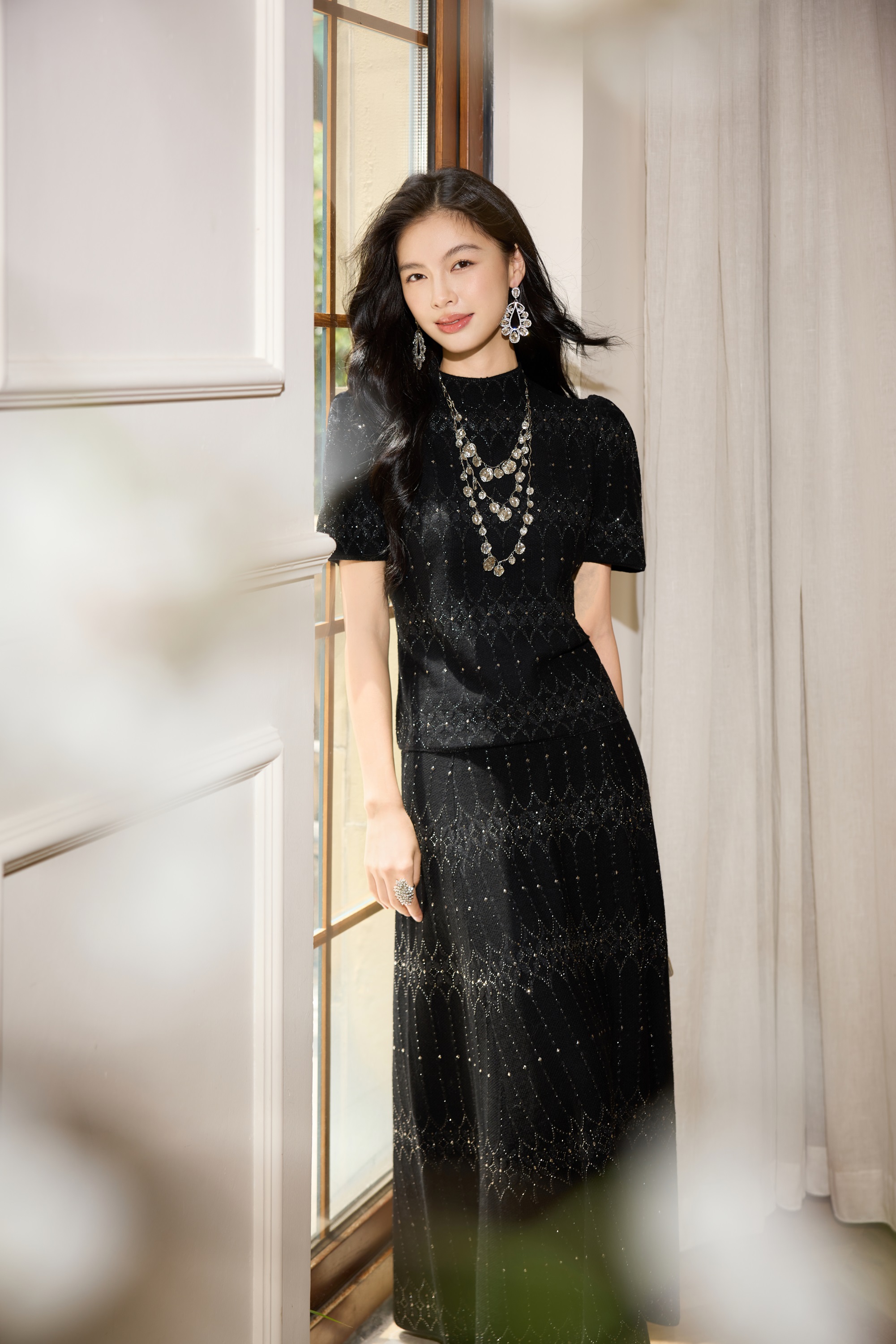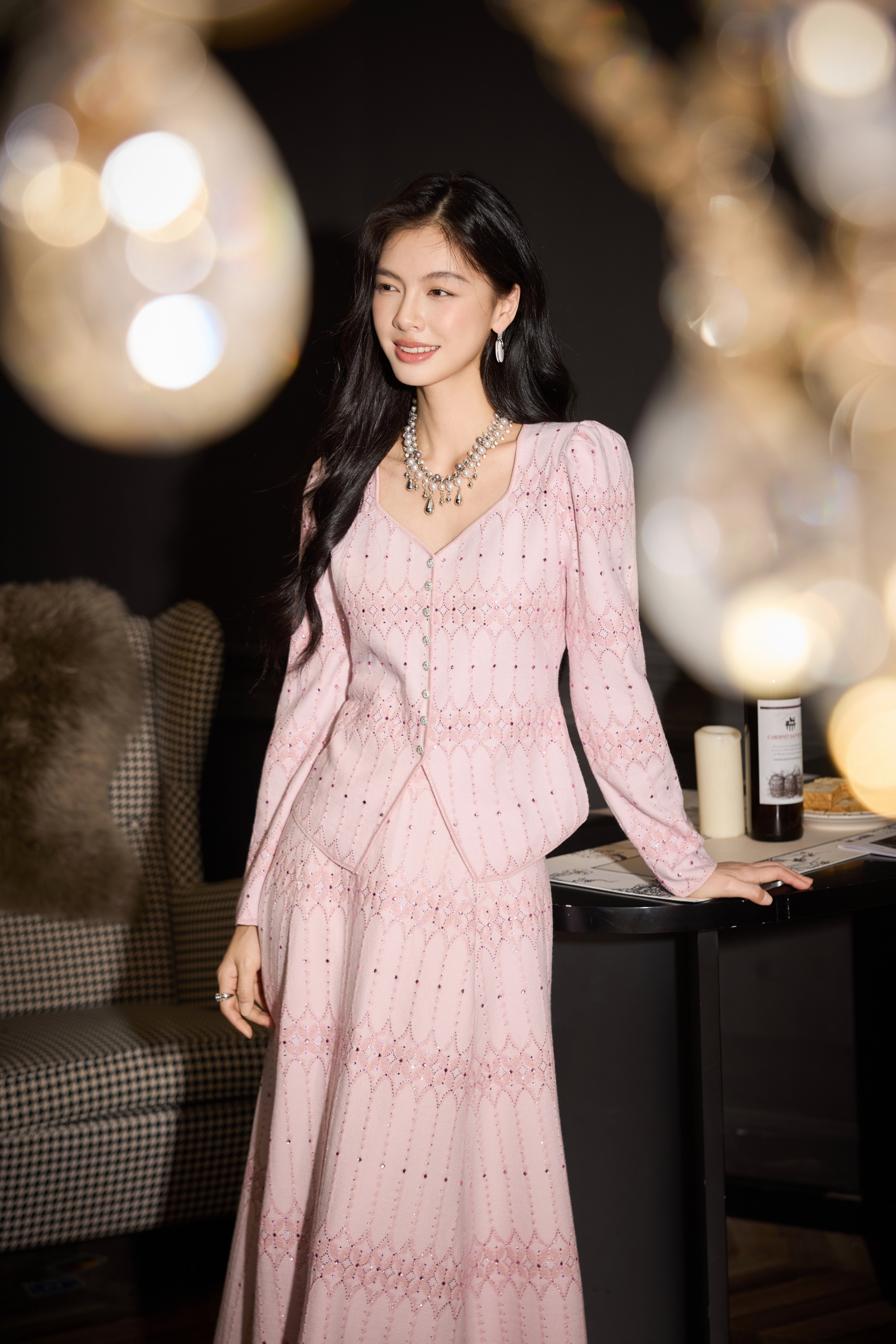 The crisp short cut paired with skirts effectively raises the waistline visually. The overall fit follows the body's contours without constriction, projecting a sophisticated elegance that is neither ostentatious nor vulgar. The precisely calibrated knee-length skirt ensures appropriateness for daily wear, professional settings, and formal social gatherings alike.