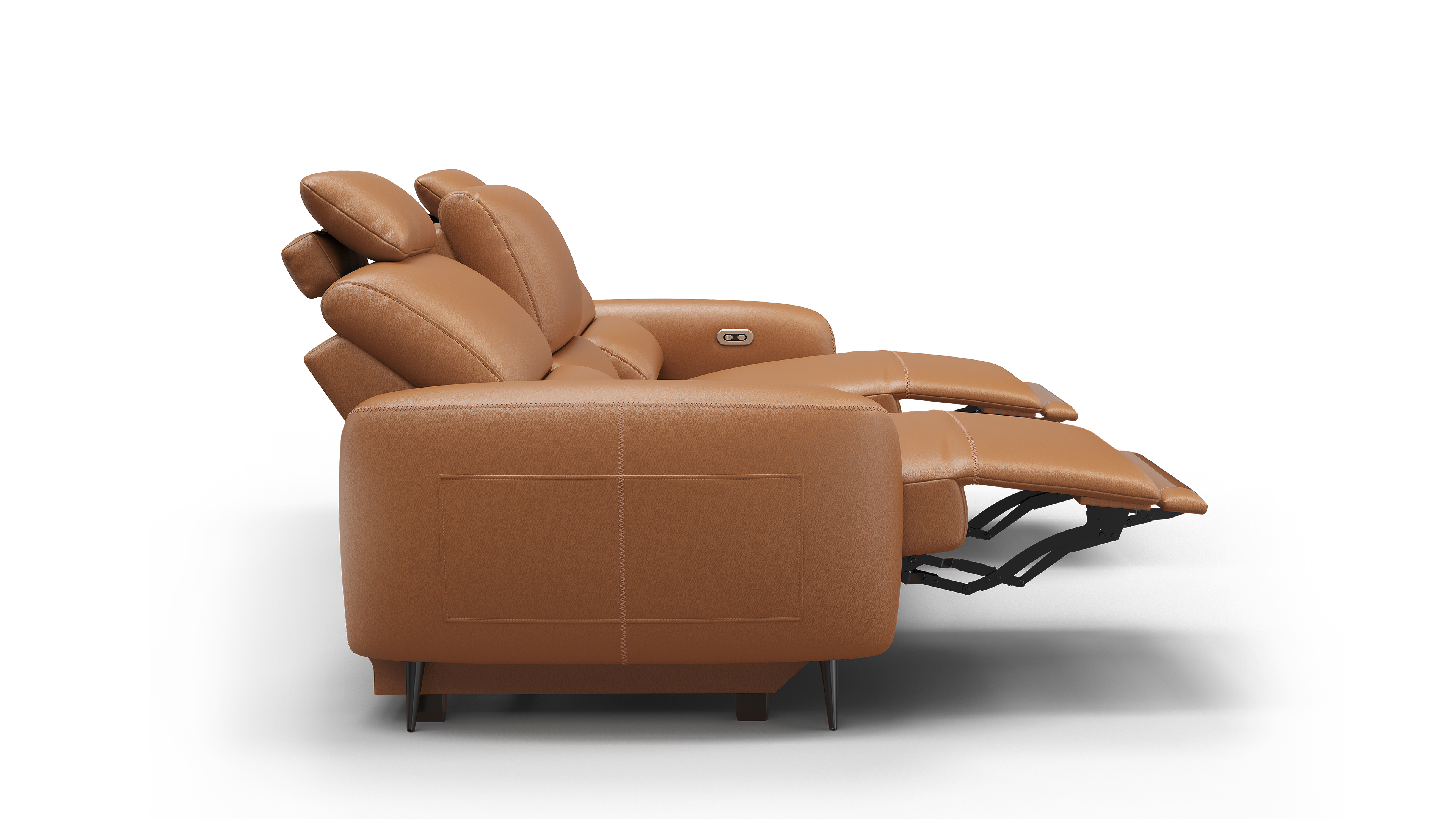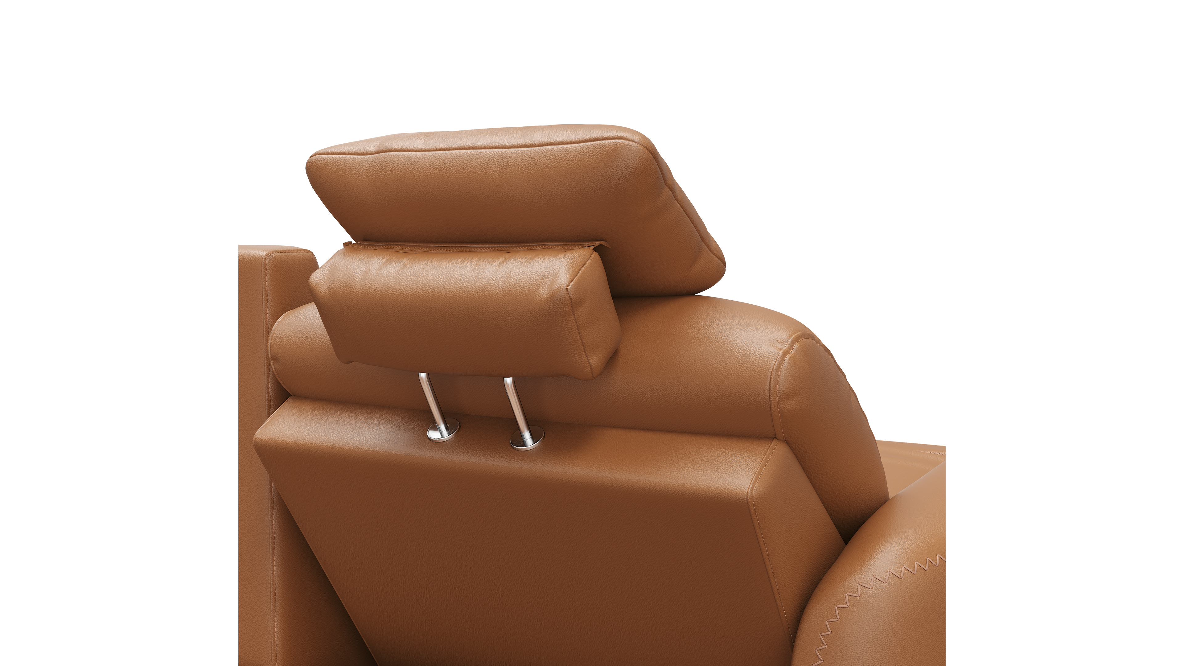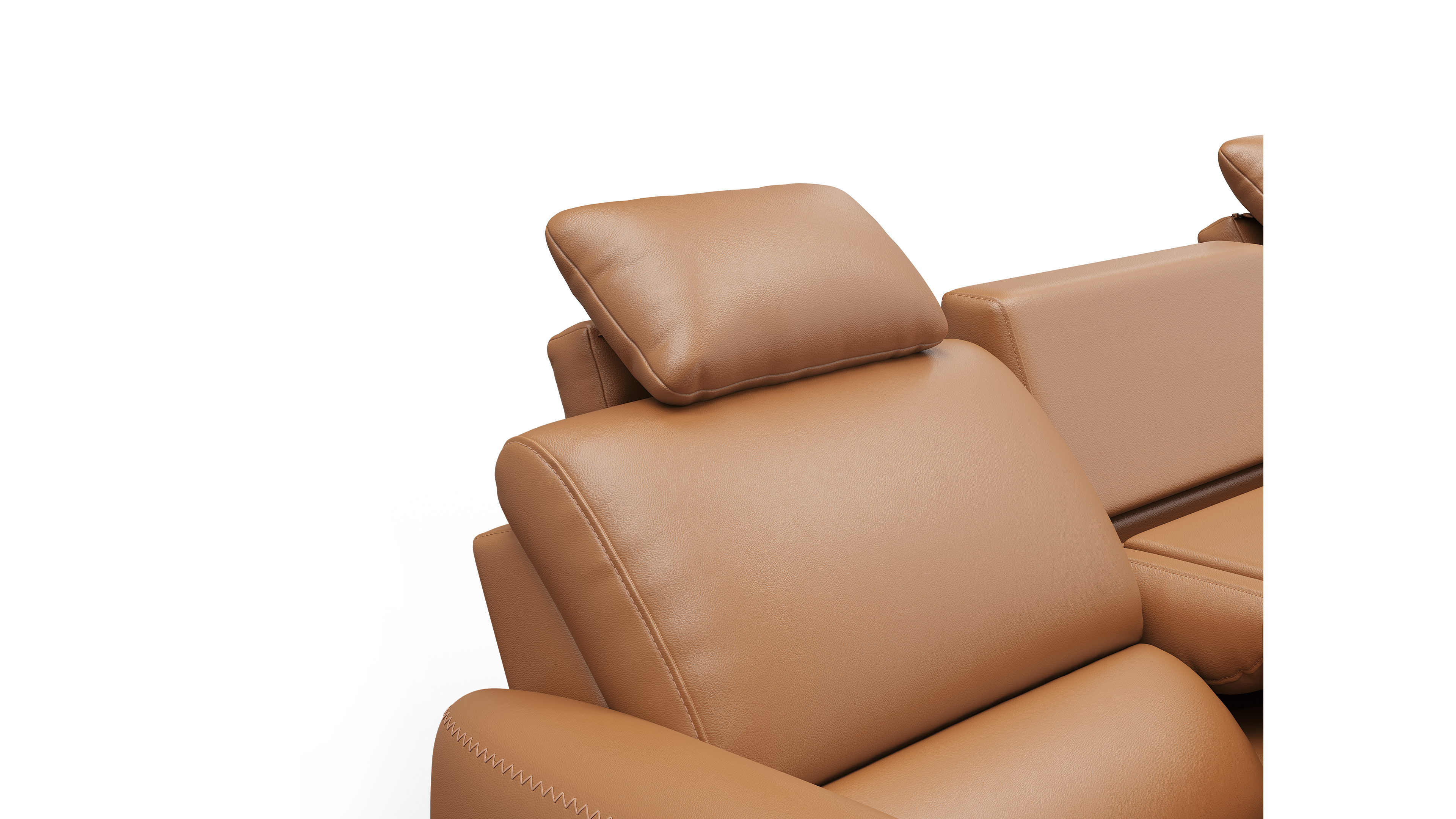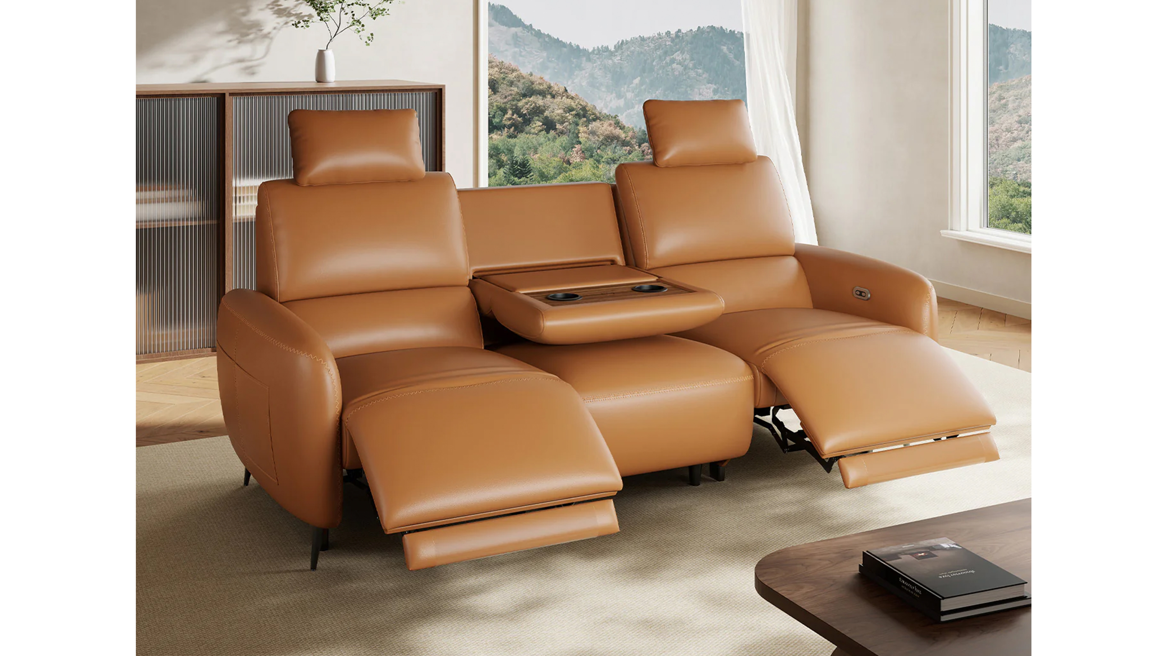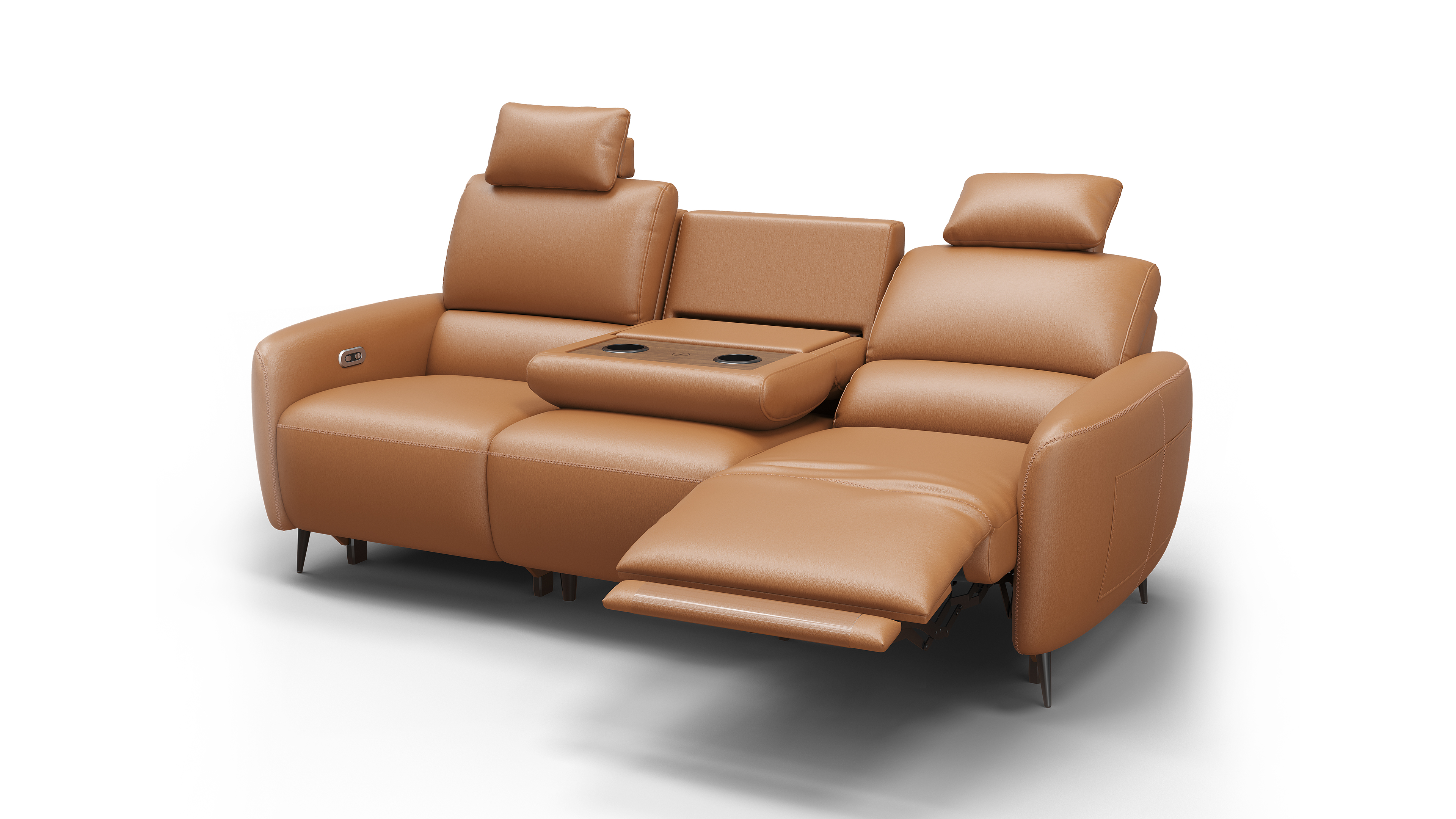 Functionally, the sofa incorporates an advanced hidden airbag massage system, merging wellness technology with refined design. Users can adjust the backrest angle from 110° to 150°, elevate the footrest up to nearly 90°, and customize the headrest height to achieve ideal seating or reclining positions. Multiple massage modes and intensity levels can be easily controlled through a side remote, blending convenience with personalized comfort.