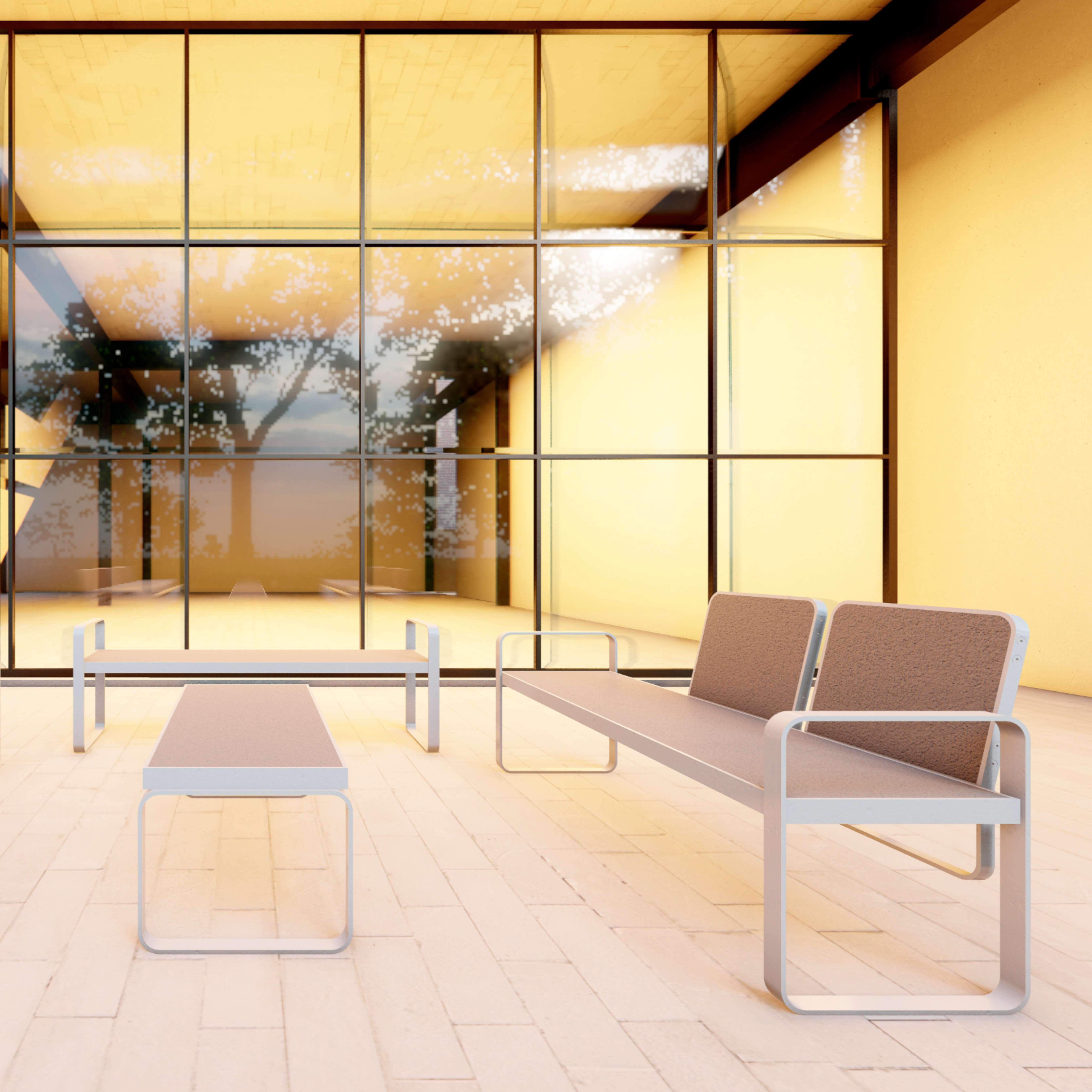 It is available in three versions: bench with backrest, without backrest and individual seat, giving rise to multiple compositions according to the needs demanded by the space to be provided and the user.