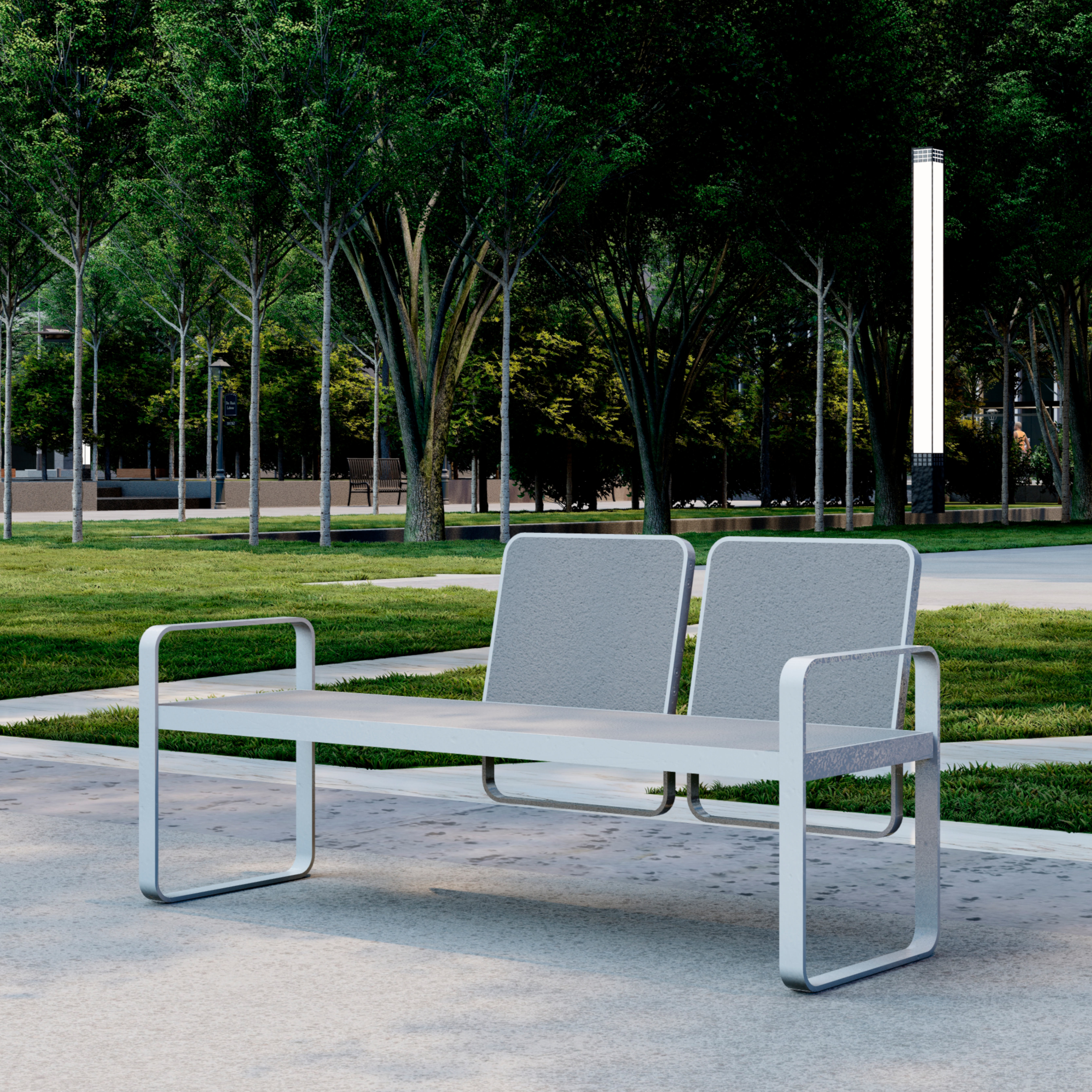 A piece of street furniture designed for interrelation scenarios in public spaces, capable of arousing emotions both in urban environments and in natural spaces. When the bench is free, it is perceived as a sculptural element.