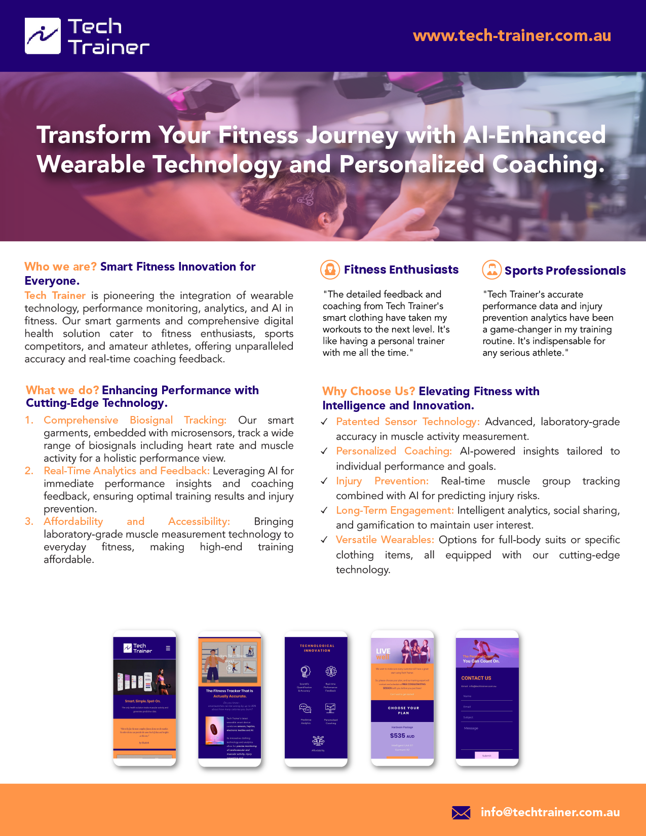 Tech Trainer is pioneering the future of wearable technology with a world-first integration of smart textiles, contactless sensors, and AI-driven digital twins. Based in Melbourne, Australia, the system transforms how people exercise, recover, and perform by embedding real-time coaching into garments.
