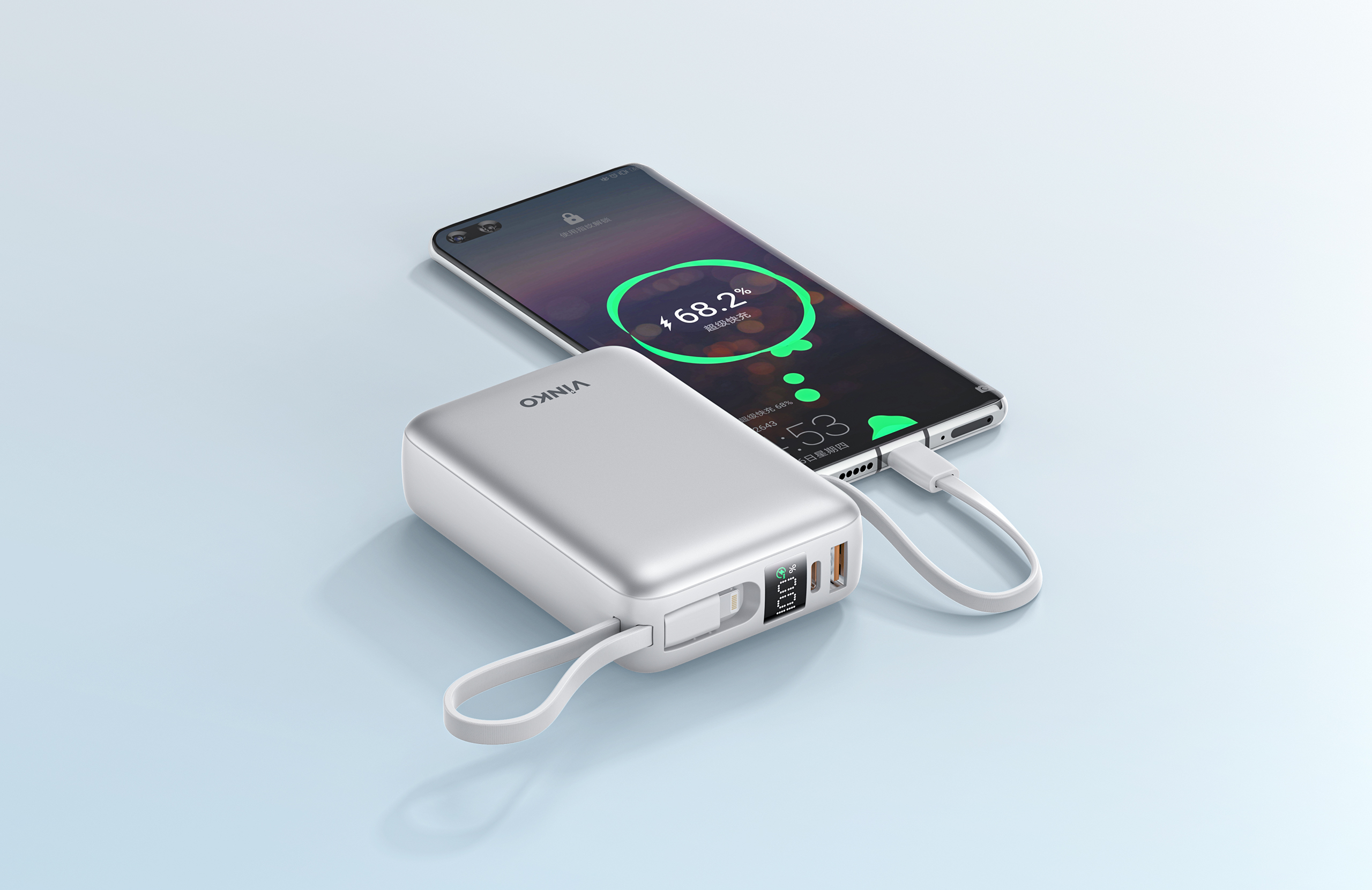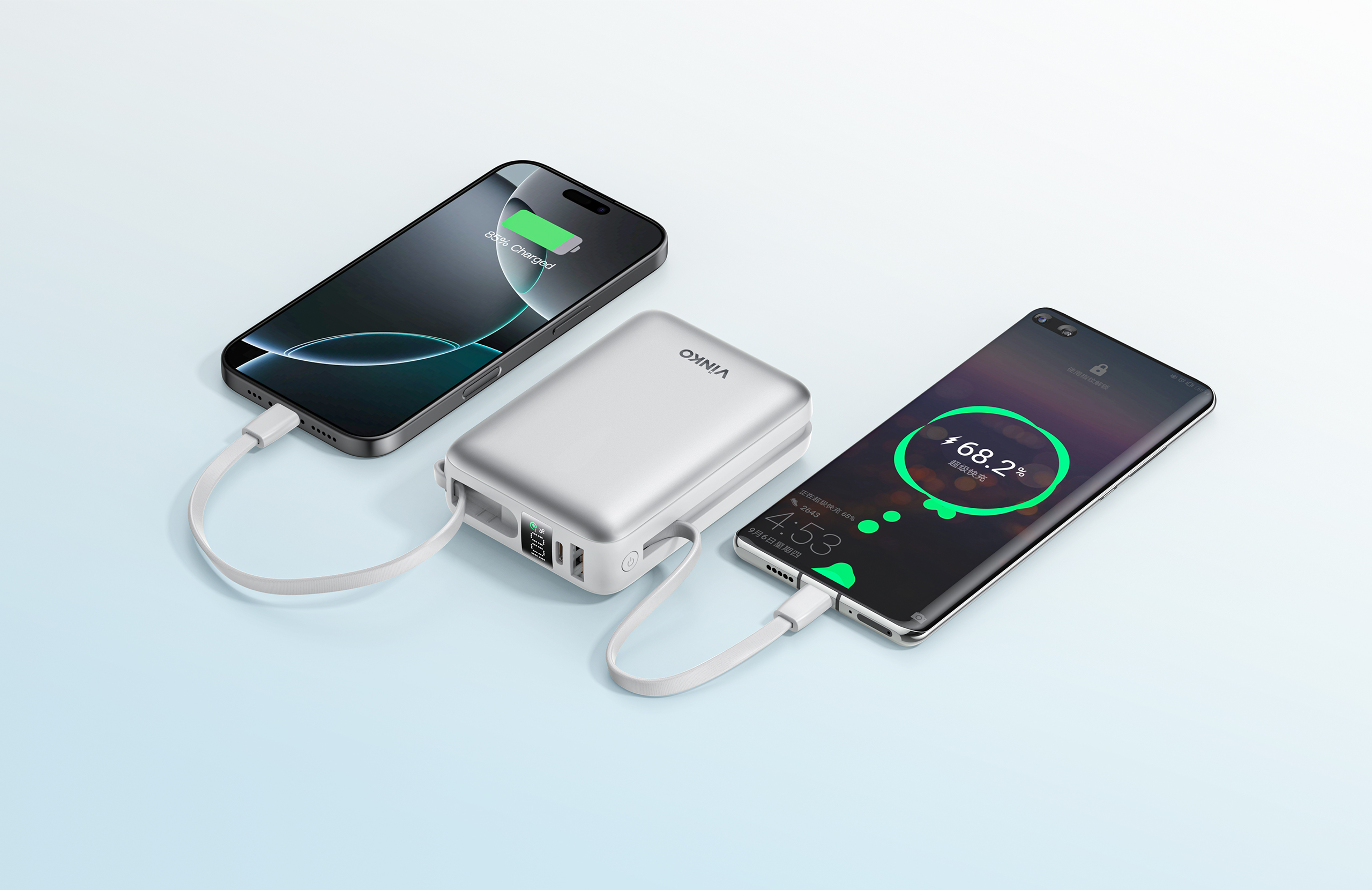 The VINKO UltraCompact Dual-Cable Power Bank reimagines portable charging as a seamless, elegant, and intuitively smart experience, where cutting-edge performance meets minimalist design. Engineered with an ultra-compact square silhouette, it fits effortlessly in the palm of your hand or the smallest pocket, offering maximum portability without compromising on power—proof that exceptional capability can thrive in the most unobtrusive forms. Thoughtfully equipped with integrated Lightning and USB-C cables, along with an additional bidirectional USB-C port, it eliminates the need for carrying multiple cords, reducing clutter while enhancing convenience for users on the move. Whether you're powering an iPhone, iPad, AirPods, or any USB-C device, the intelligent 22.5W fast-charging system delivers rapid, efficient energy transfer, significantly reducing downtime and keeping your devices ready when you need them most. A crisp, built-in digital display provides real-time battery percentage updates, giving users full visibility and confidence in their remaining charge—no guesswork, no surprises. Encased in a sleek, durable shell with refined edges and a premium finish, VINKO is more than a power bank; it’s a statement of modern living, meticulously crafted for travelers, urban commuters, digital creators, and anyone who values streamlined efficiency and understated sophistication. Every element, from its cable management to its balanced weight and tactile response, reflects a deep commitment to user-centric design—where technology fades into the background, working silently yet powerfully to support your day. By merging practical innovation with aesthetic precision, the VINKO UltraCompact Dual-Cable Power Bank transcends the ordinary, transforming a functional necessity into a trusted companion that empowers your lifestyle with elegance, reliability, and effortless ease.