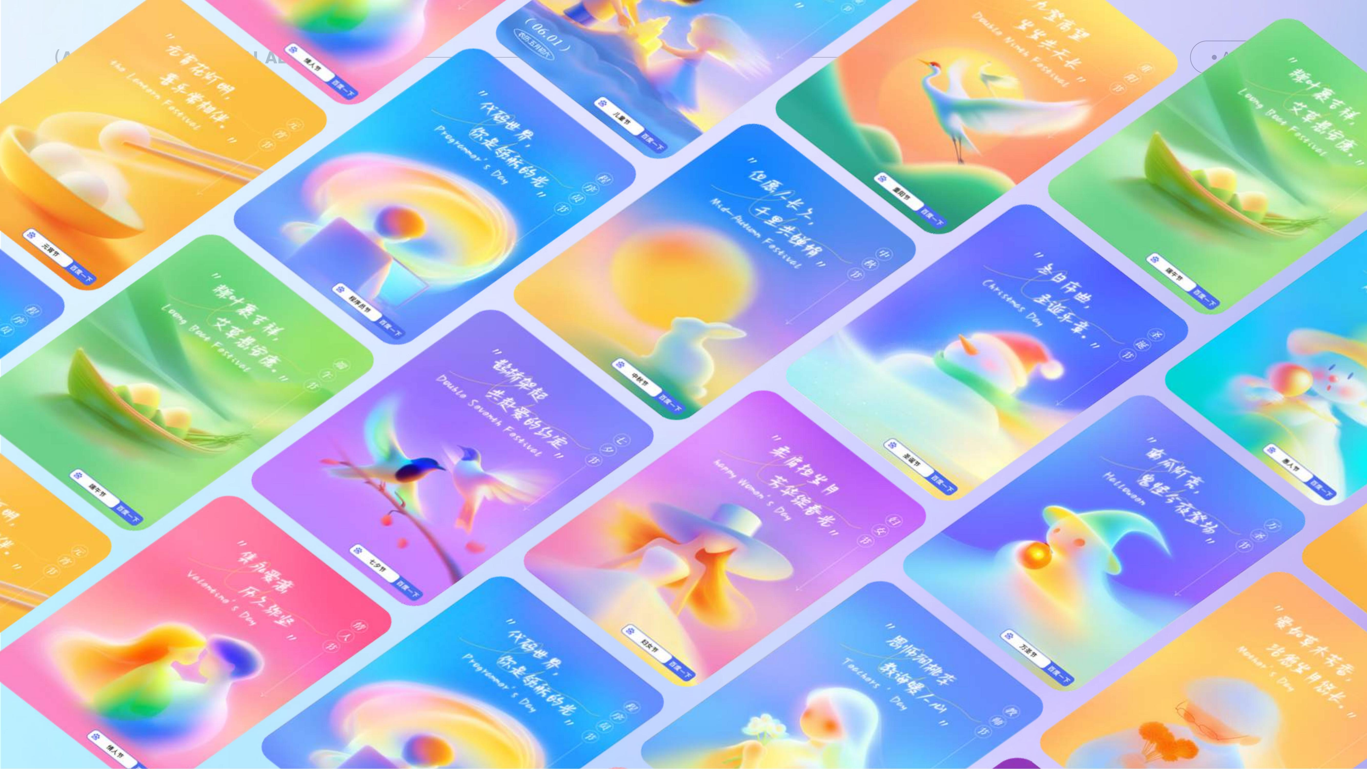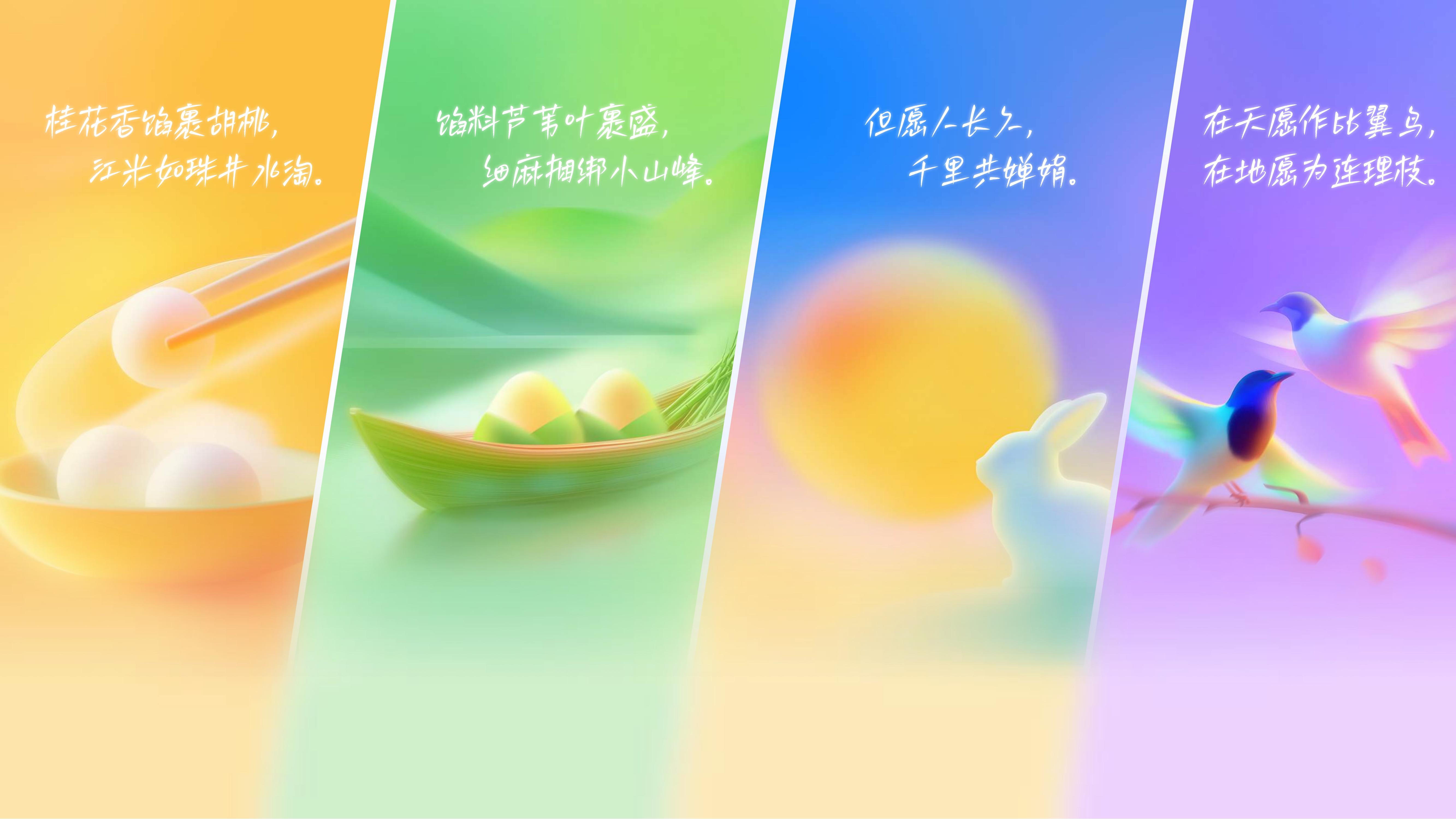 The aesthetic goal is to harmonize tradition with modernity. We merge the classical concept of poetic atmosphere with the tech-centric aesthetic of Baidu's Chromatic Radiance visuals. In the expression of traditional Chinese festivals, there's an emphasis on conveying emotions through objects; using animals and scenery to create the holiday's ambiance. By extracting core poetic elements (such as the jade rabbit and the moon) and reinterpreting them with bright color gradients and fluid lines, we achieve a balance between brand attributes and cultural charm.