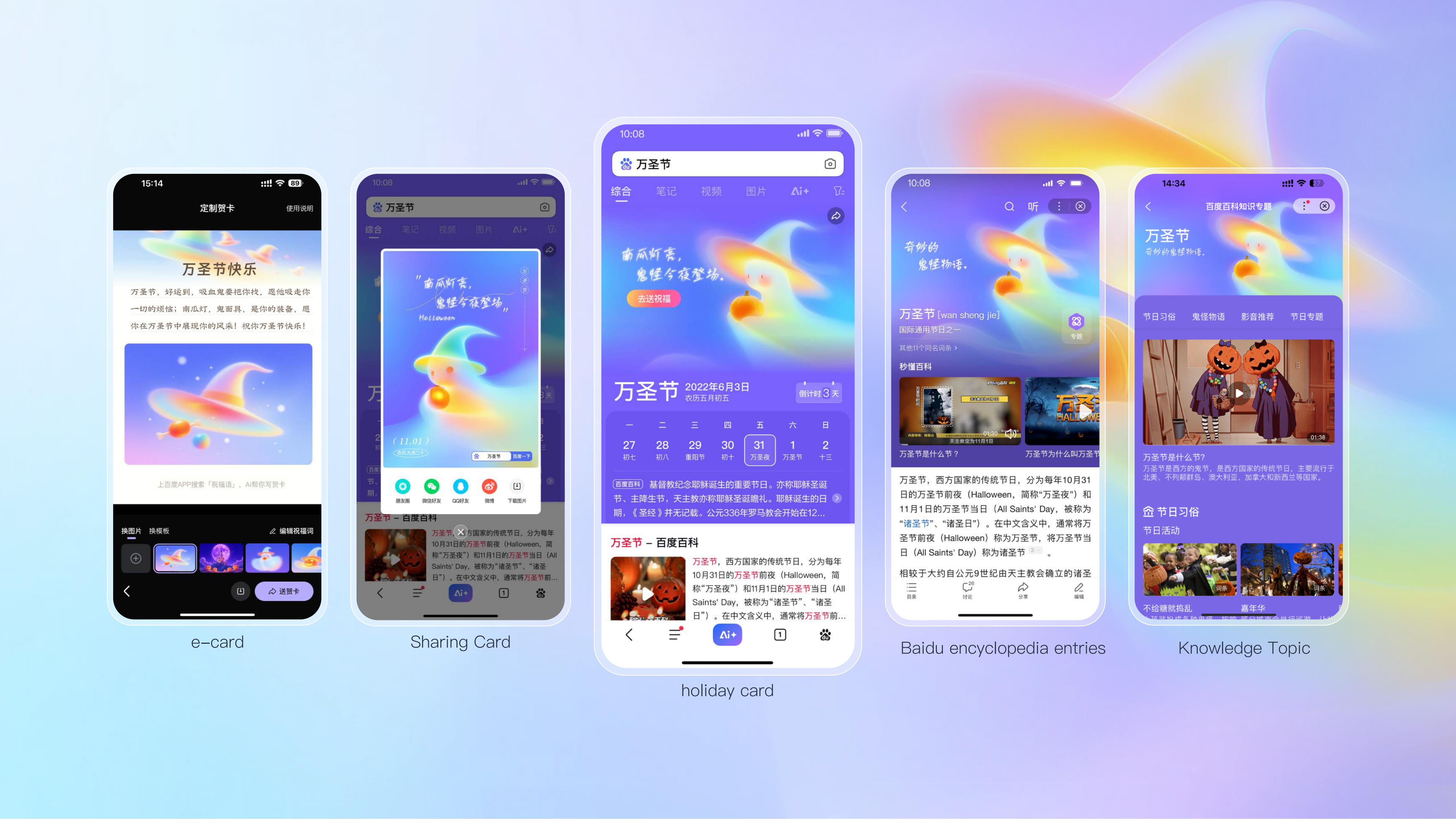 Powered by Baidu Search and Baidu Baike, we have designed an innovative festival cultural experience platform. It offers the public a convenient and comprehensive portal for cultural learning, where users can easily access the history, folklore, and other knowledge of various festivals. The platform merges visual arts with personalized social functions (like e-cards), aiming to transform abstract cultural concepts into a tangible and engaging digital experience.