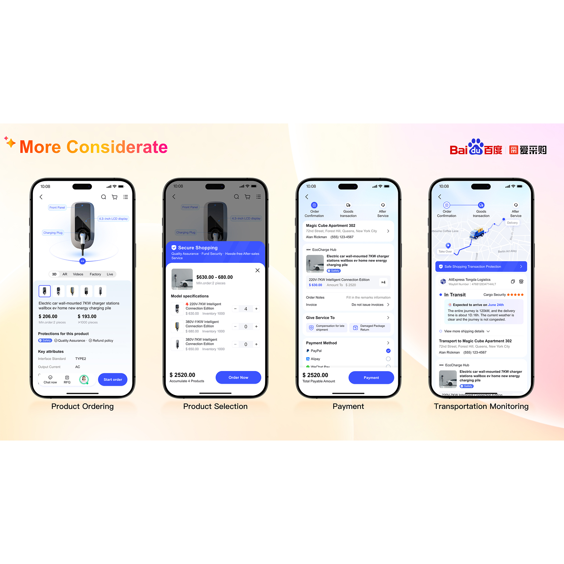 This solution innovates the entire procurement experience—from sourcing and selection to inquiry and ordering. Multi-modal sourcing recognition improves procurement efficiency, while expert recommendations make selection smarter. Visual negotiation tools streamline the matching process, and comprehensive security measures ensure a worry-free procurement experience.