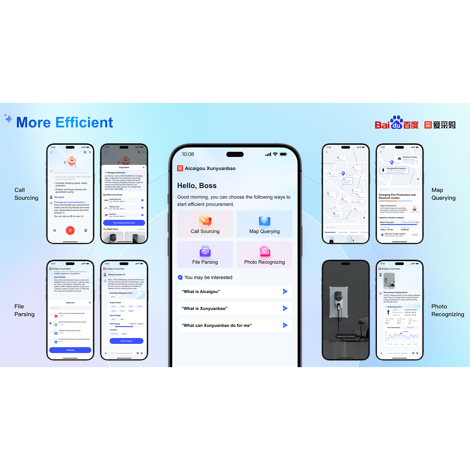 Aicaigou Xunyuanbao Smarter Procurement is a B2B industrial platform developed by Baidu Aicaiqiu, leveraging generative AI, large models, and industry knowledge—branded as the "Aicaiqiu AI Smart Procurement Assistant." Buyers simply provide their procurement needs, price, and location, and Aicaigou Xunyuanbao acts like a professional buyer, using personalized requirements to help find the best suppliers.