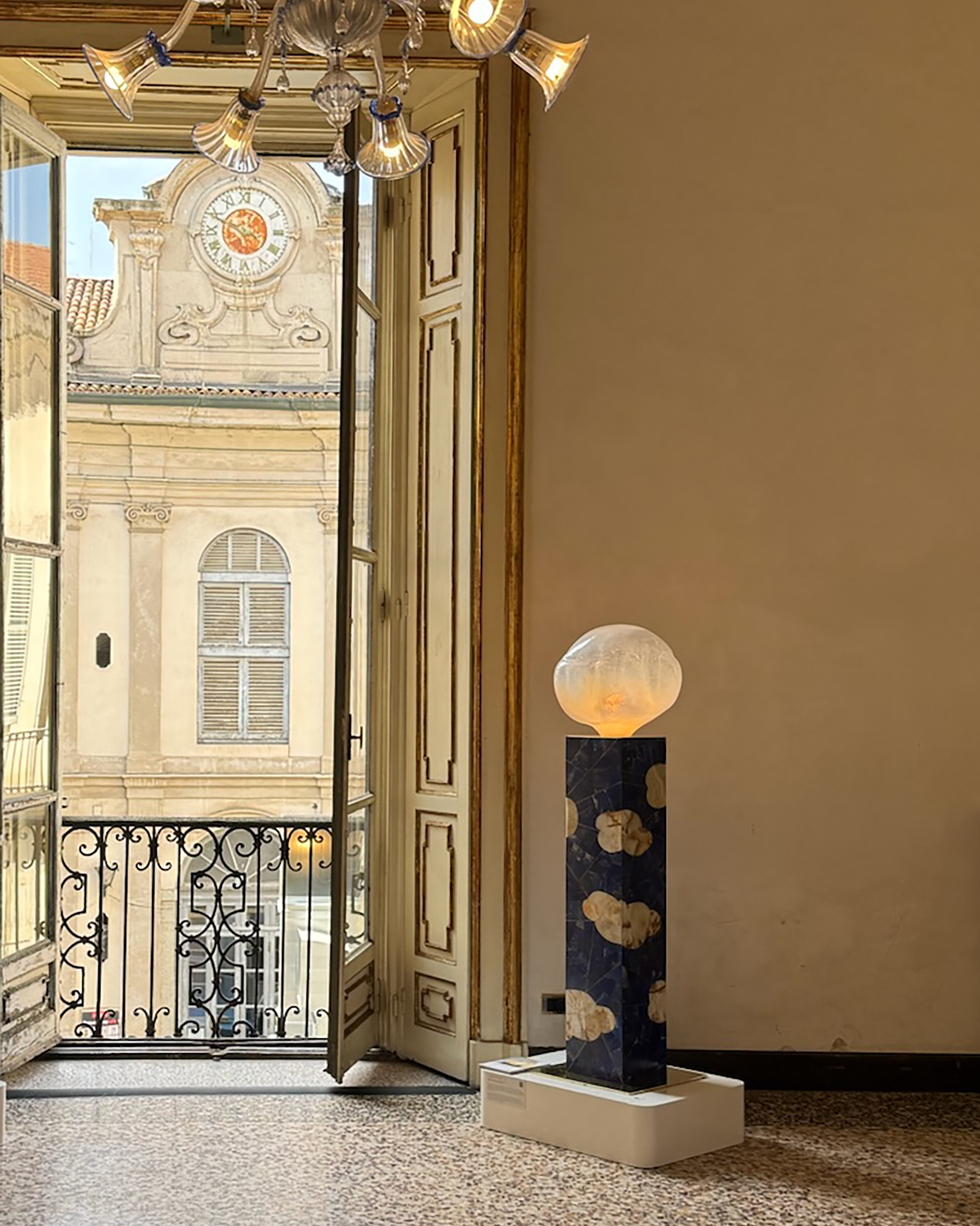 Cloud Atlas debuted at “FOUR ON THE FLOOR”, a collaborative exhibition presented by MoscaPartners Variations during Salone del Mobile 2025. Curated around the theme “Migrations” and inspired by the foundational four-on-the-floor rhythm in music, FOUR ON THE FLOOR united design luminaries from across the Americas—Thomas Cooper Studio (Los Angeles, USA), Ann Weber (Los Angeles, USA), Thierry Jeannot (France/Mexico City), and Angela Damman (USA/Yucatan, Mexico)—each contributing their unique “beat” to a harmonious convergence of light and form. The exhibition explored the torchière, a classic form of lighting, as each artist’s “instrument,” which became a shared canvas for examining the interplay of materiality, illumination, and cultural expression. FOUR ON THE FLOOR, with the Cloud Atlas as its running thread, inspired contemplation by embodying the dialogue between the tangible and the transcendent.