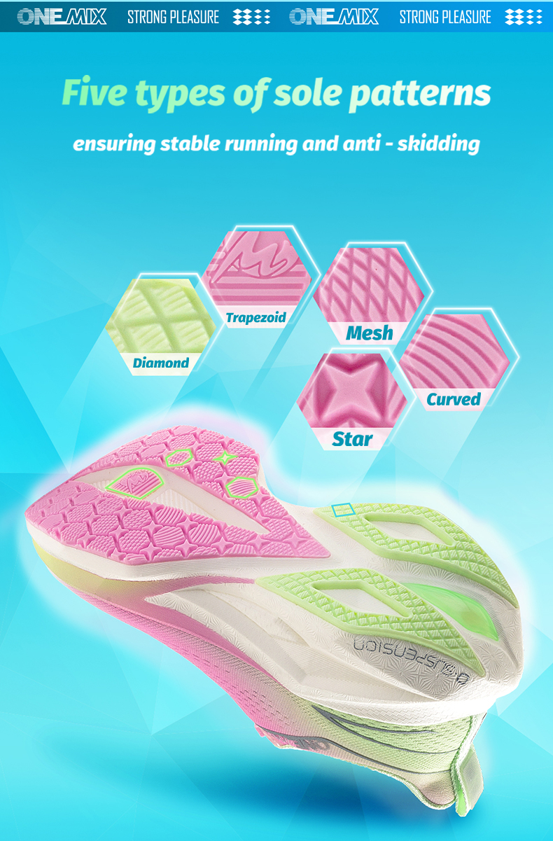 2.Lightweight Training (Aerobics): Outsole with multiple geometric patterns + widened design for anti-slip stability