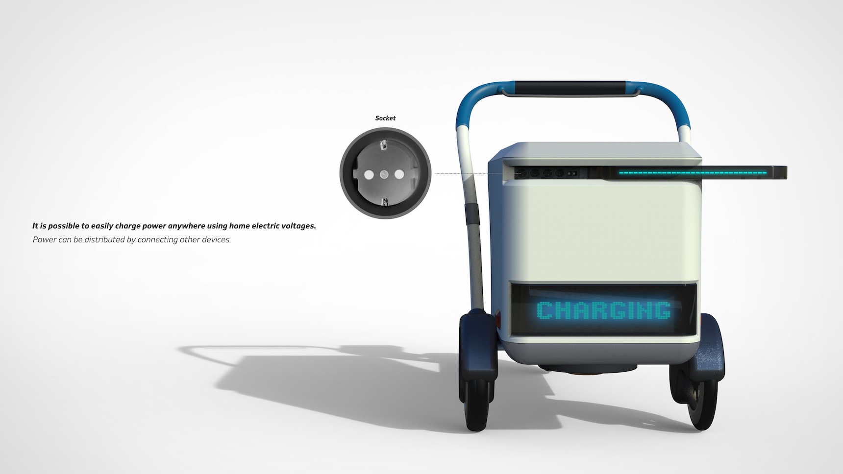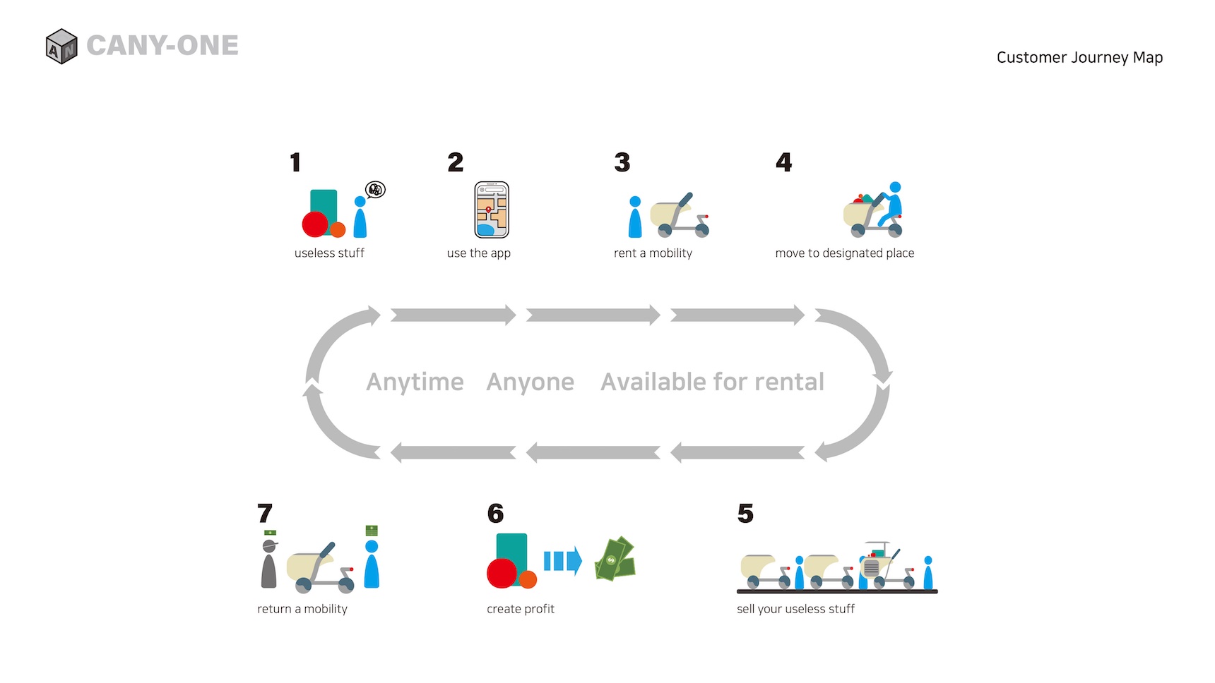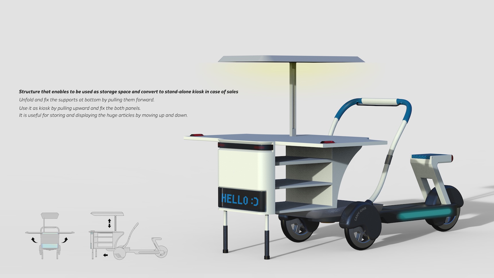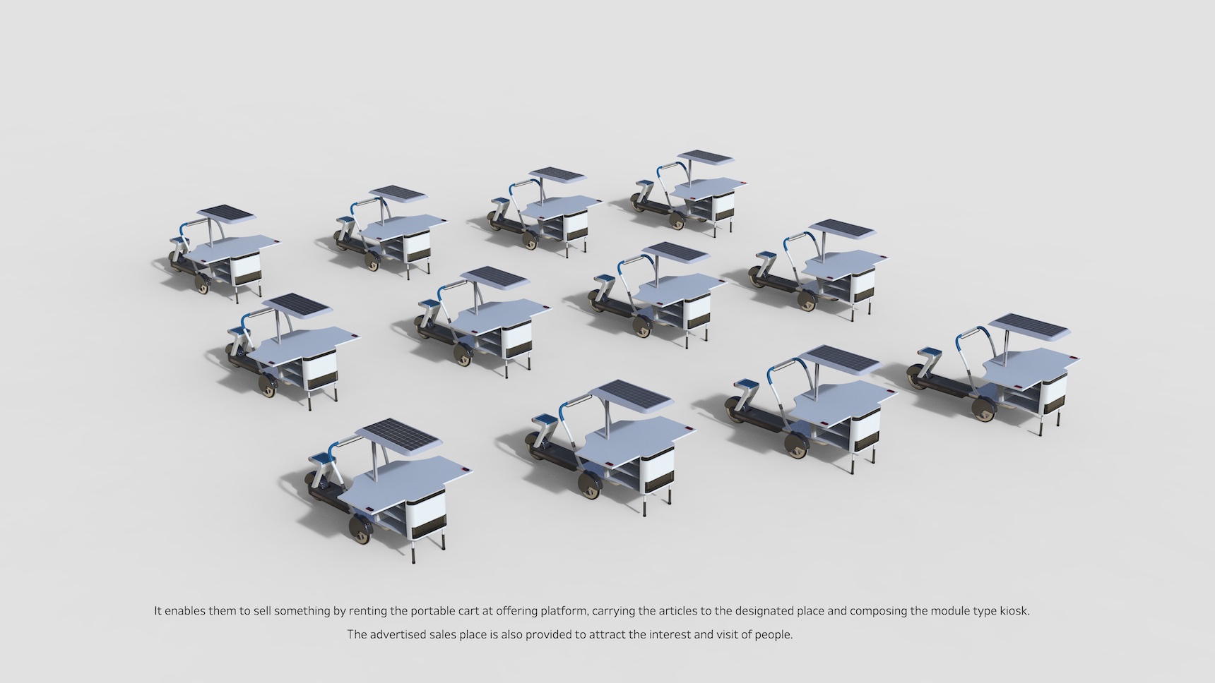 It enables them to sell something by renting the portable cart at offering platform, carrying the articles to the designated place and composing the module type kiosk.