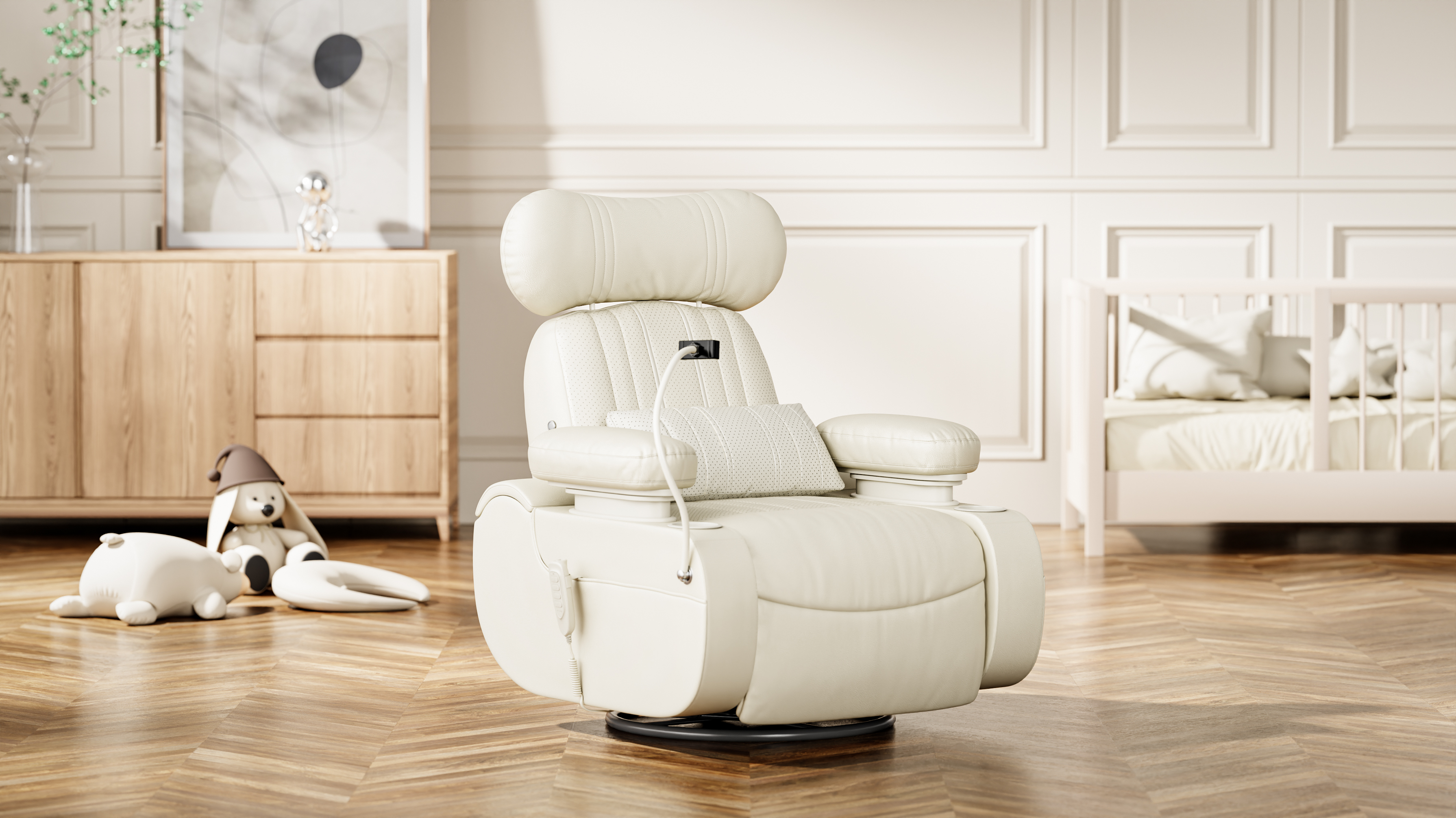 This nursing chair is purpose-built for indoor care and feeding, giving mothers comfort and convenience while reshaping a warm, relaxed parenting experience.