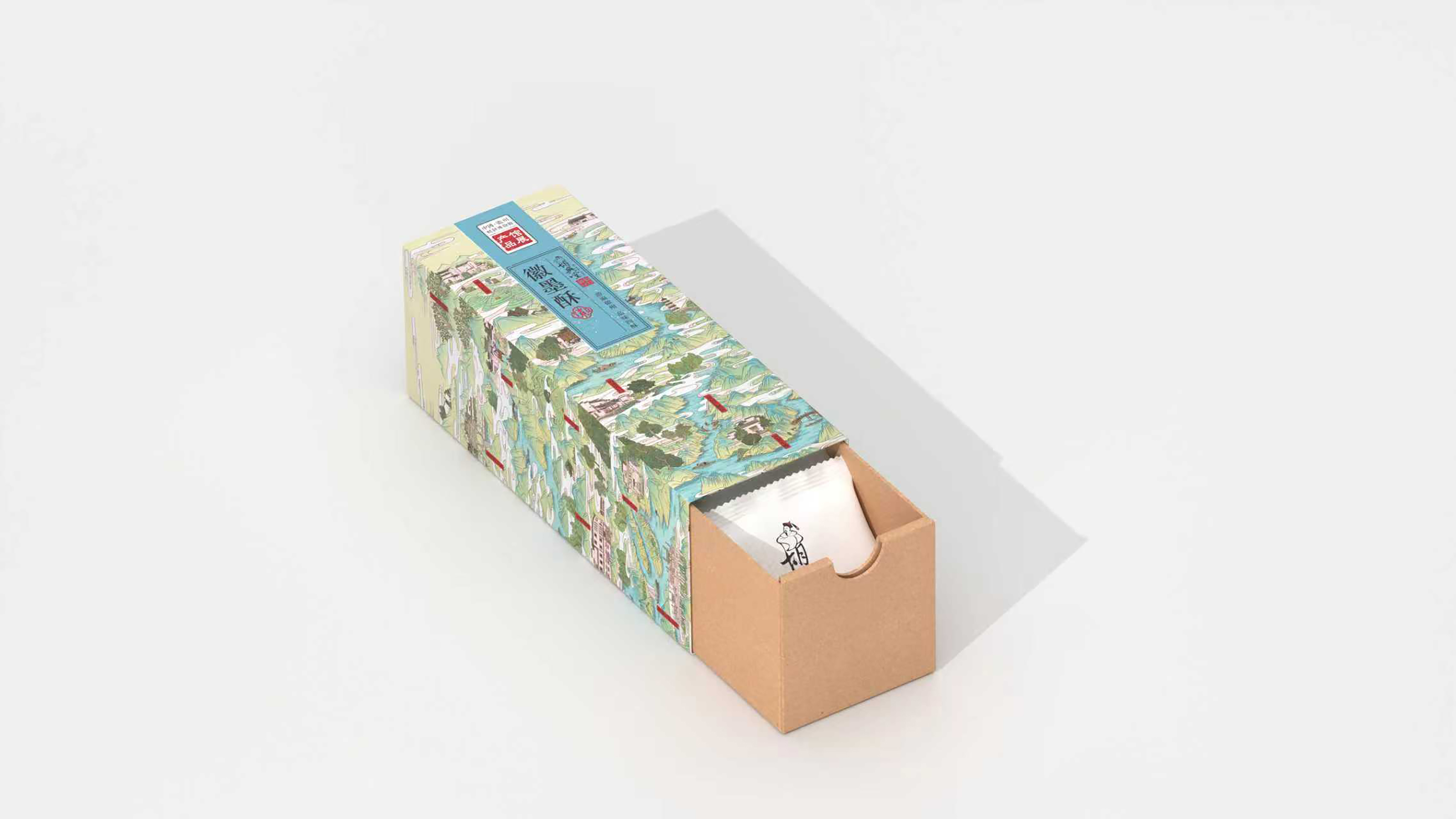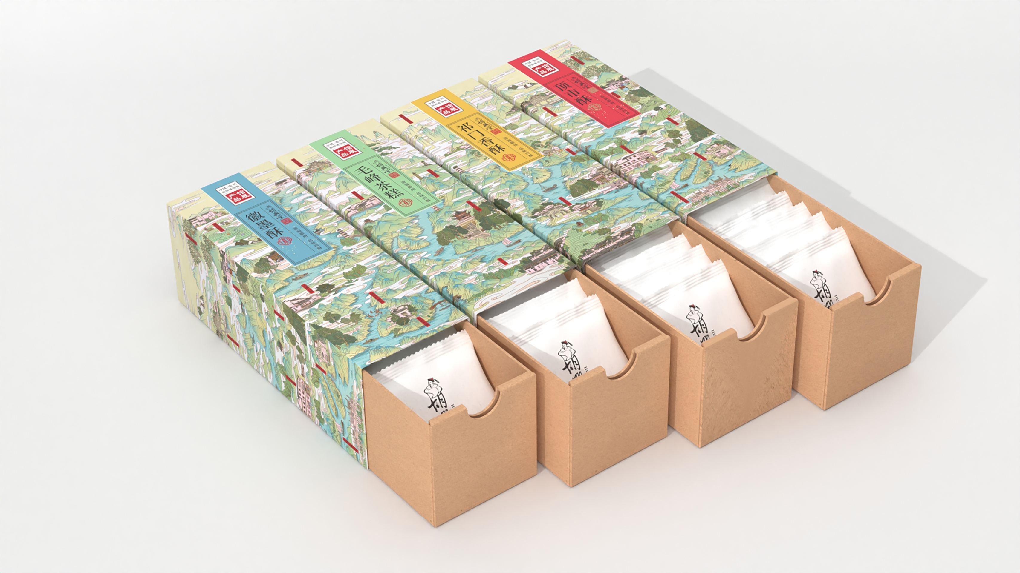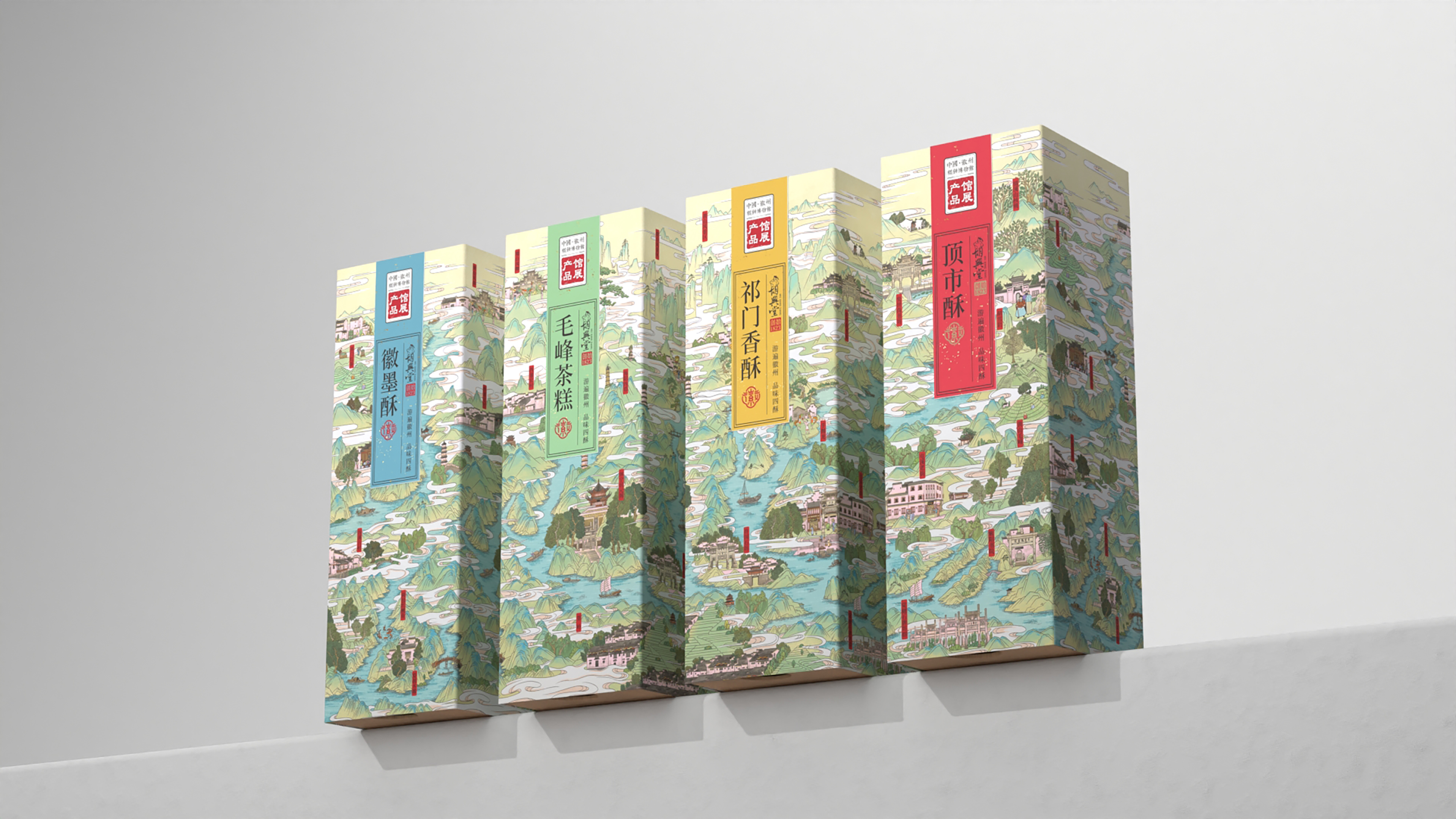 Visually, the color palette of the entire series takes cues from the ink nuances of Huizhou-style landscape paintings. This palette unfolds with soft, tranquil tones, creating a profound humanistic atmosphere and ensuring the integrity of the series packaging as well as its display effect. Against this unified visual background, the packaging design of this series incorporates an efficient color-coding system—assigning a highly recognizable color block label to each type of pastry (such as Maofeng Tea Pastry, Qimen Tea Pastry, etc.). This approach not only delivers a systematic and unified visual effect but also provides users with intuitive and quick guidance for product selection, significantly enhancing the interactive experience.